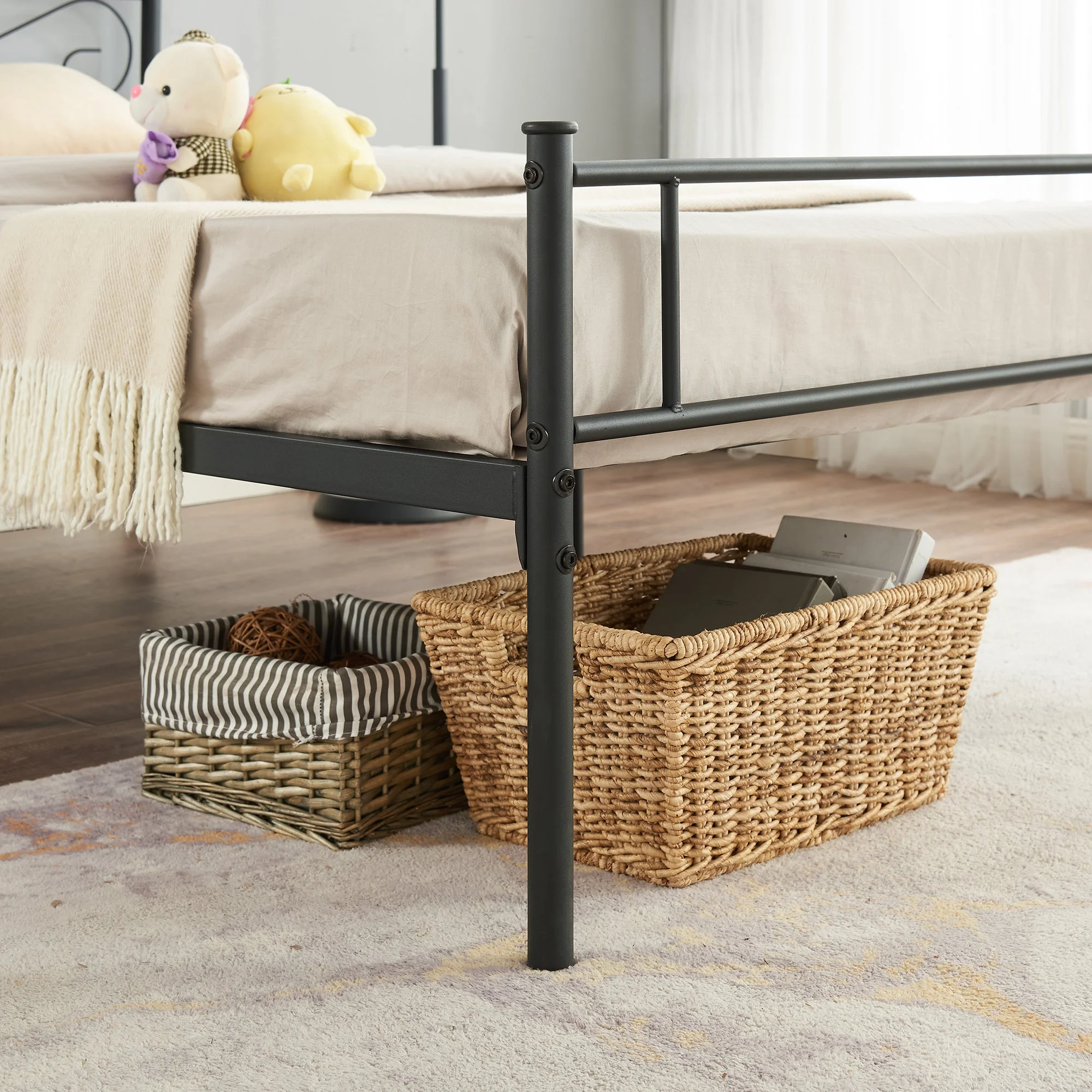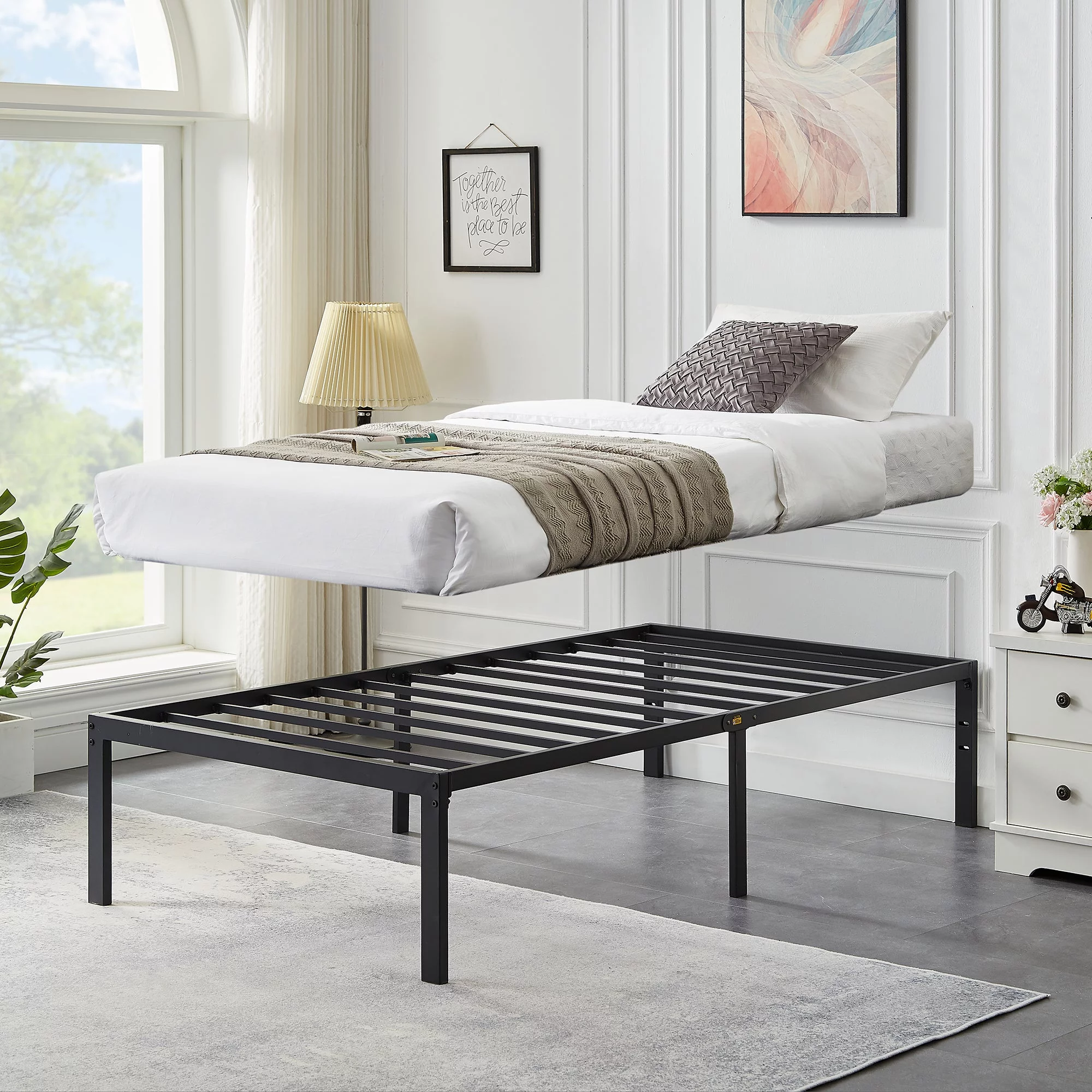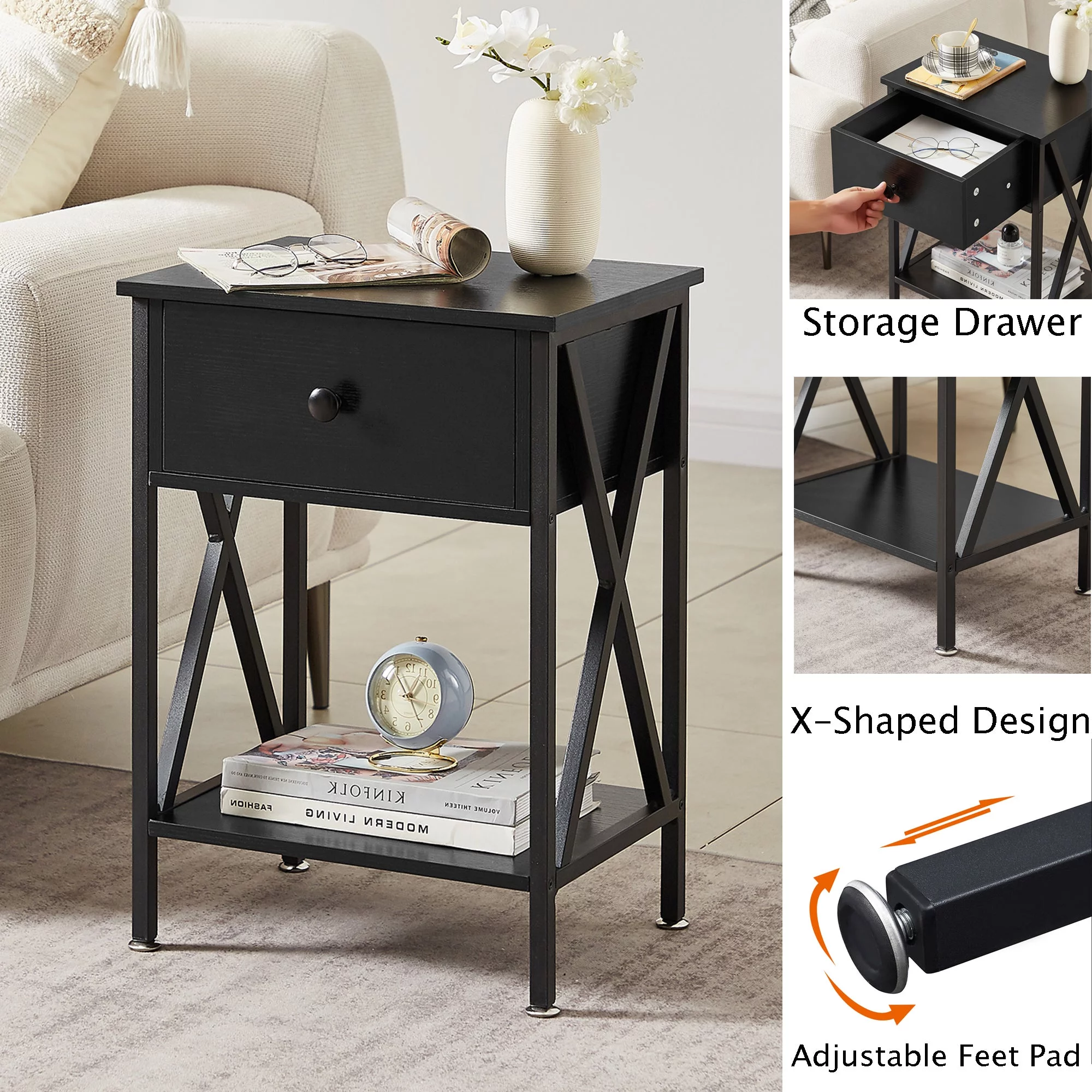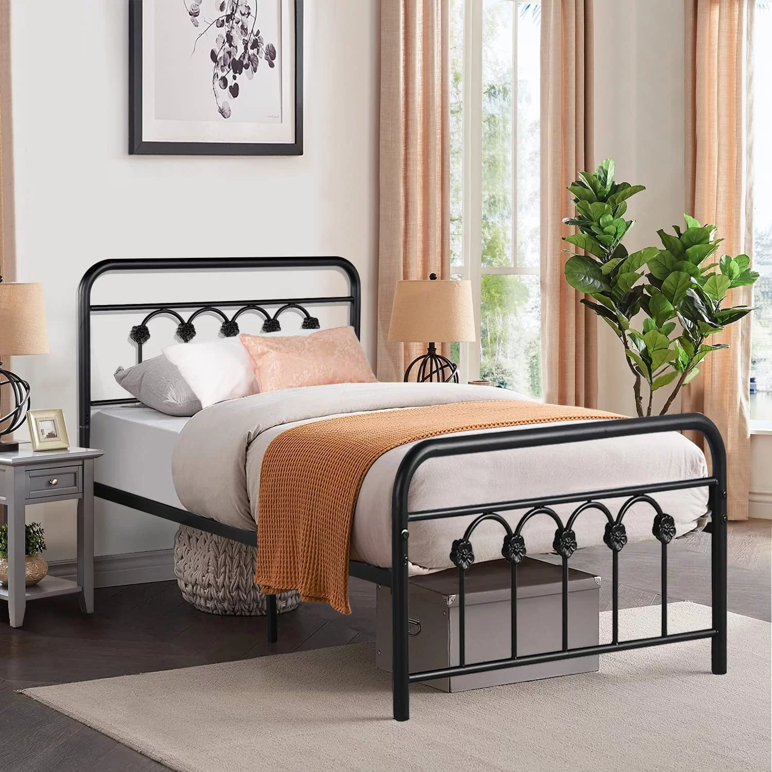 VECELO 3-Piece Twin Bedroom Sets Include Metal Platform Bed Frame and 2 Black Nightstands