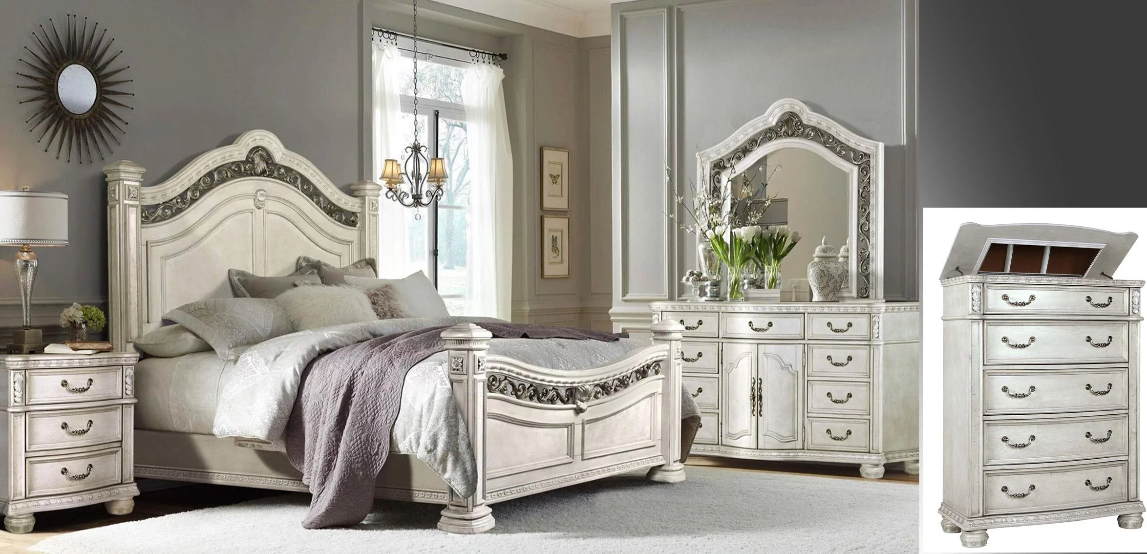 Antique White Wood Flip Top Chest Chest B162 McFerran Classic Traditional