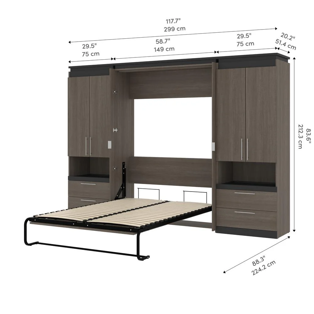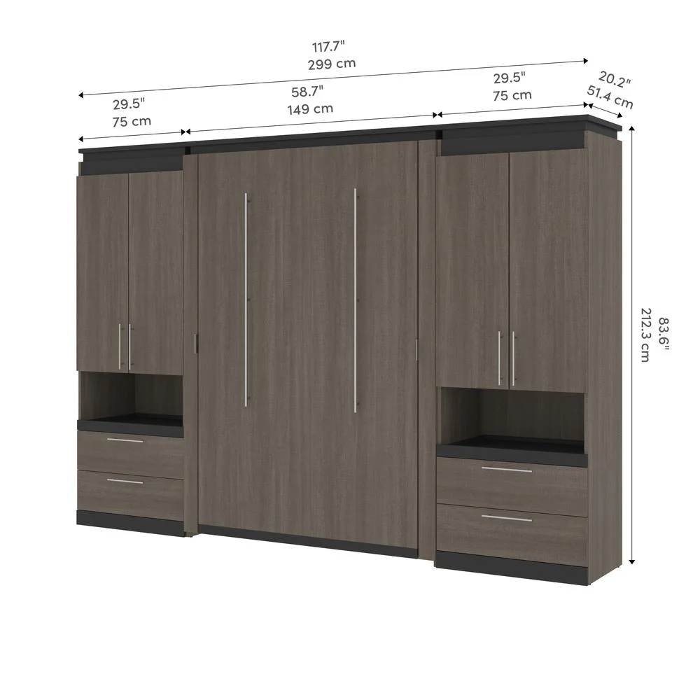 Bestar Orion 118" Full Murphy Bed with 2 Storage Cabinets in Bark Gray