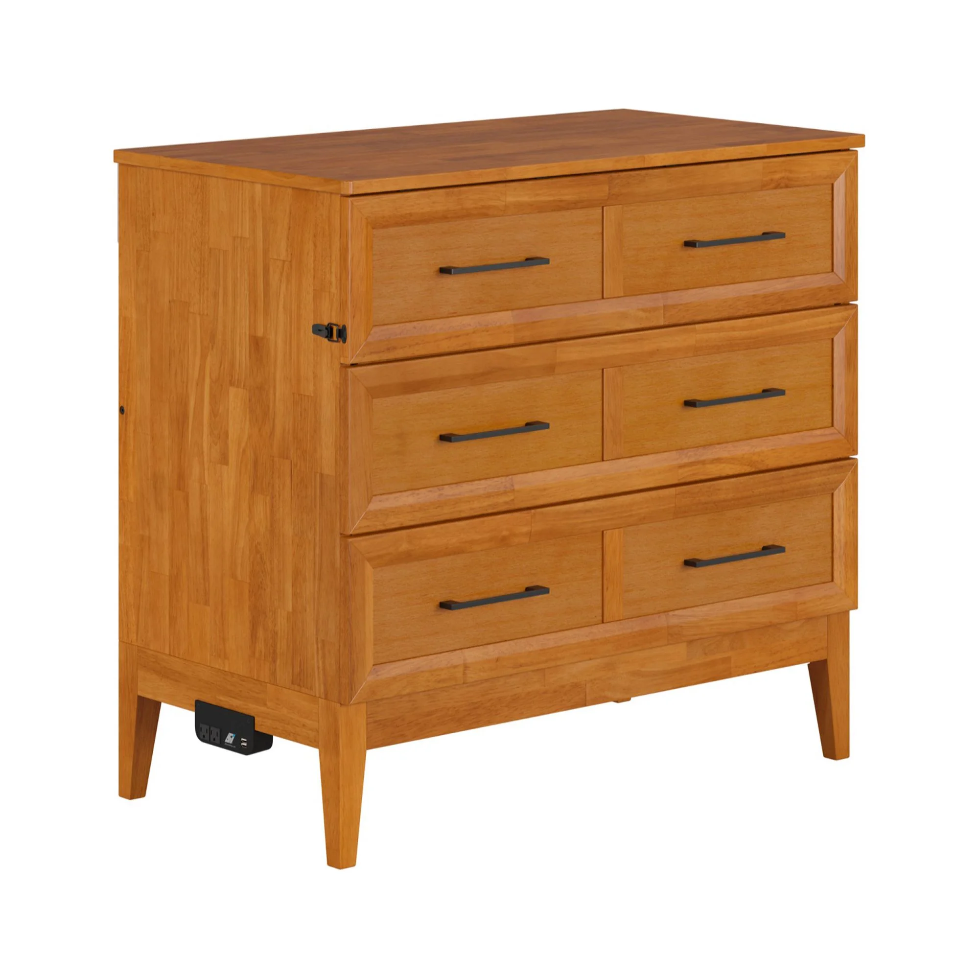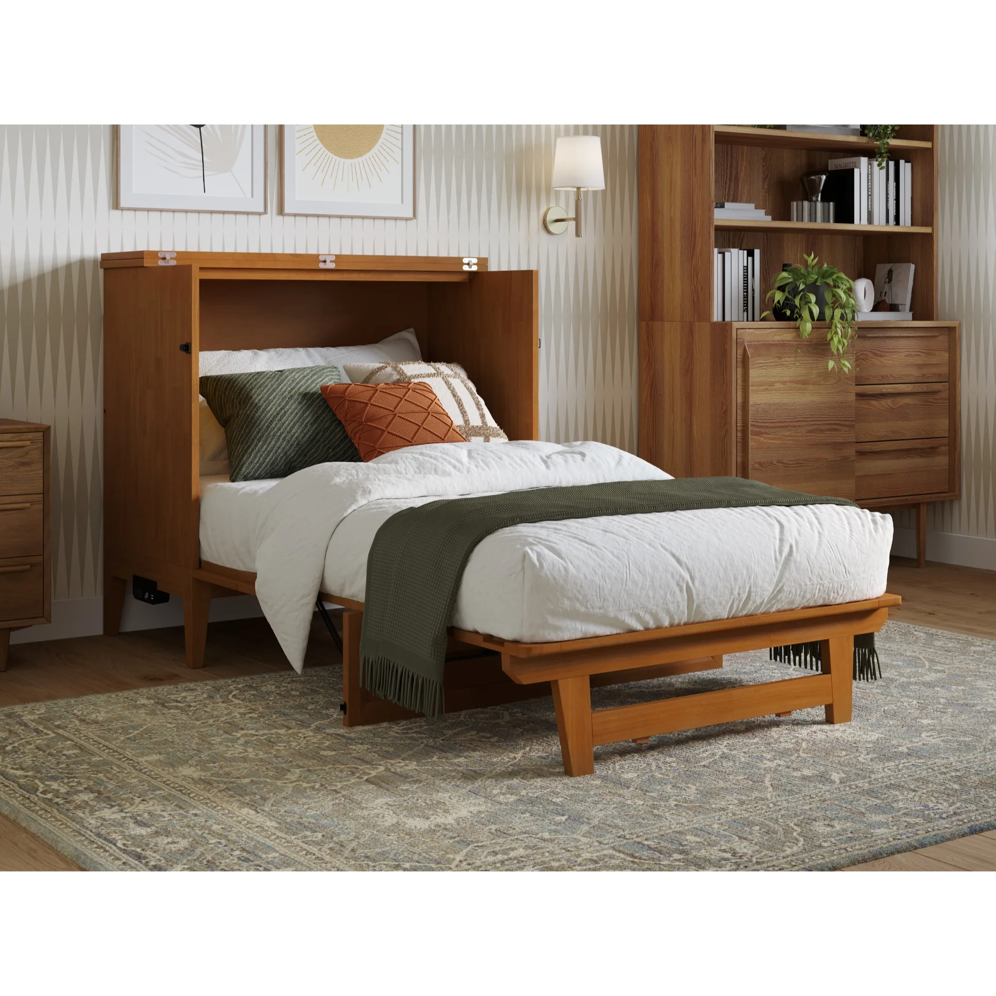 Santa Fe Twin Murphy Bed Chest with Mattress & Built-in Charger in Light Toffee