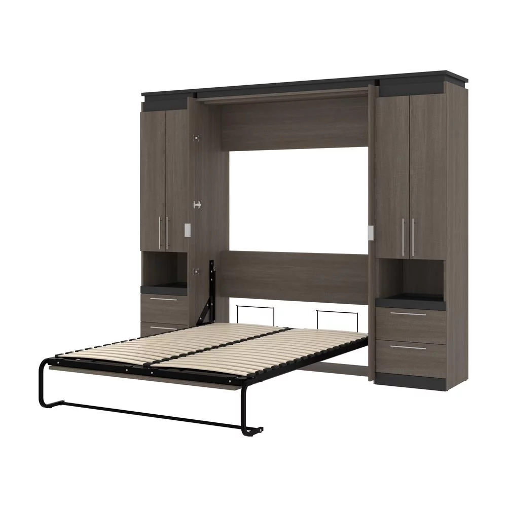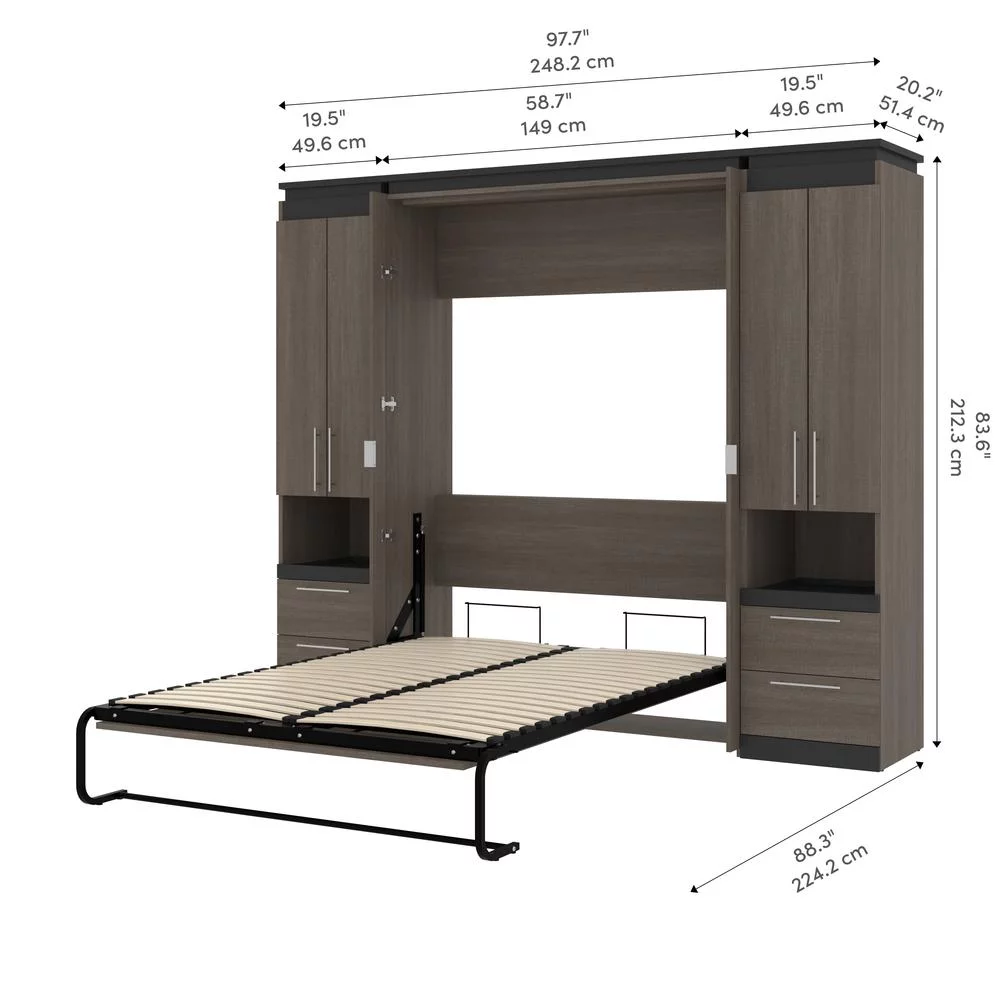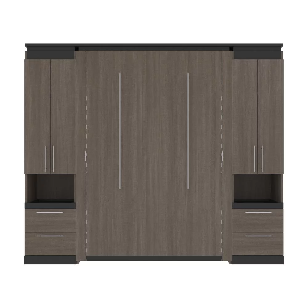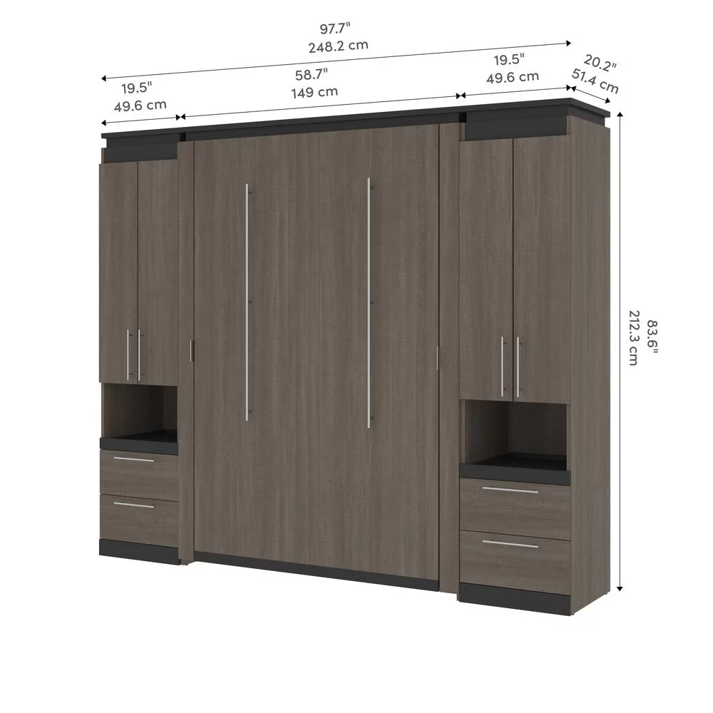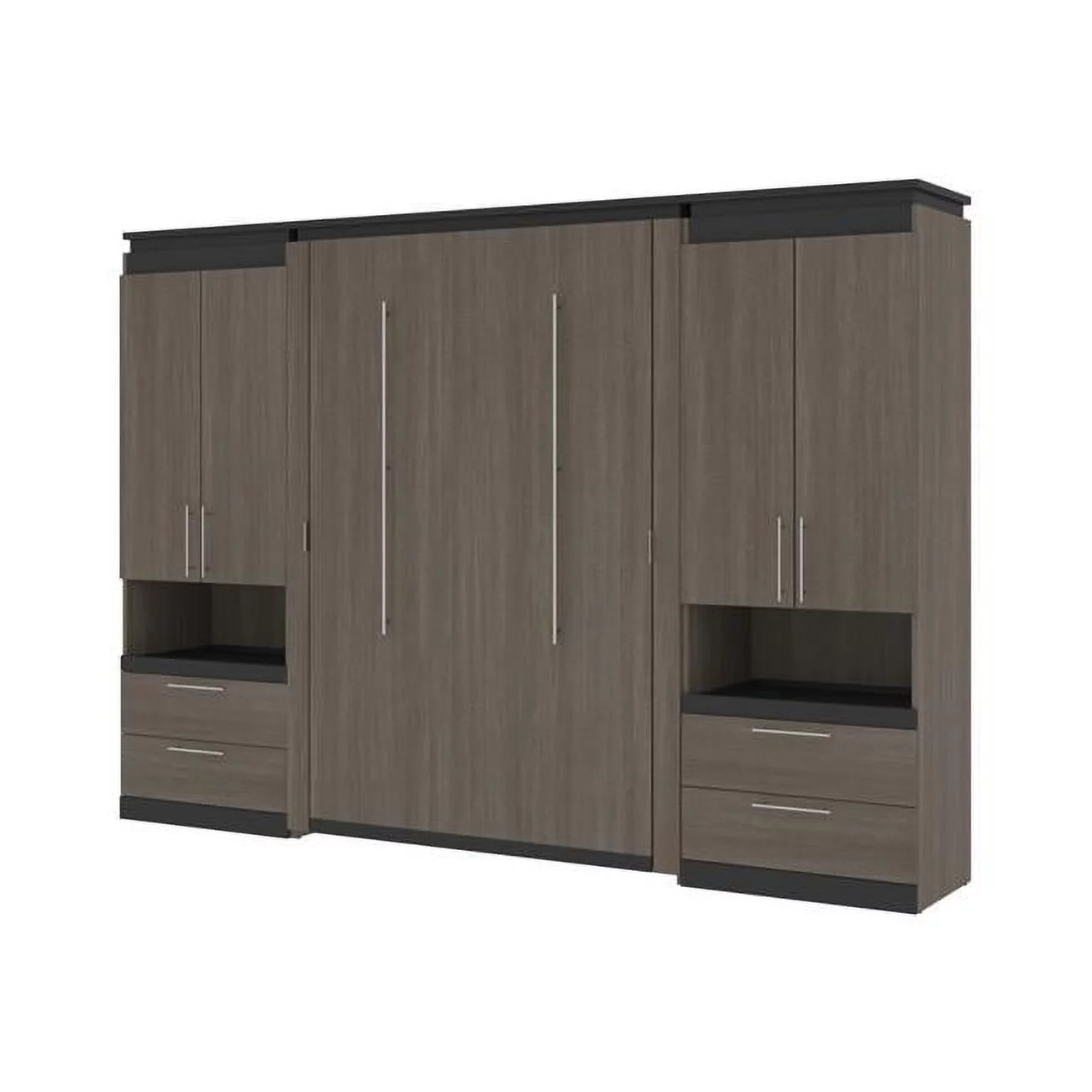 Bestar Orion 98" Full Murphy Bed with 2 Storage Cabinets in Bark Gray
