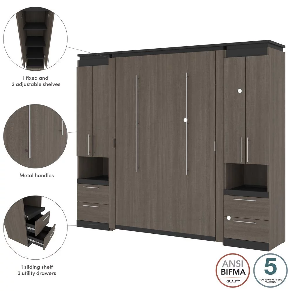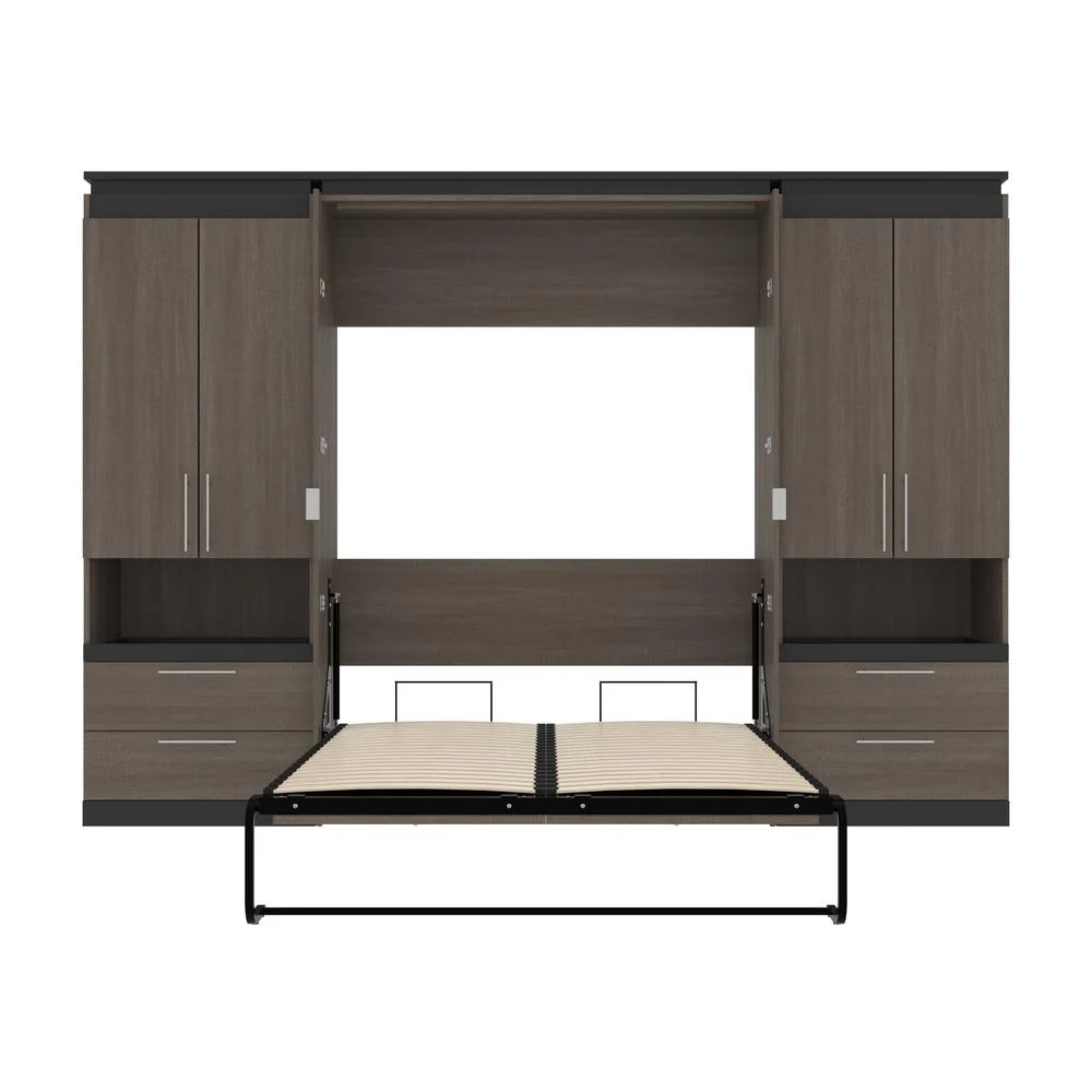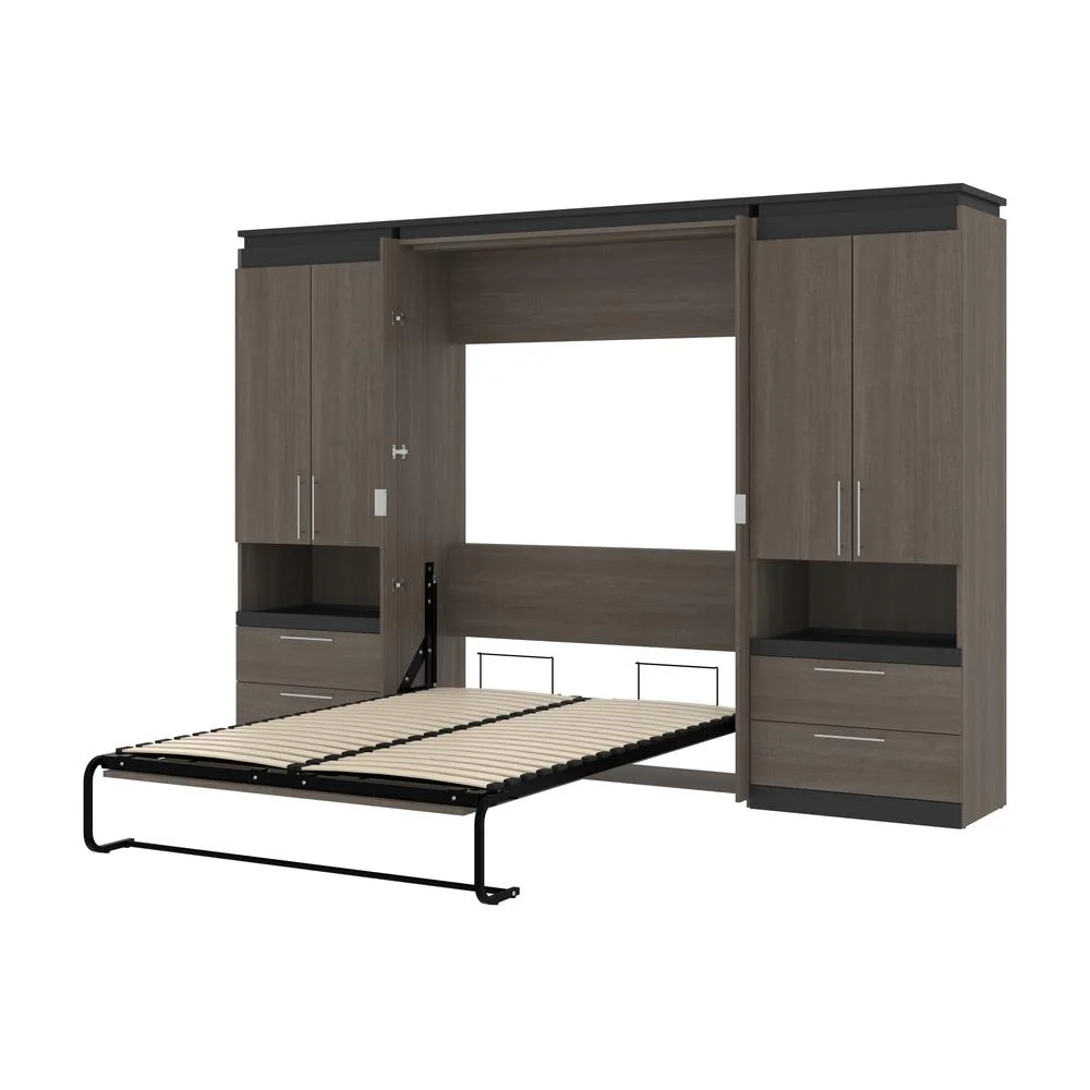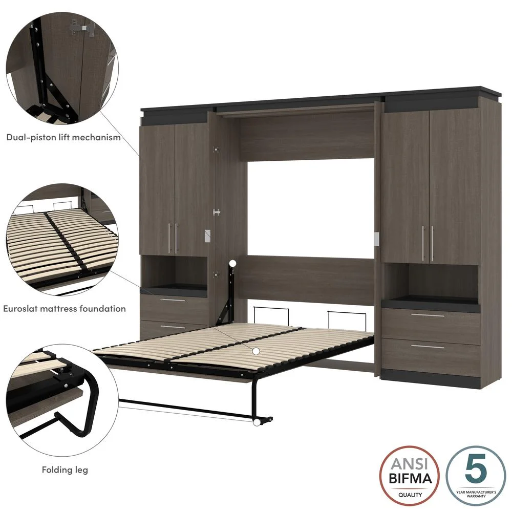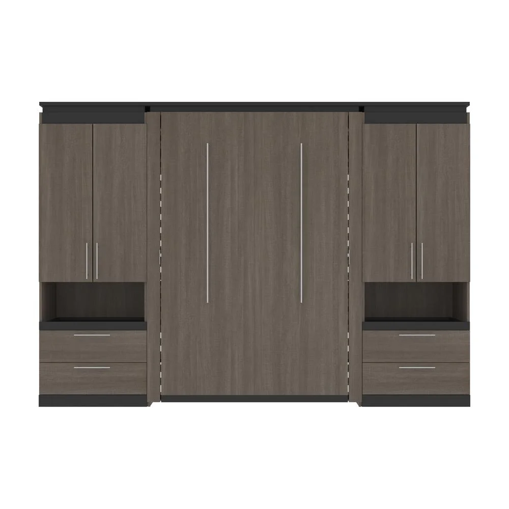 Bestar Orion 98" Full Murphy Bed with 2 Storage Cabinets in Bark Gray