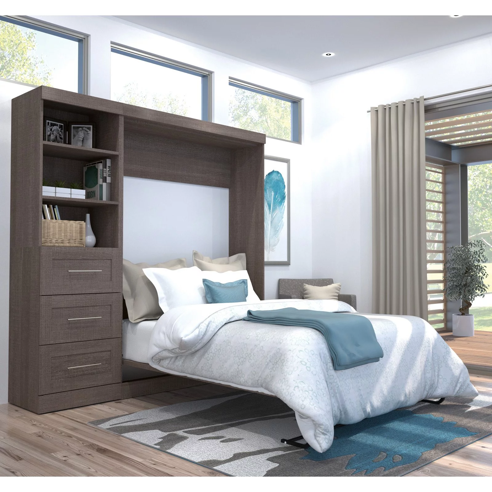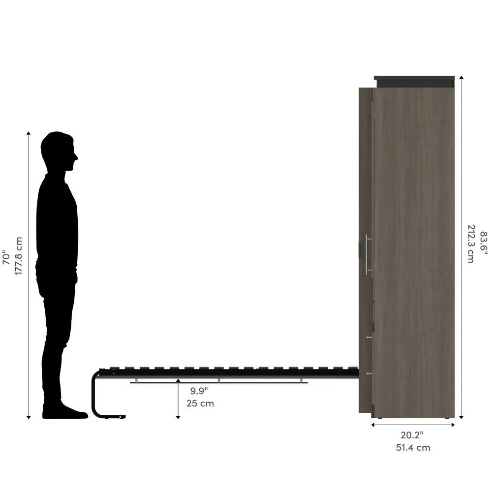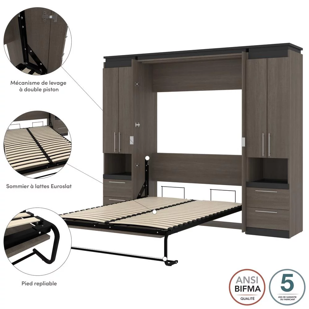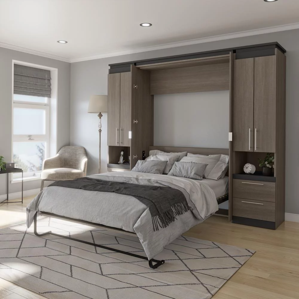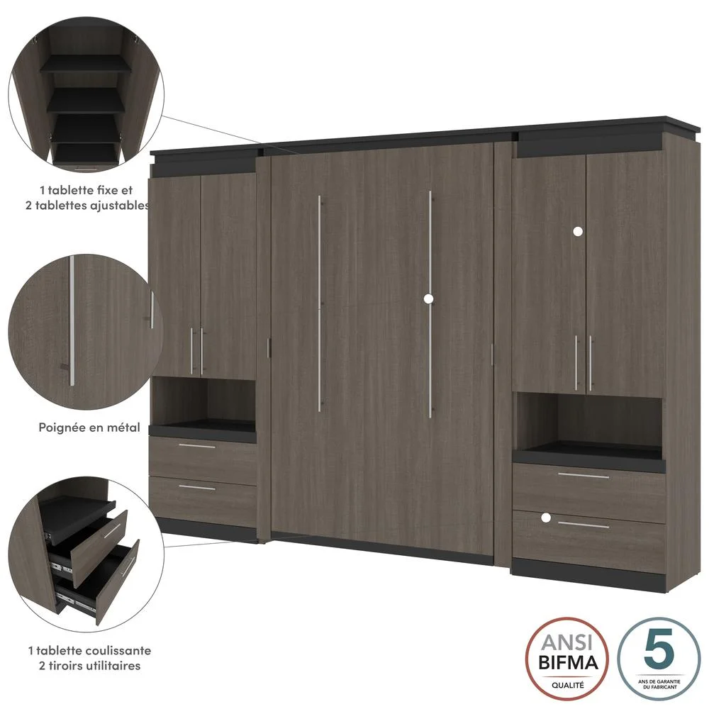 Bestar Orion 98" Full Murphy Bed with 2 Storage Cabinets in Bark Gray