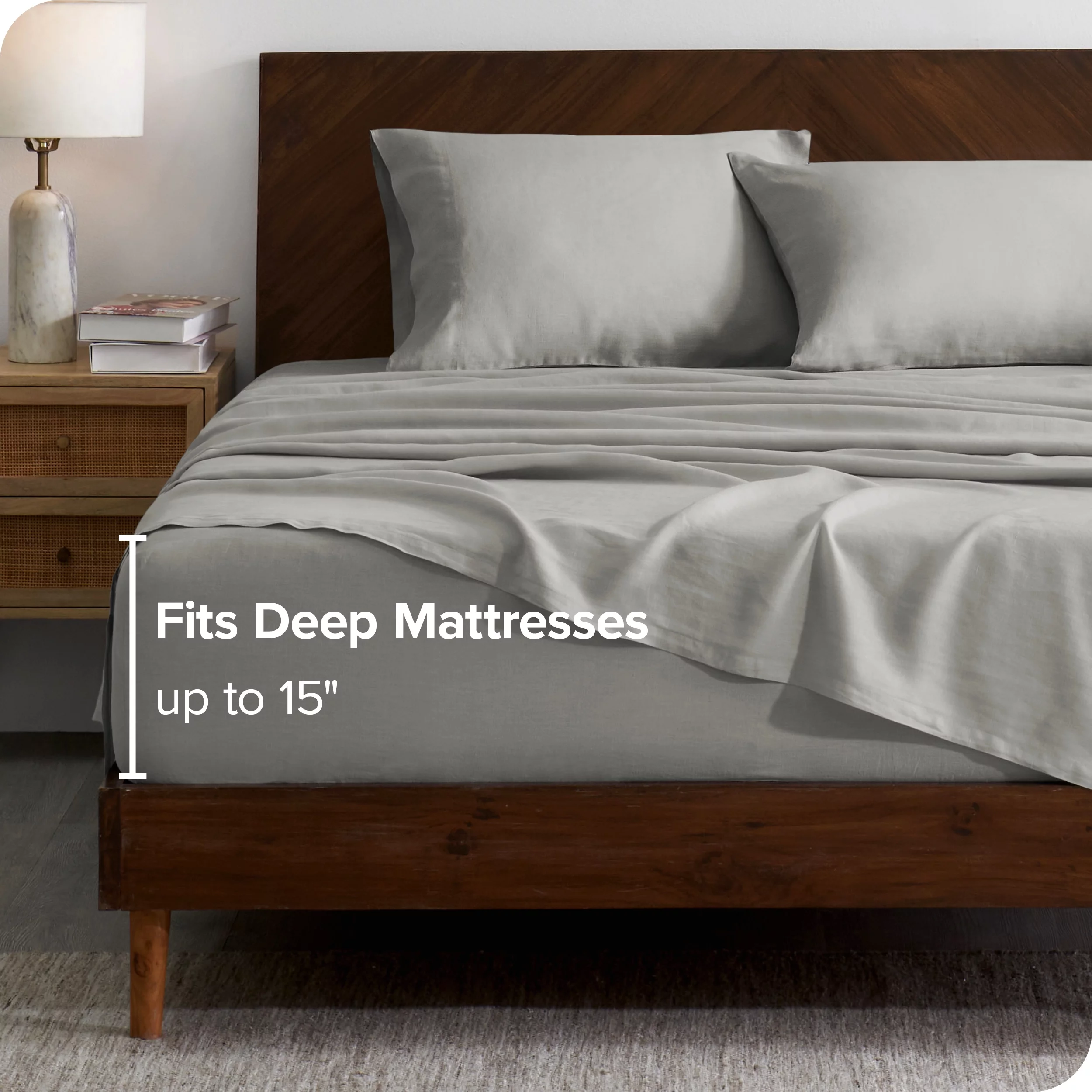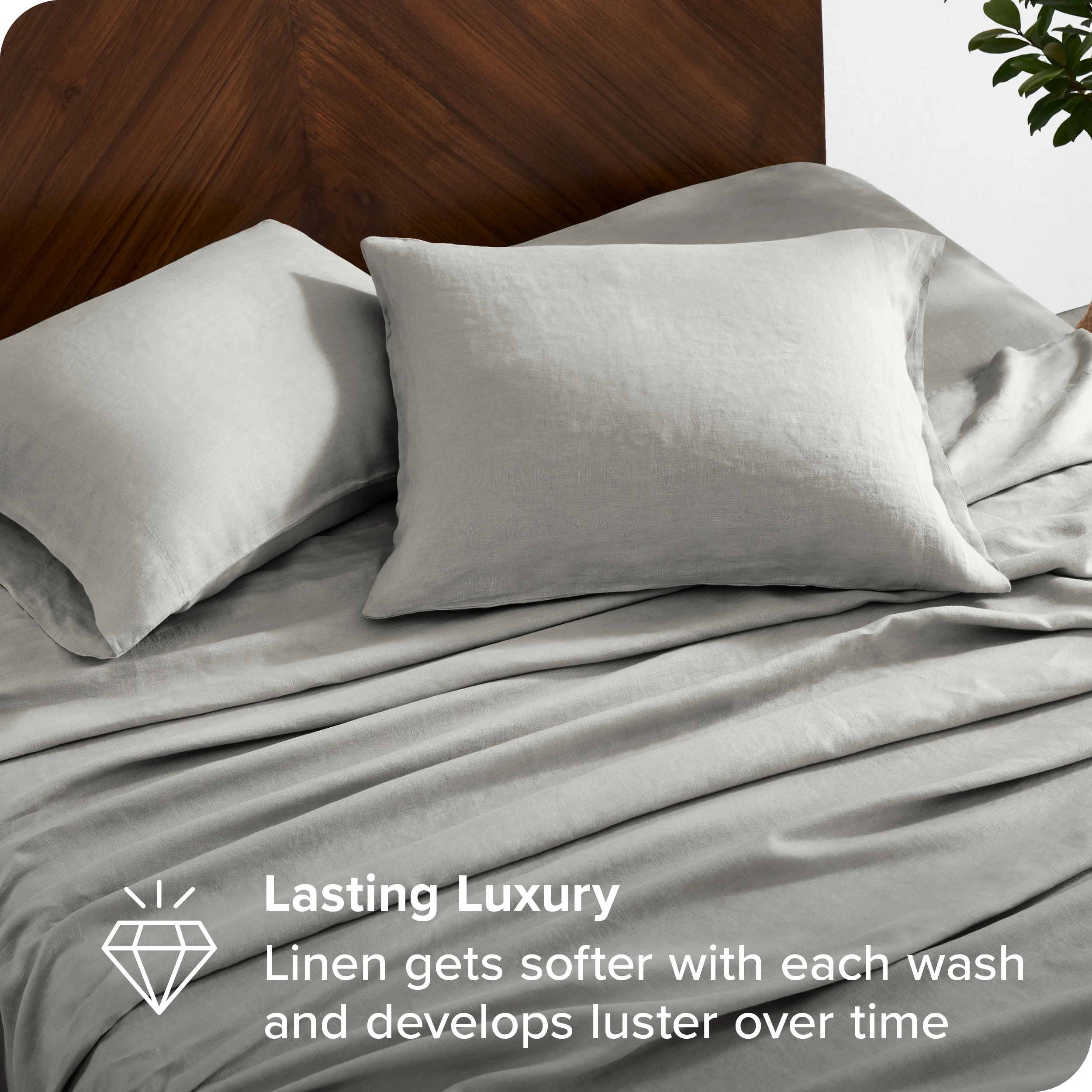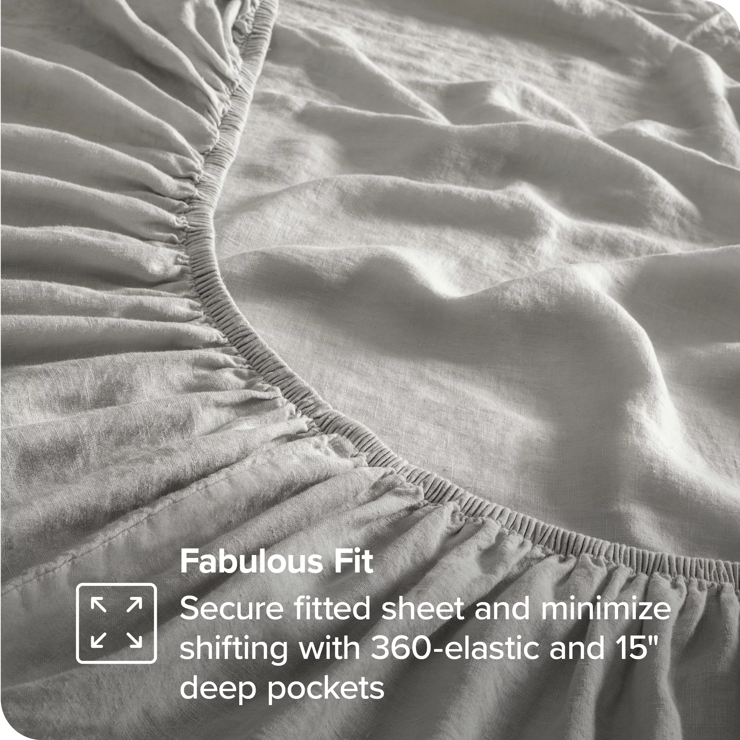 Bare Home Linen Sheet Set - Deep Pocket - Breathable - 4-Pieces - Queen, Glacier Gray