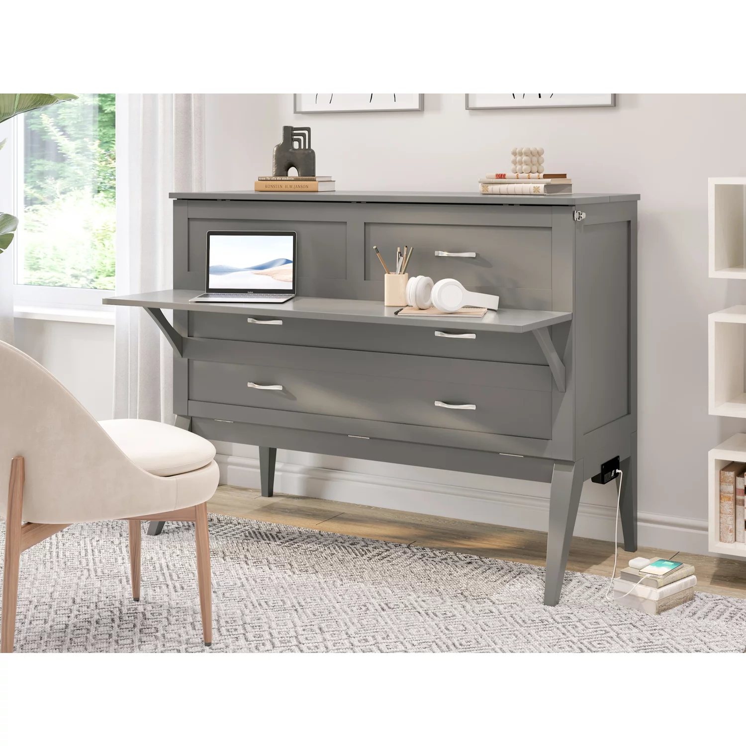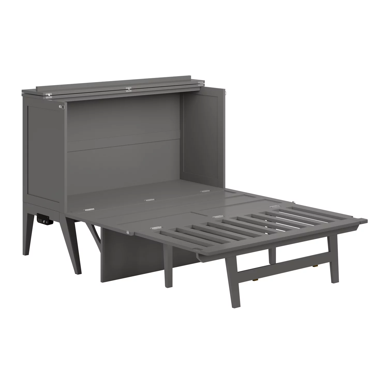 Northampton Solid Wood Frame Full Size Murphy Bed Desk with Mattress in Gray