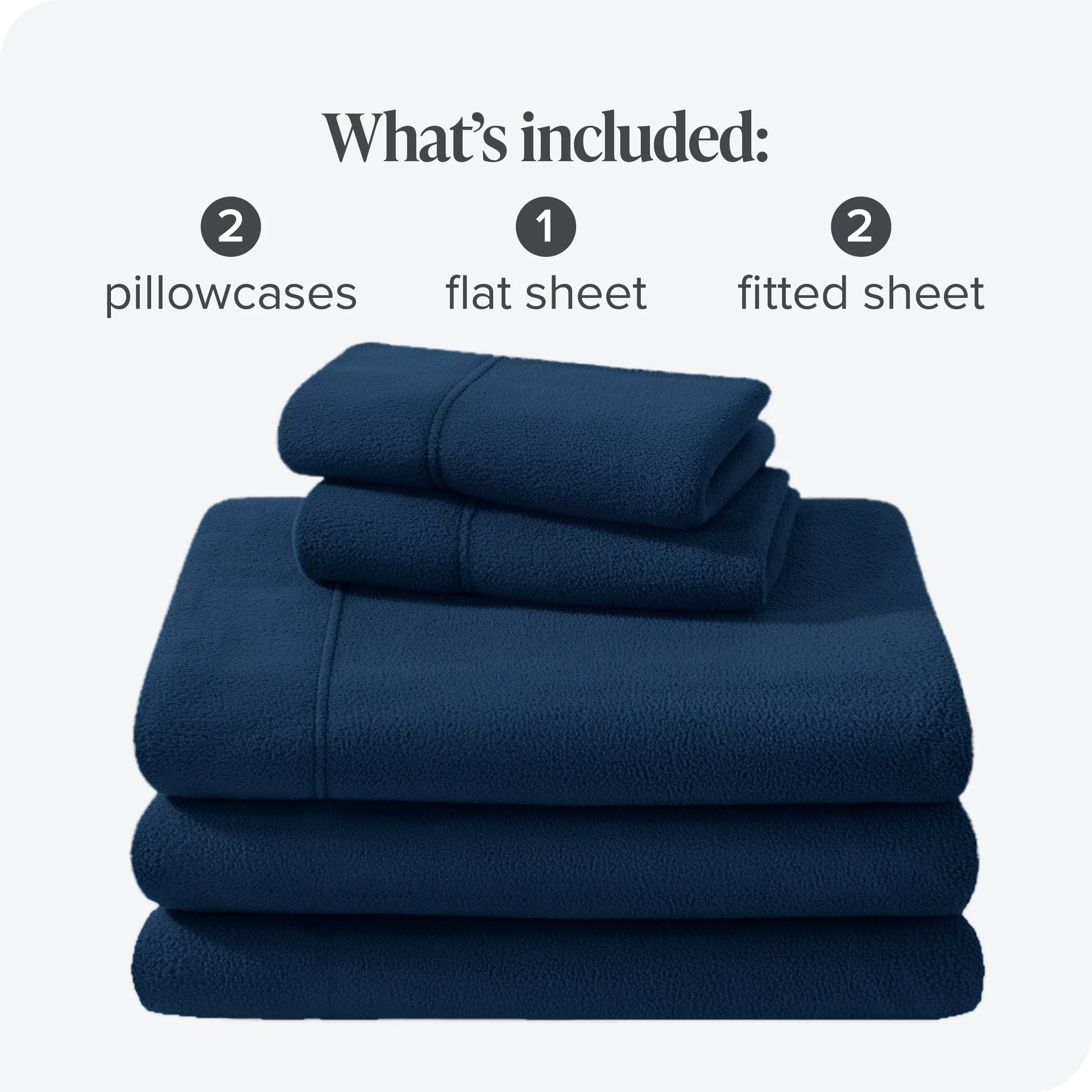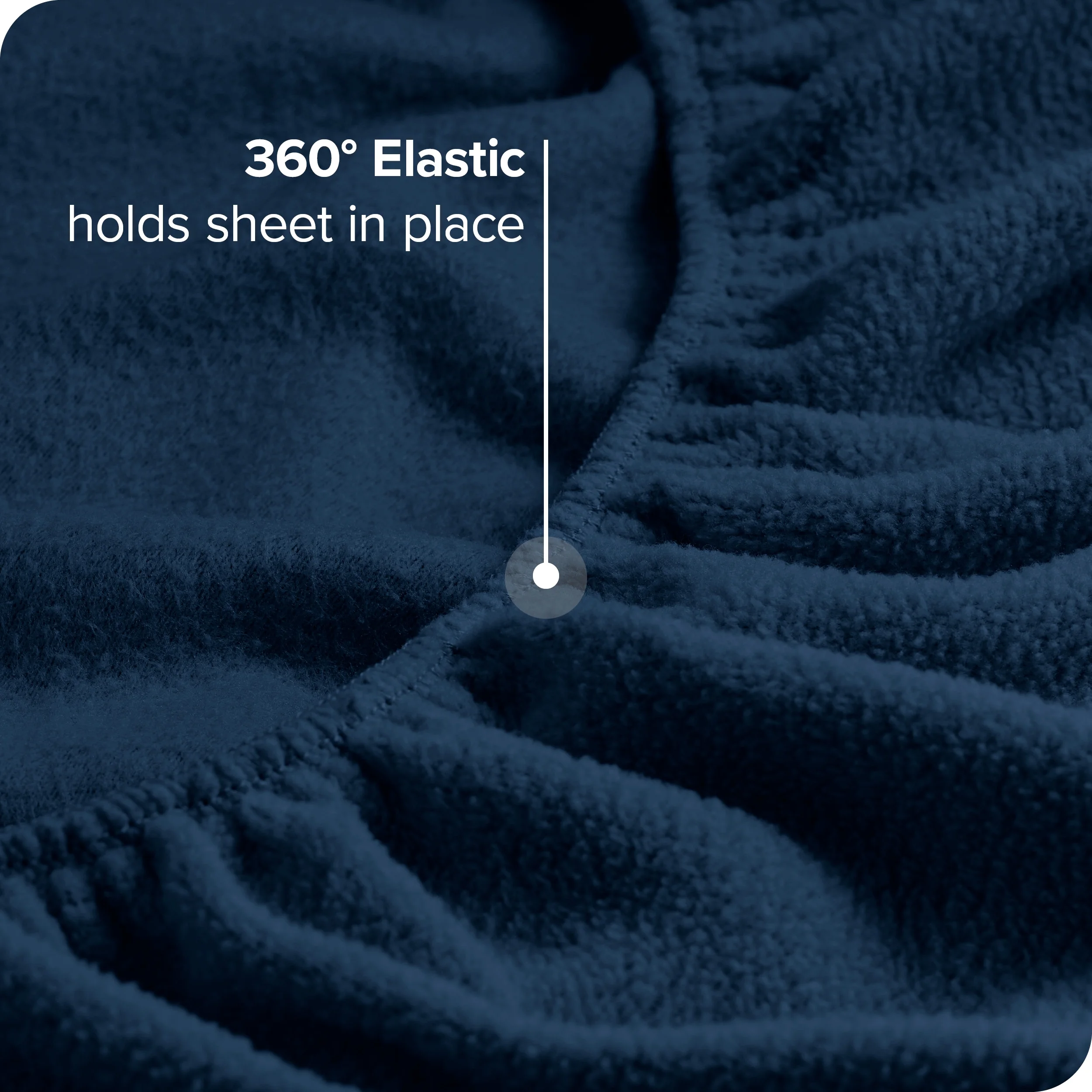 Bare Home Cozy Fleece Sheet Set - Extra Plush Polar Fleece - Deep Pocket - Split King, Dark Blue