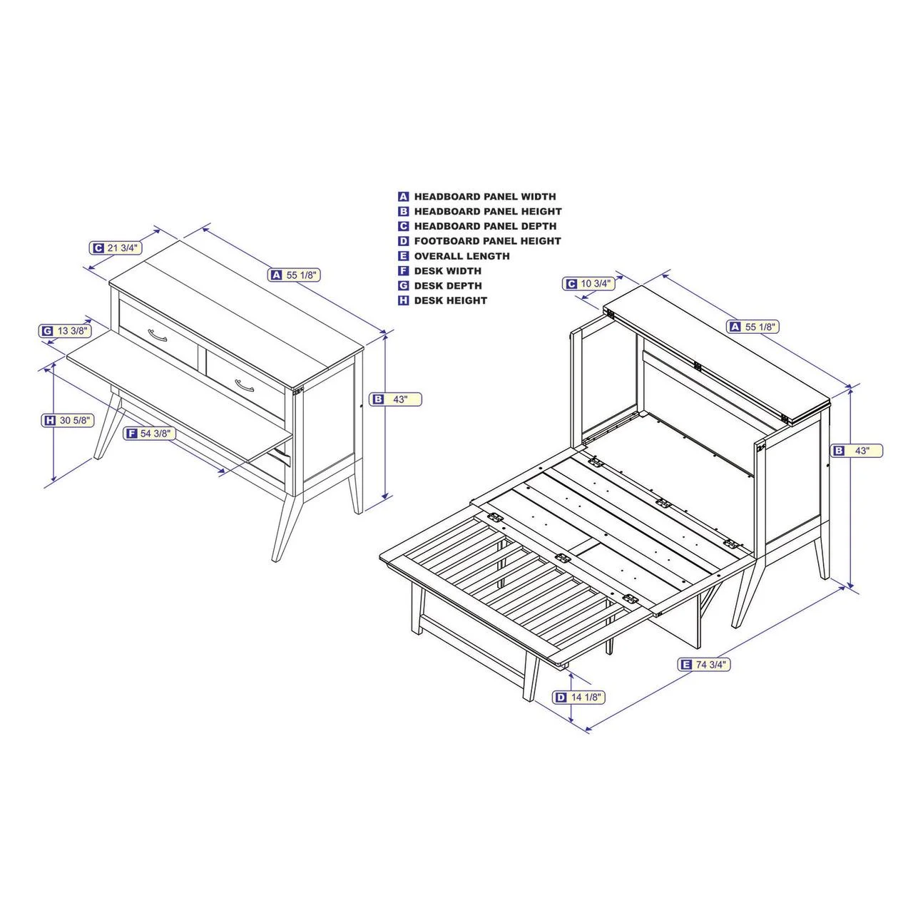 Northampton White Solid Wood Frame Full Size Murphy Bed Desk with Mattress