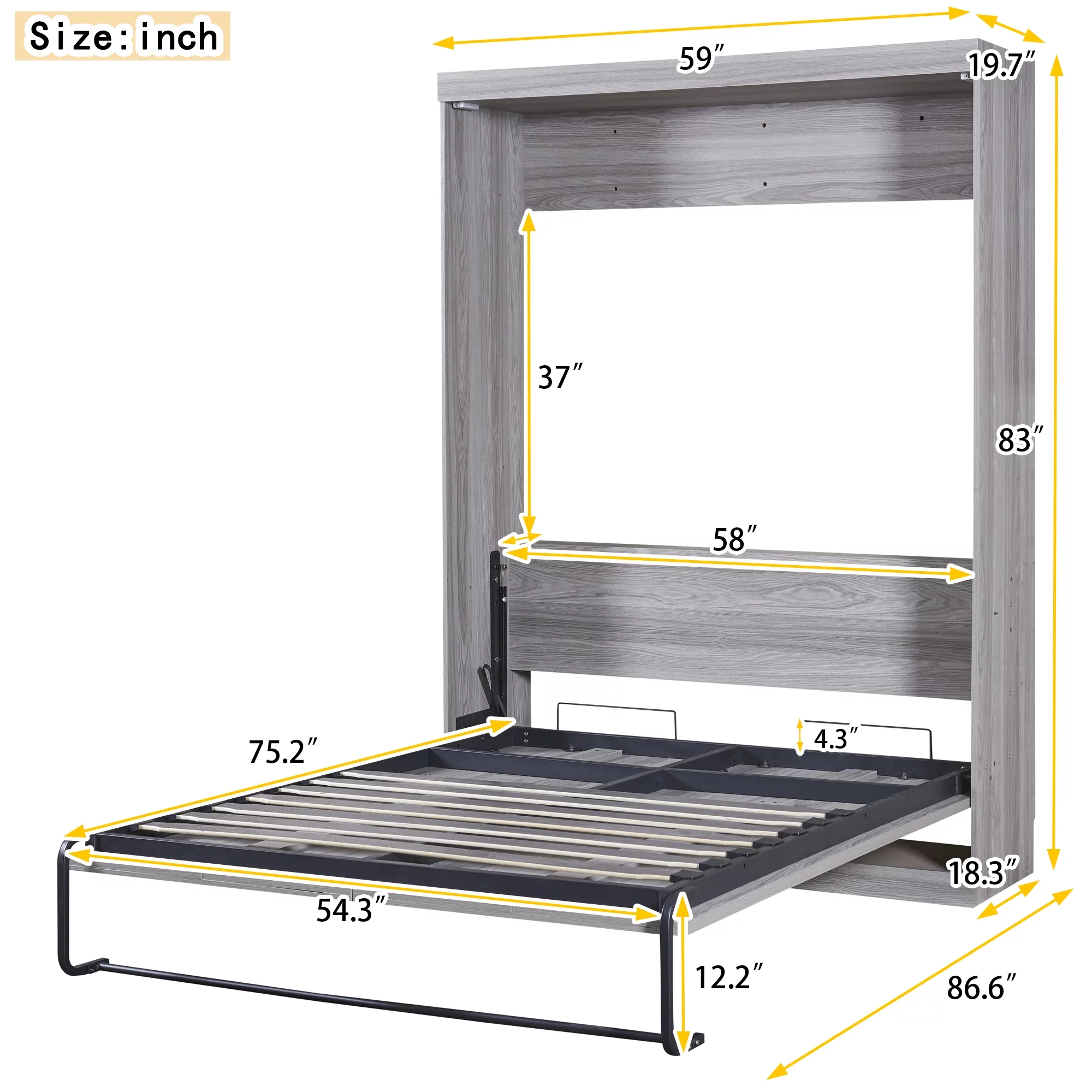Easy-Lift Full Murphy Wall Bed in Natural Brown Wood Grain with Shelf
