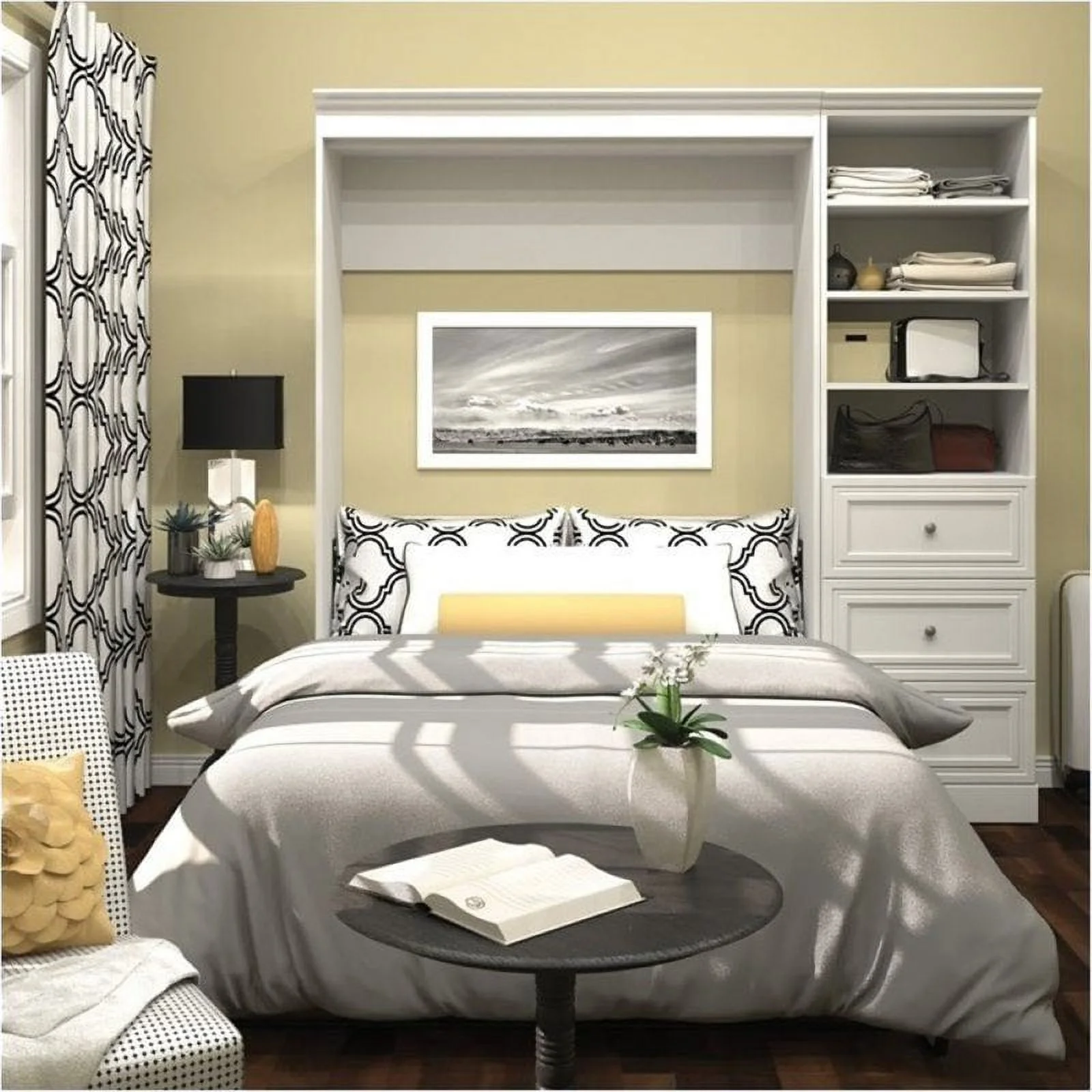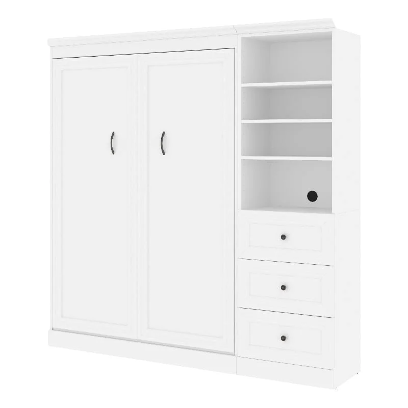 Bowery Hill 84" Wood Full Murphy Bed and Organizer with Drawers in White