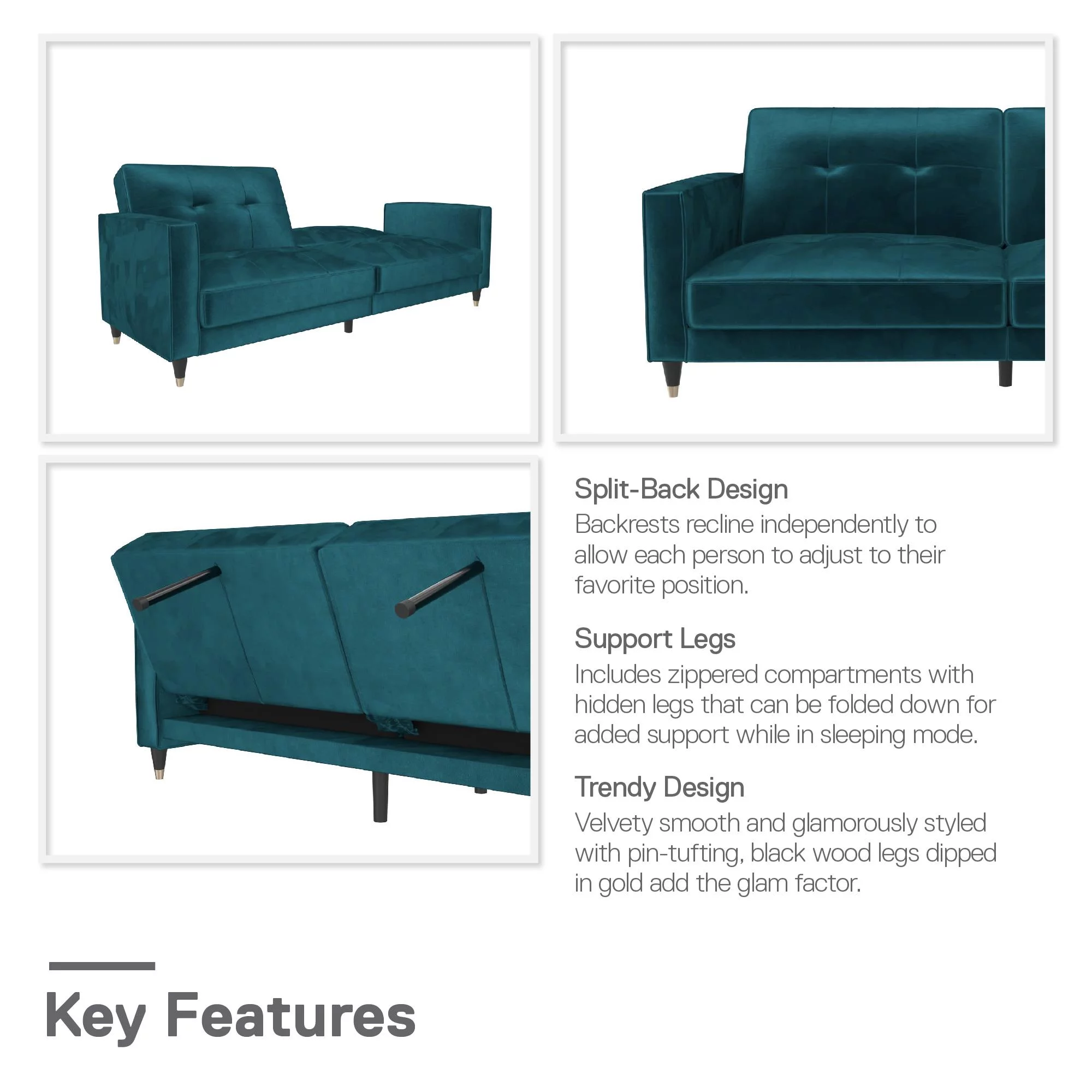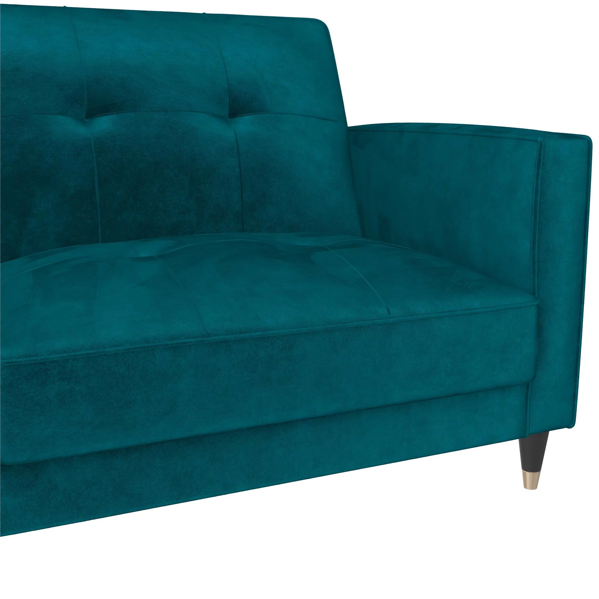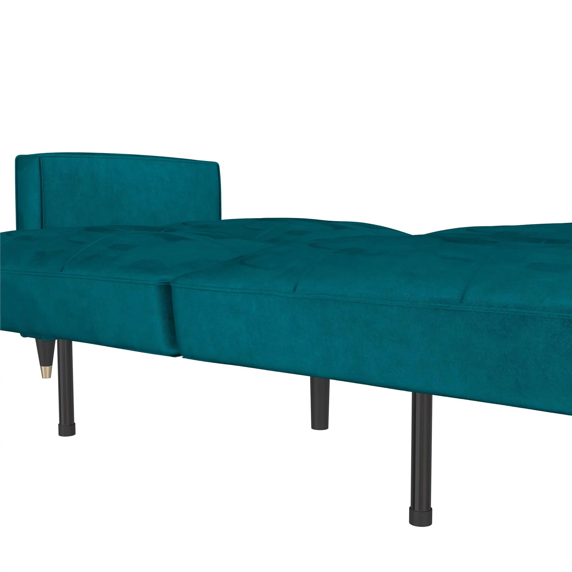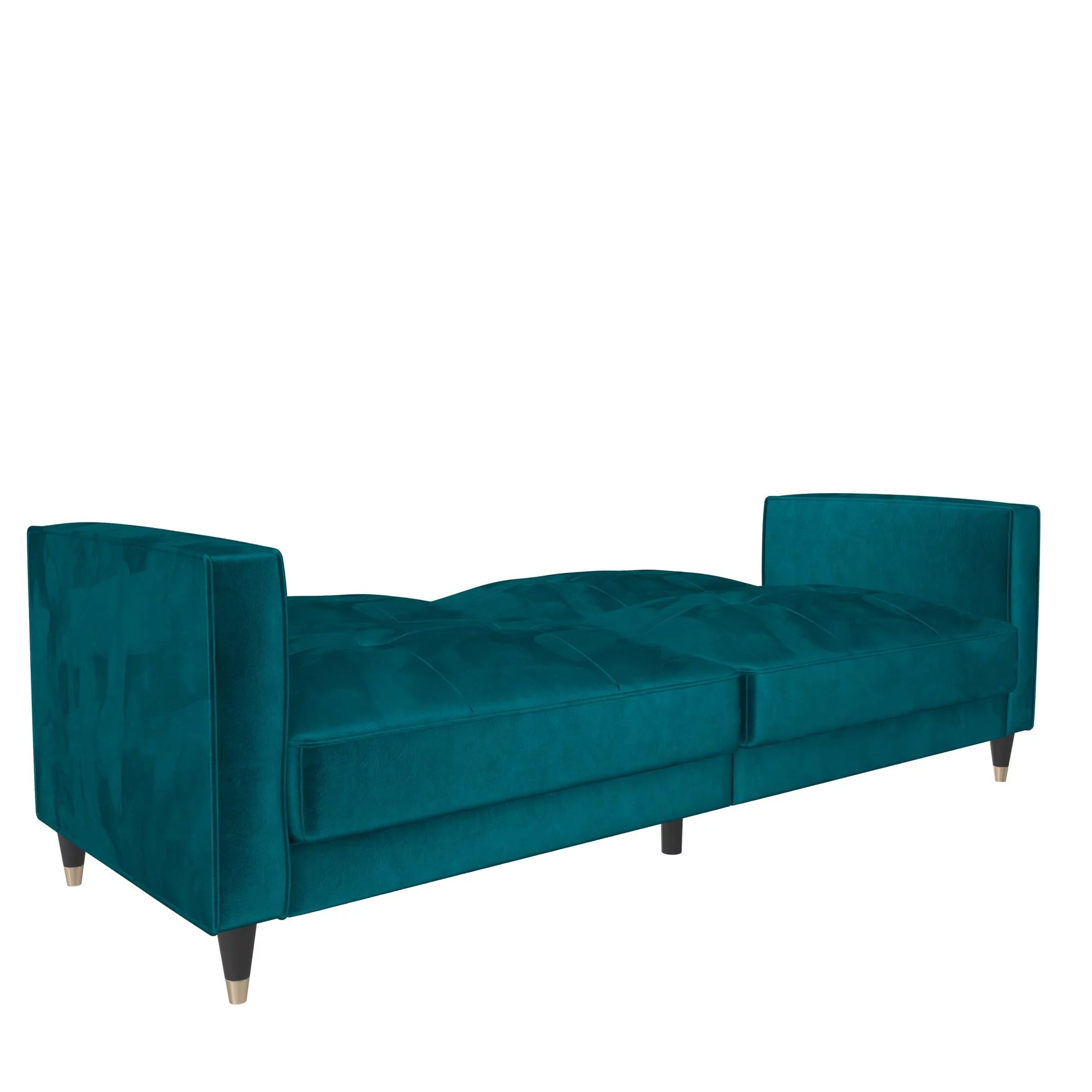DHP Penelope Futon Sleeper Sofa with Gold Tipped Black Legs, Green Velvet