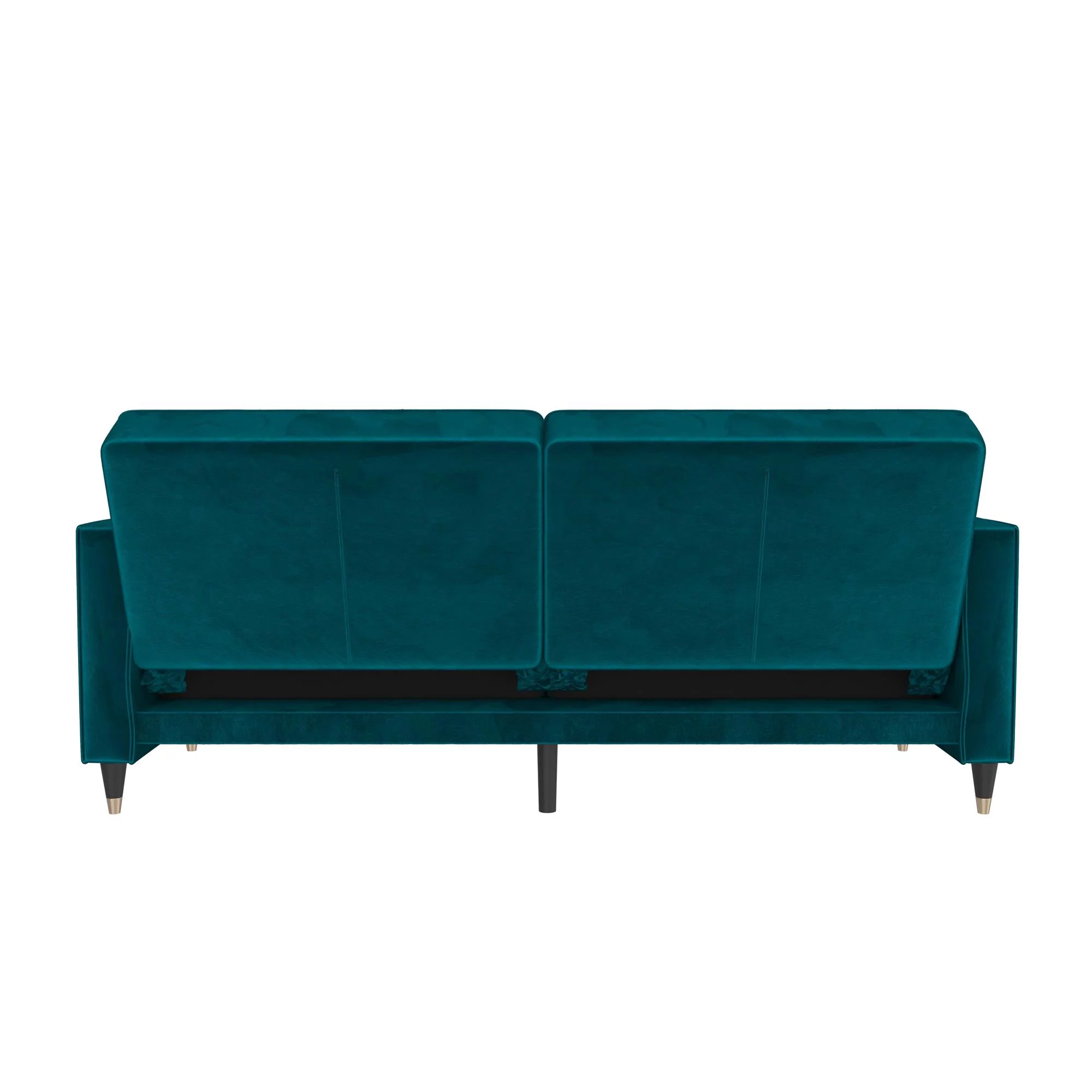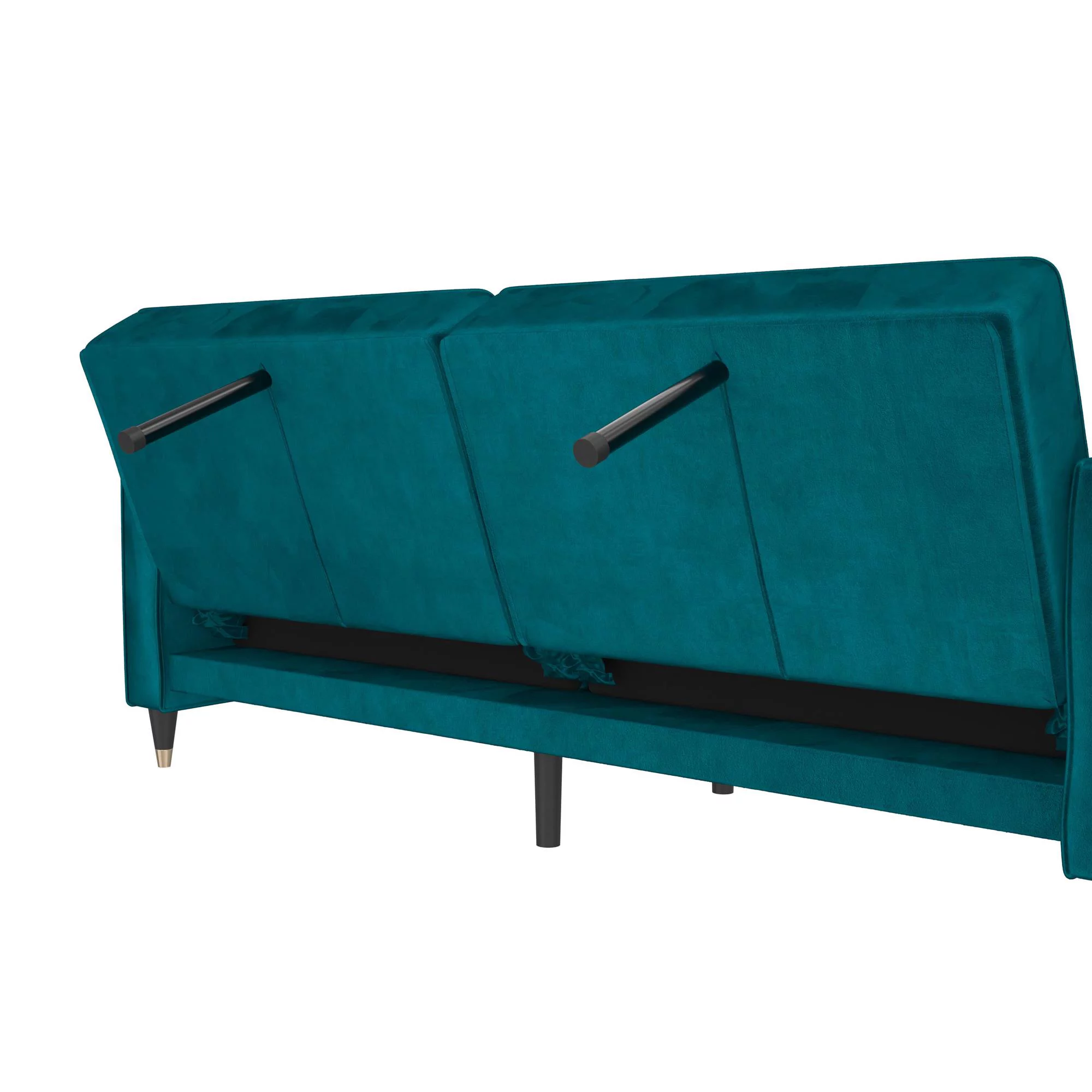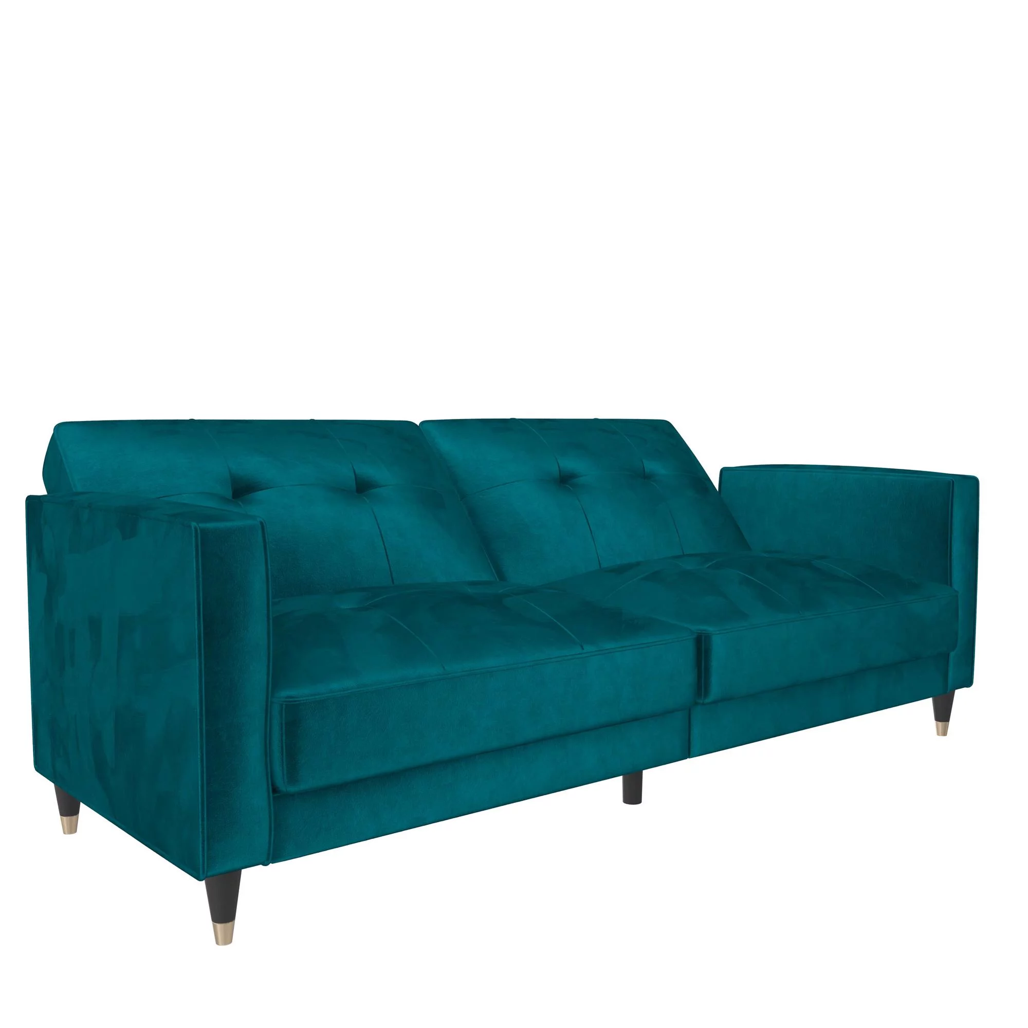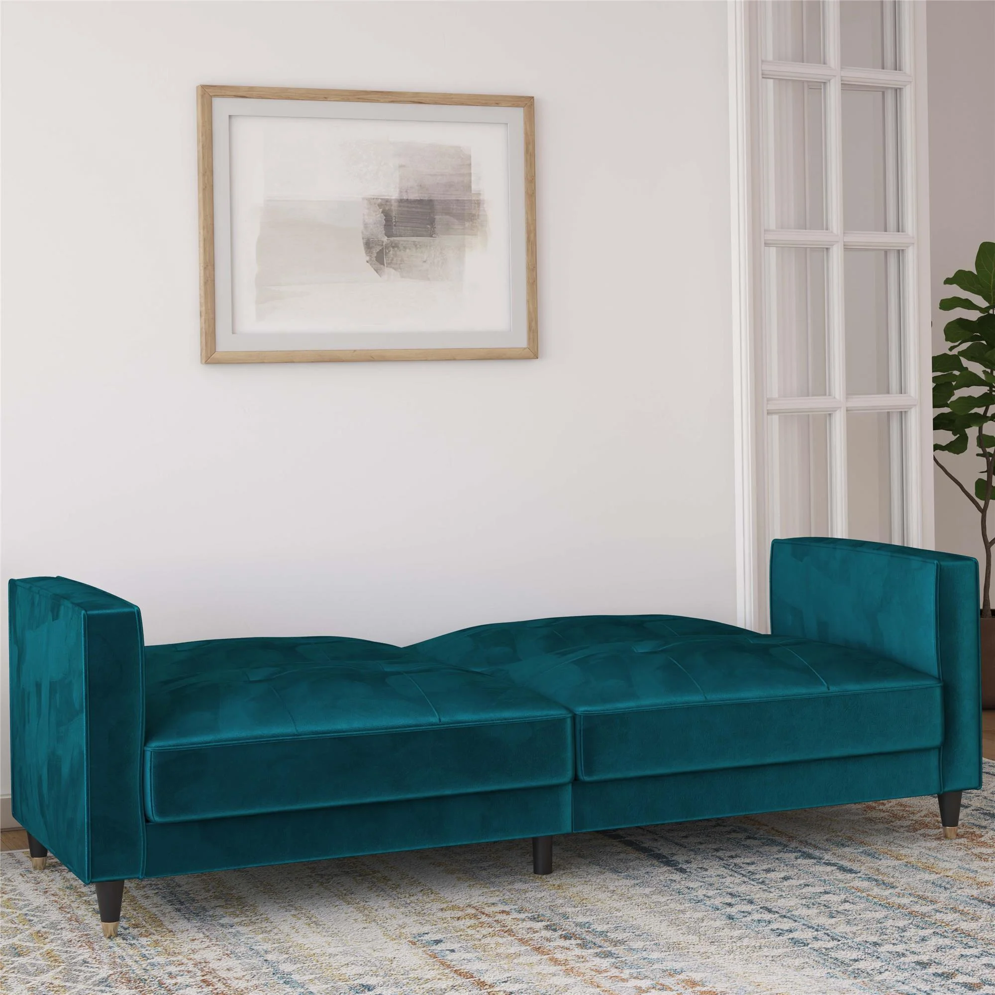 DHP Penelope Futon Sleeper Sofa with Gold Tipped Black Legs, Green Velvet