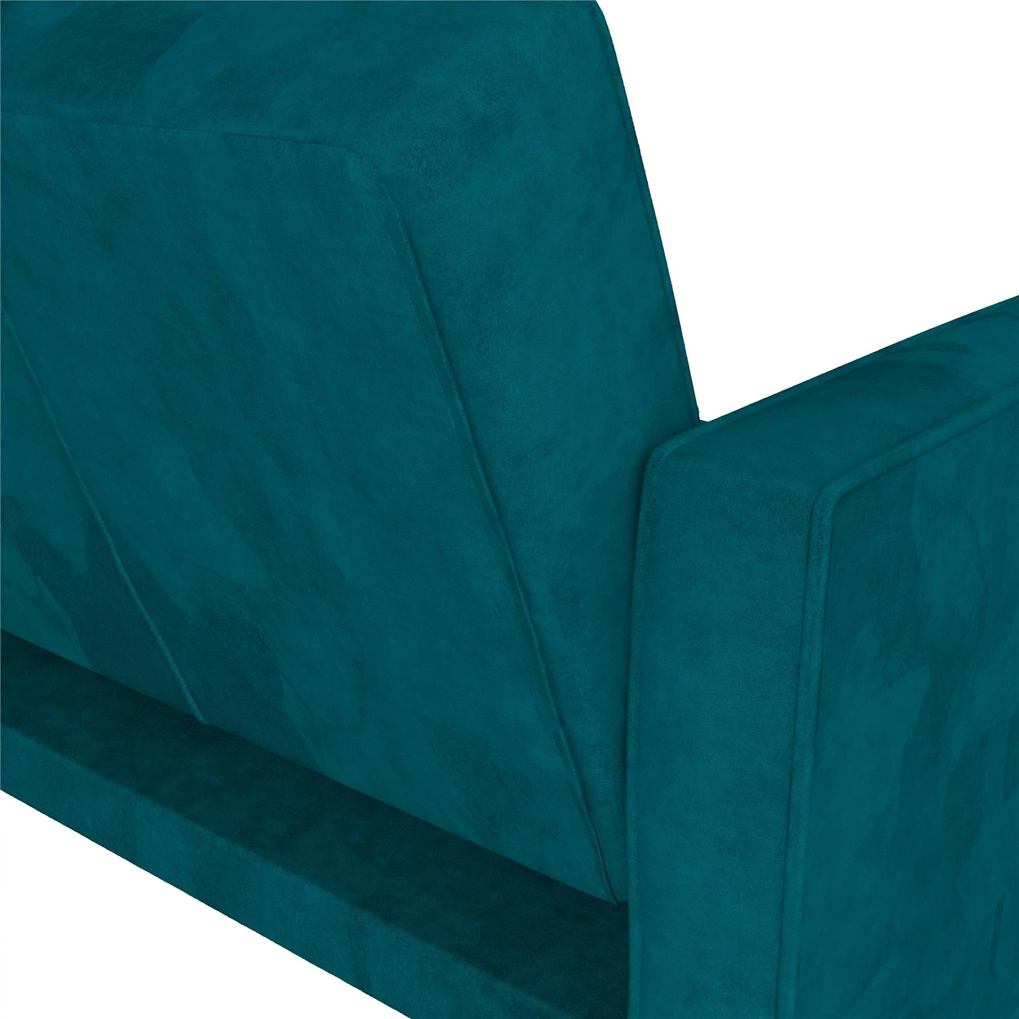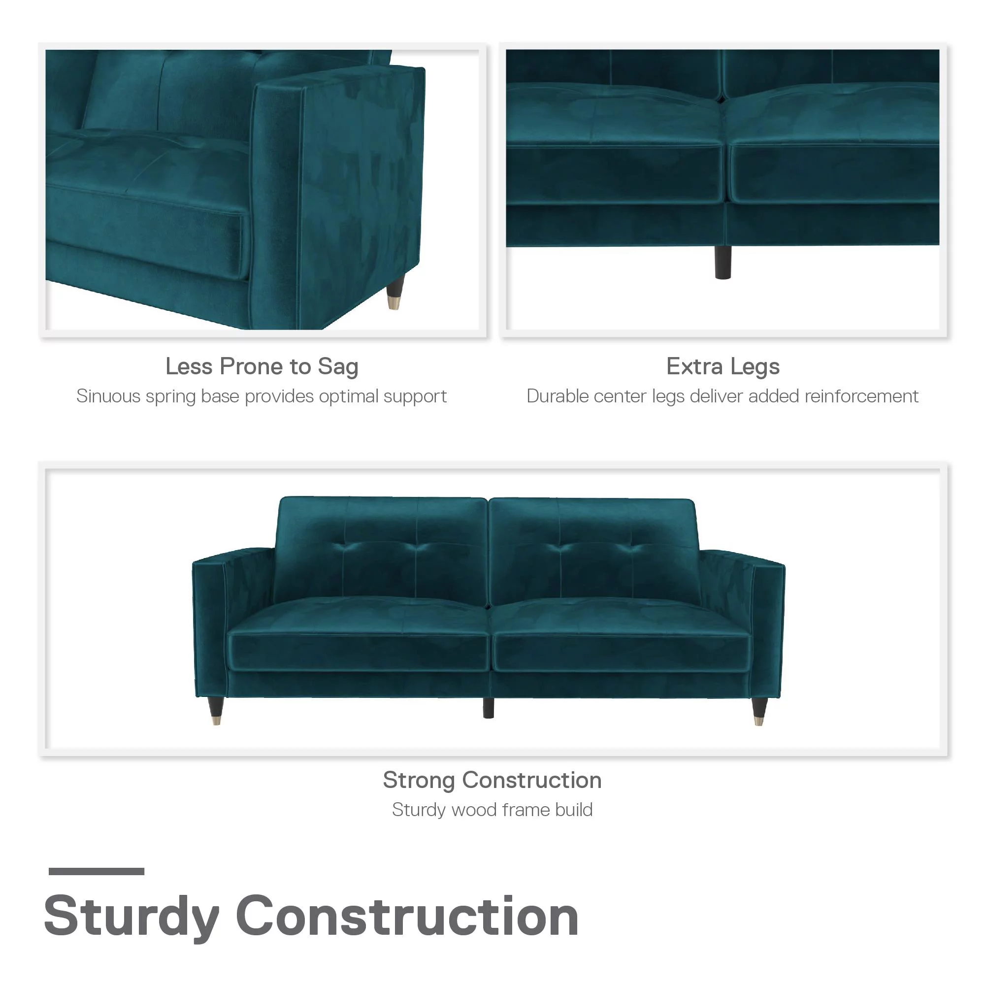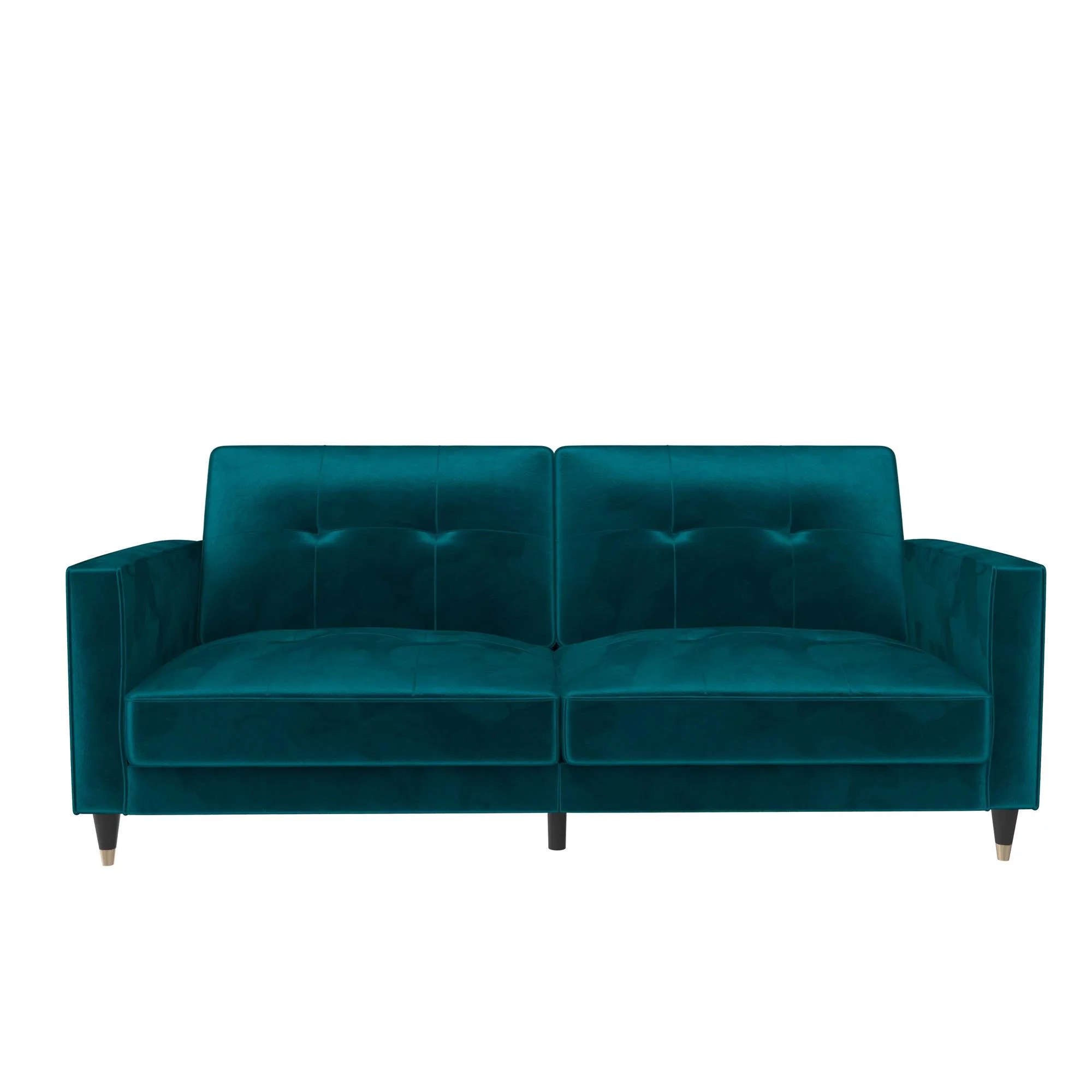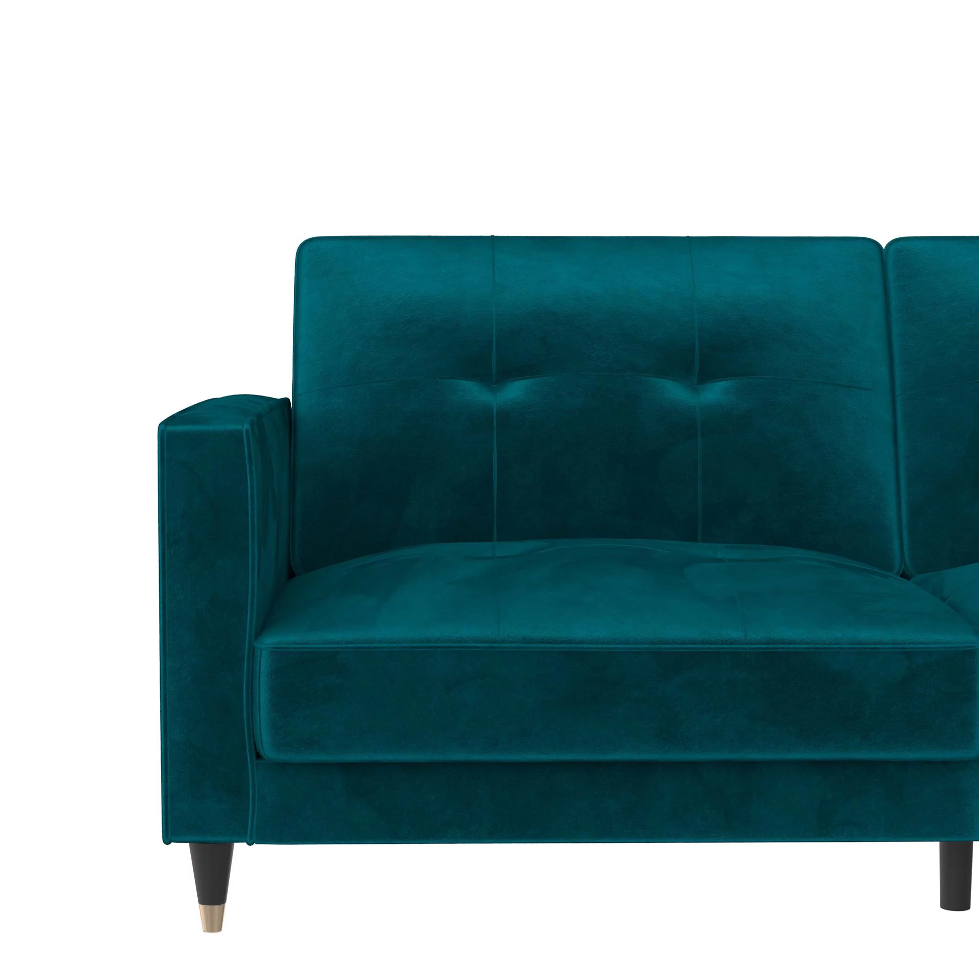 DHP Penelope Futon Sleeper Sofa with Gold Tipped Black Legs, Green Velvet