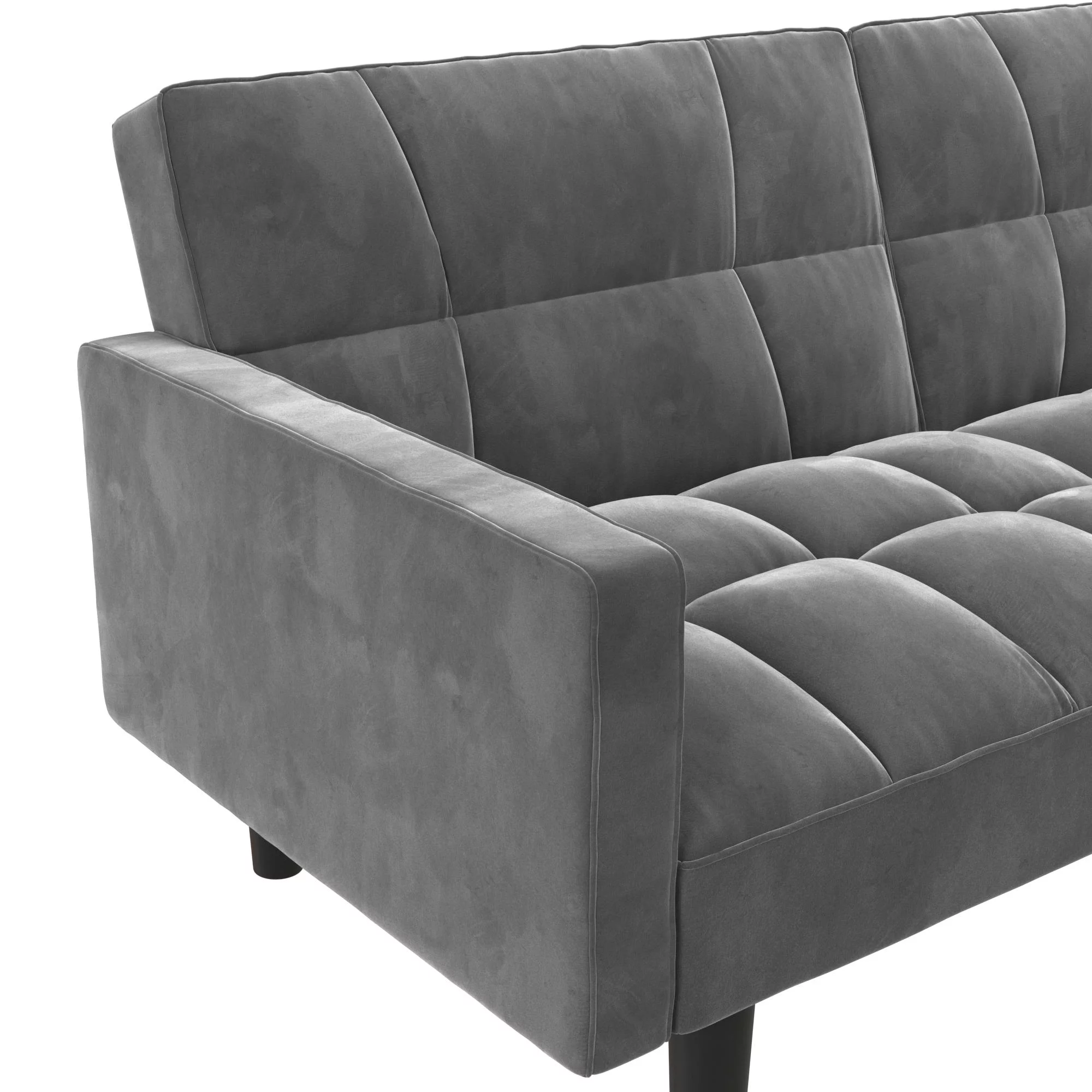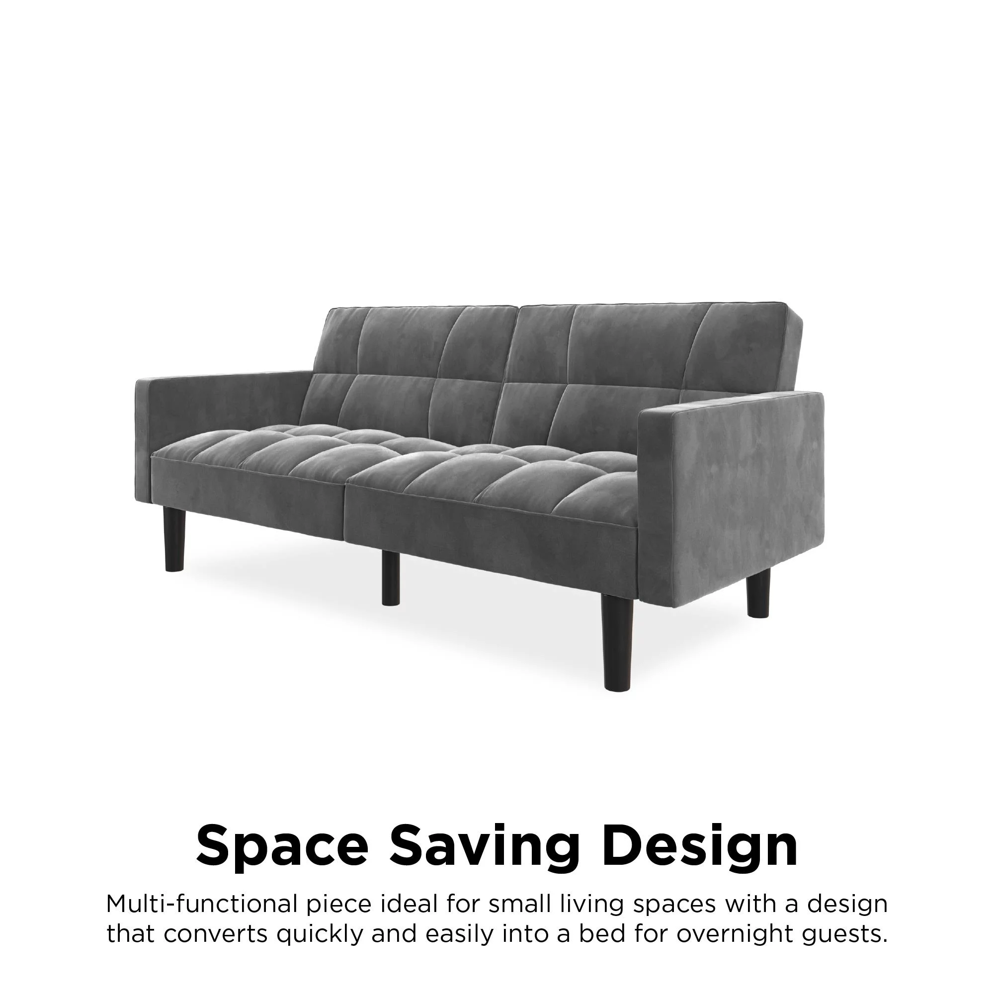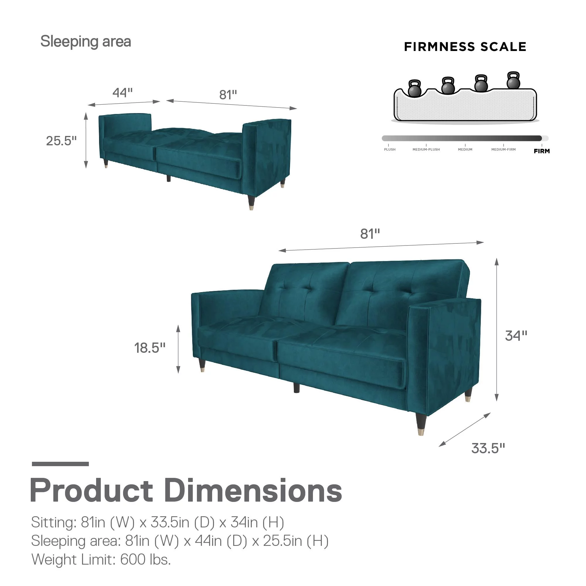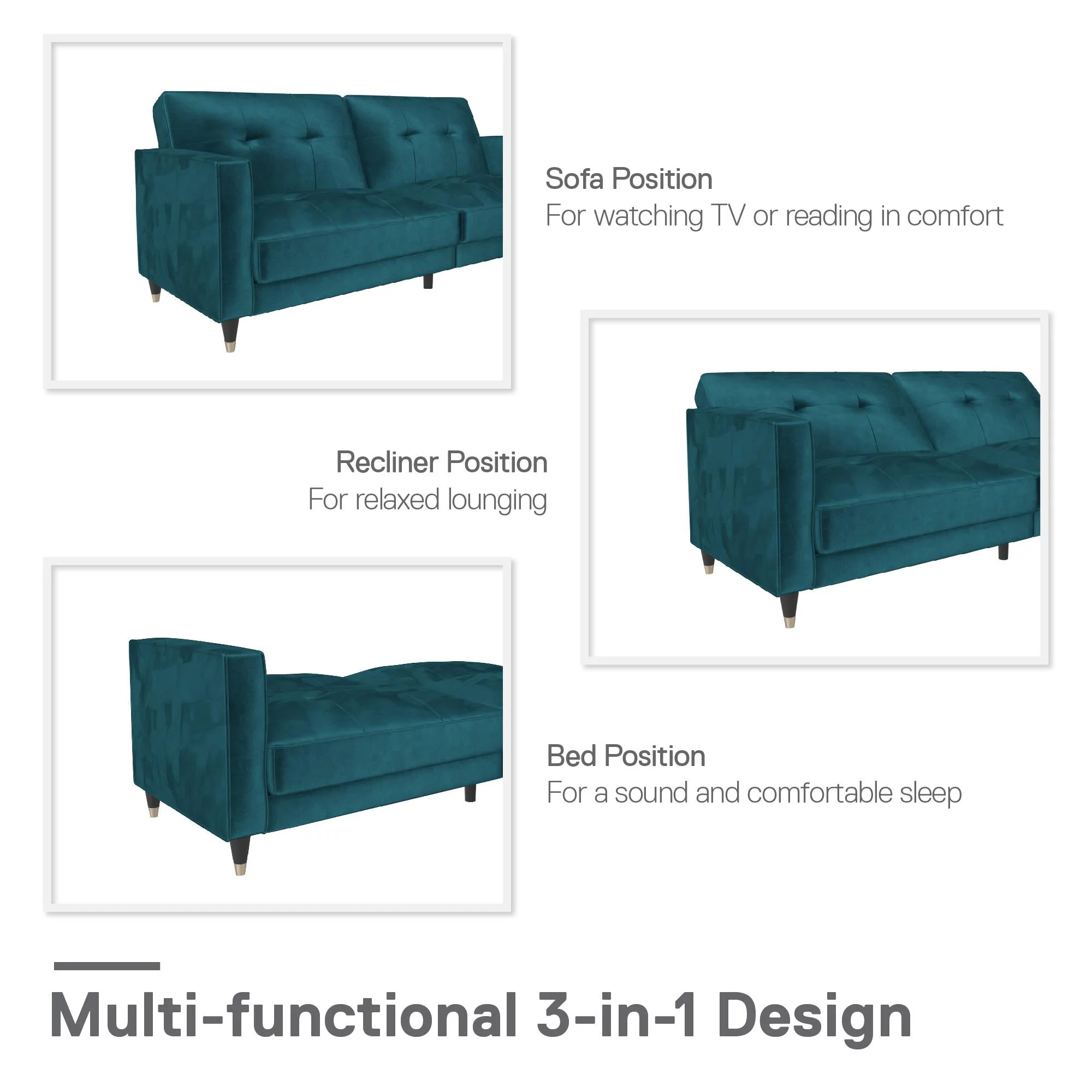 DHP Penelope Futon Sleeper Sofa with Gold Tipped Black Legs, Green Velvet