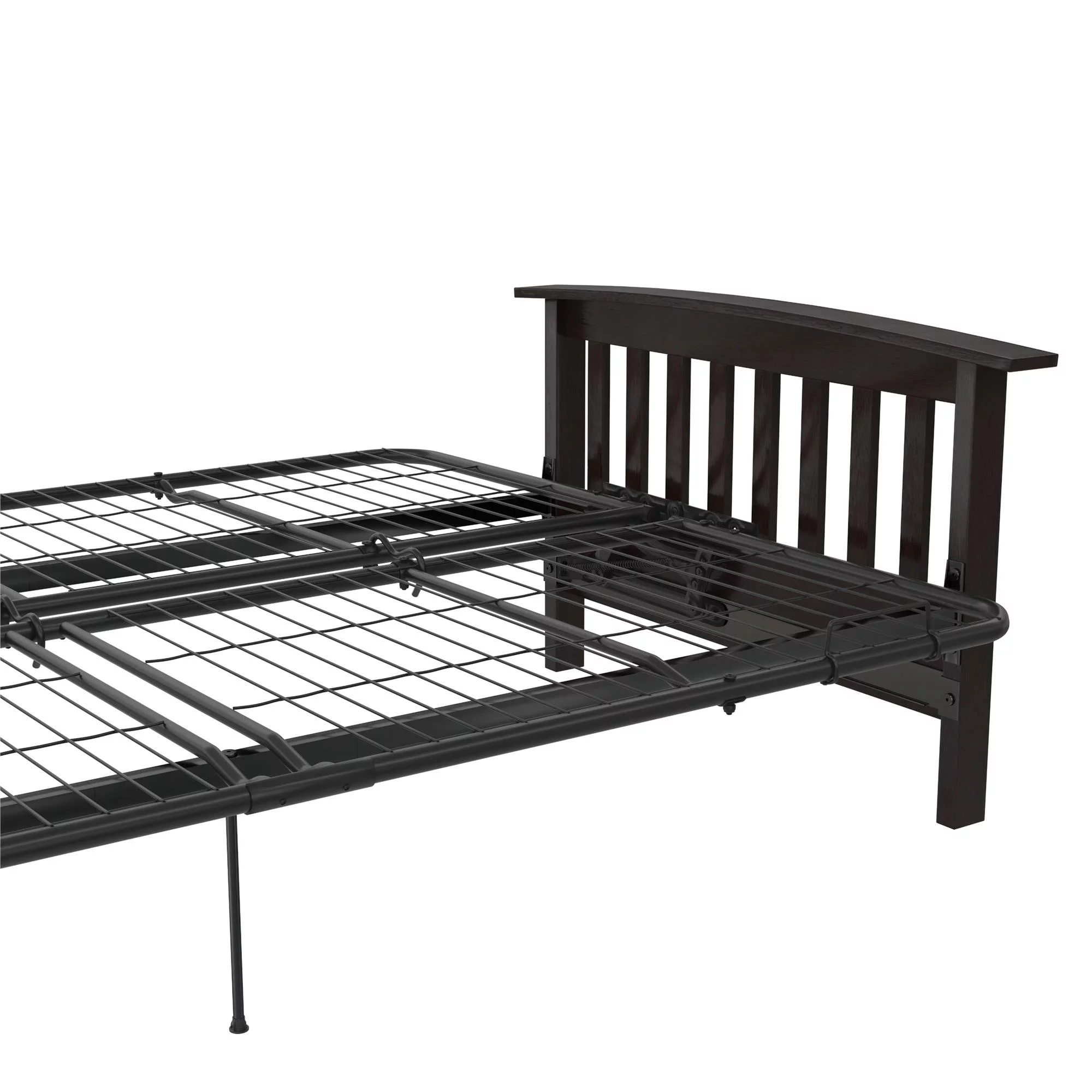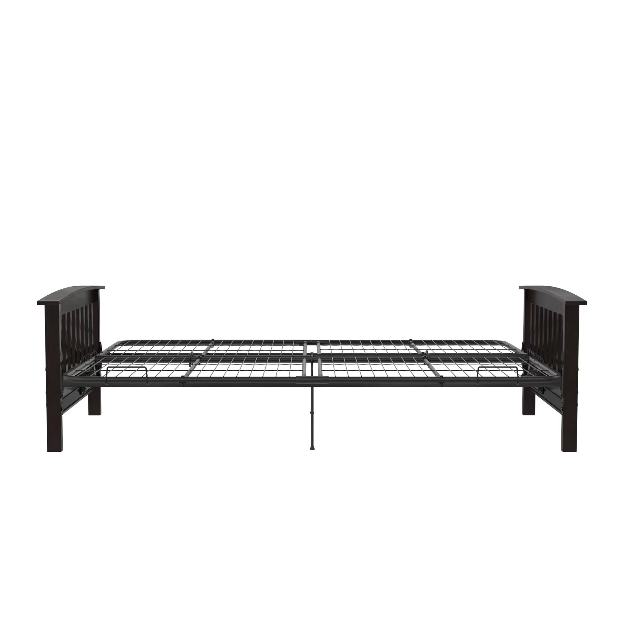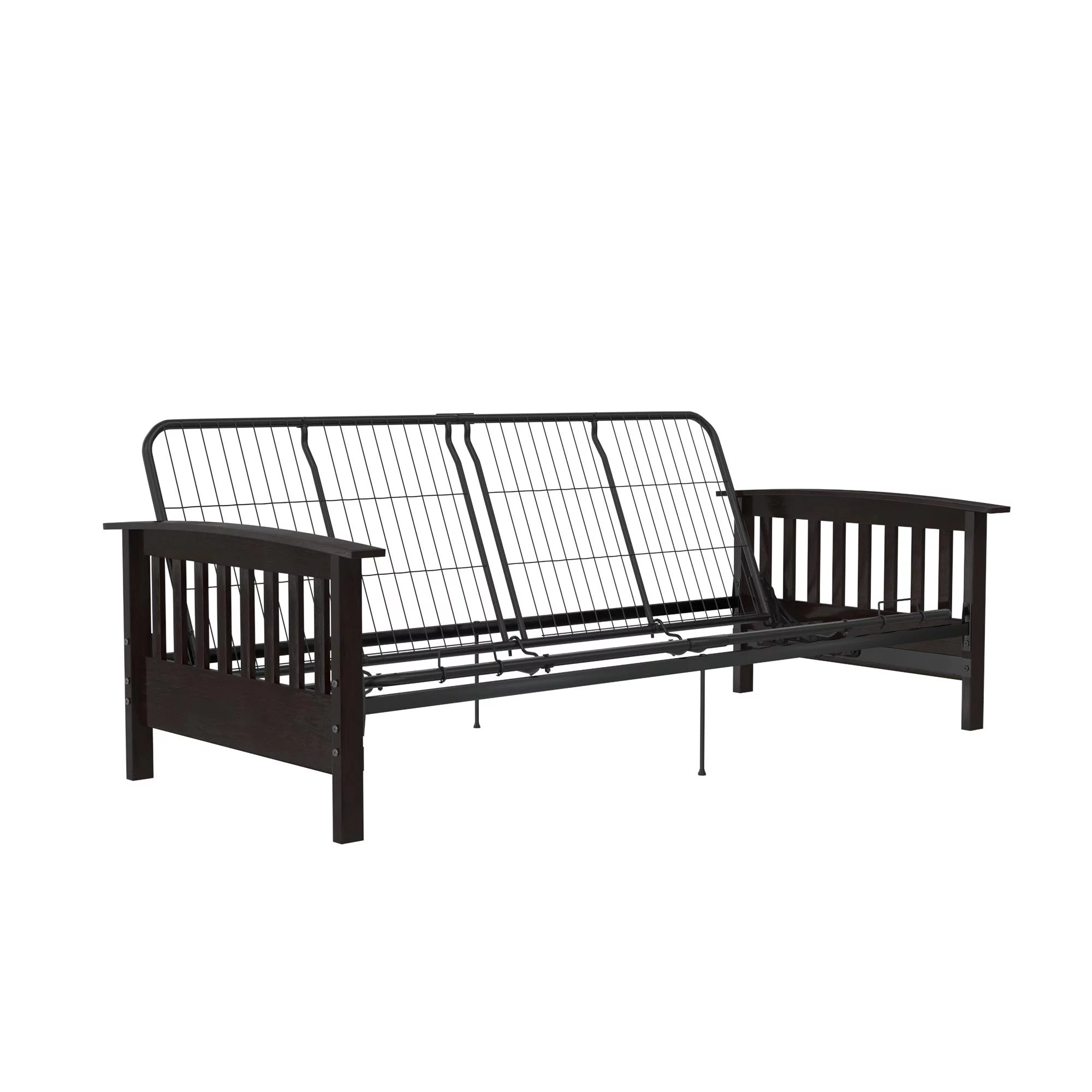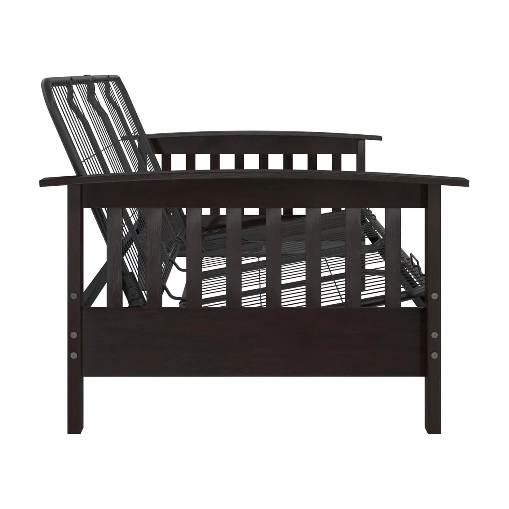 RealRooms Elbi Full Size Wood Arm and Black Metal Futon Frame, Espresso