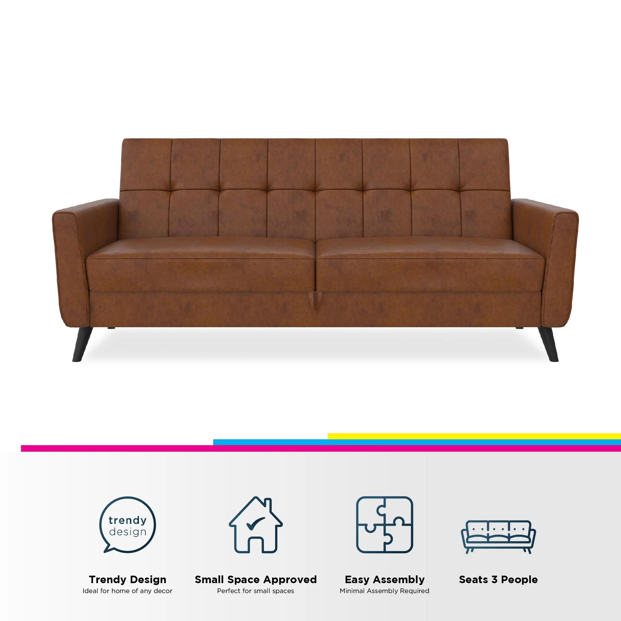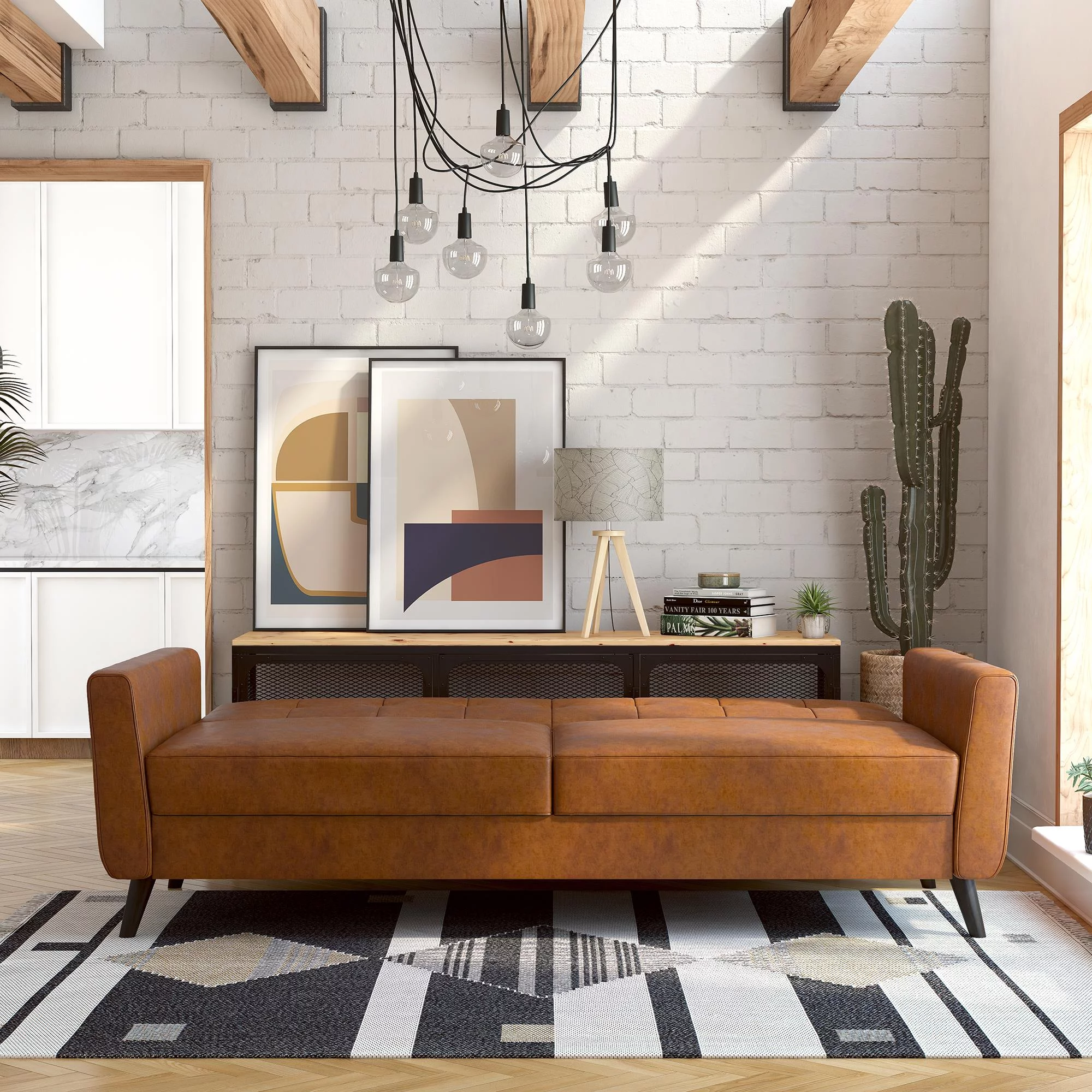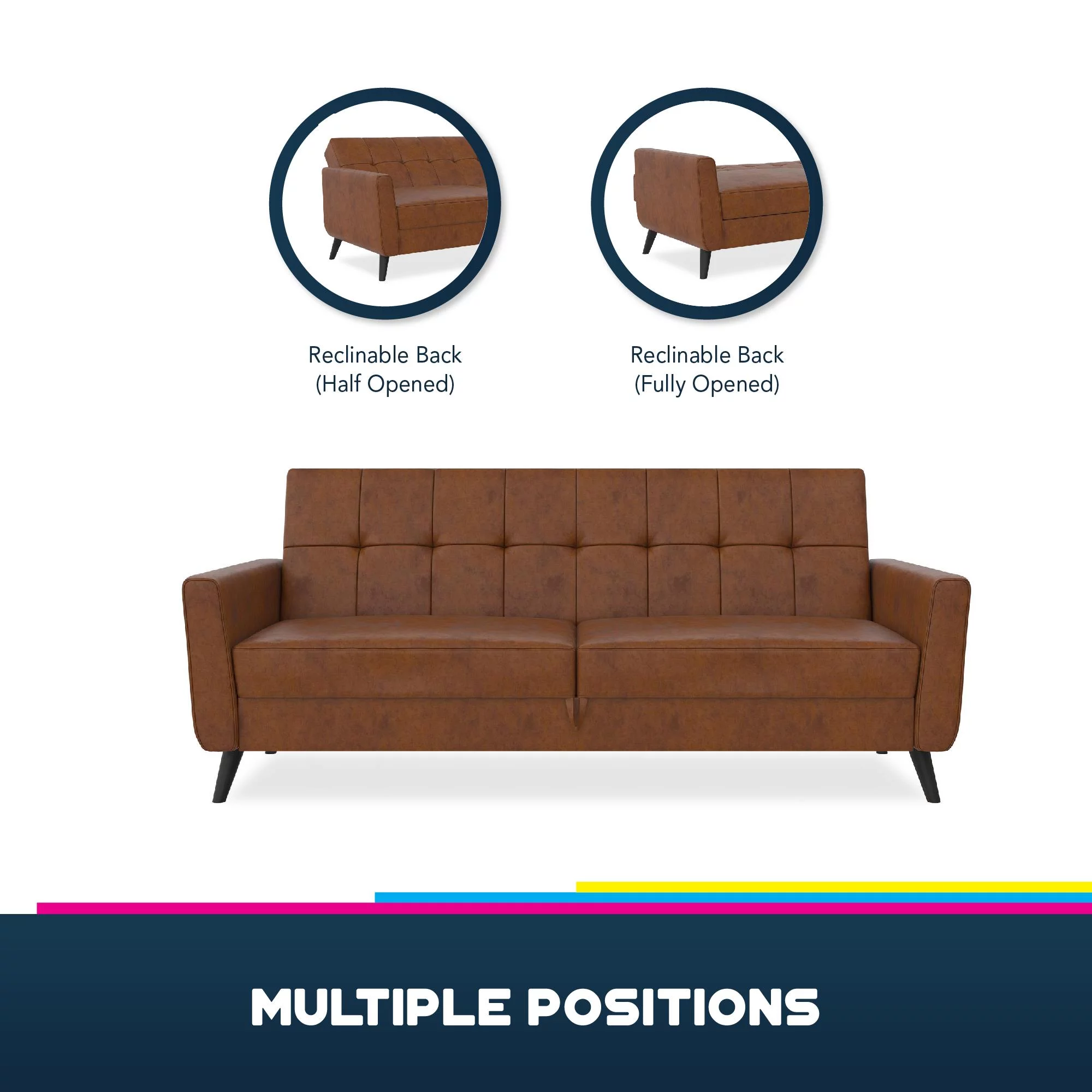 Naomi Home Convertible Tufted Split Back Futon Sofa-Color:Caramel,Fabric:Faux Leather