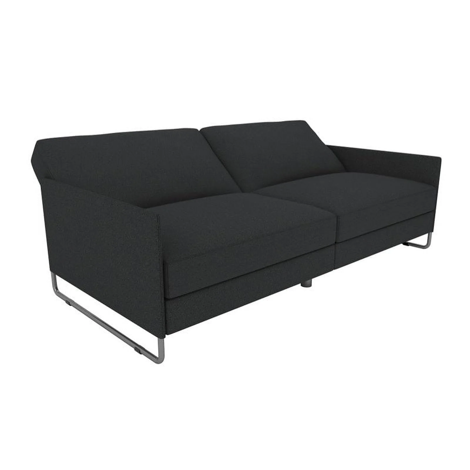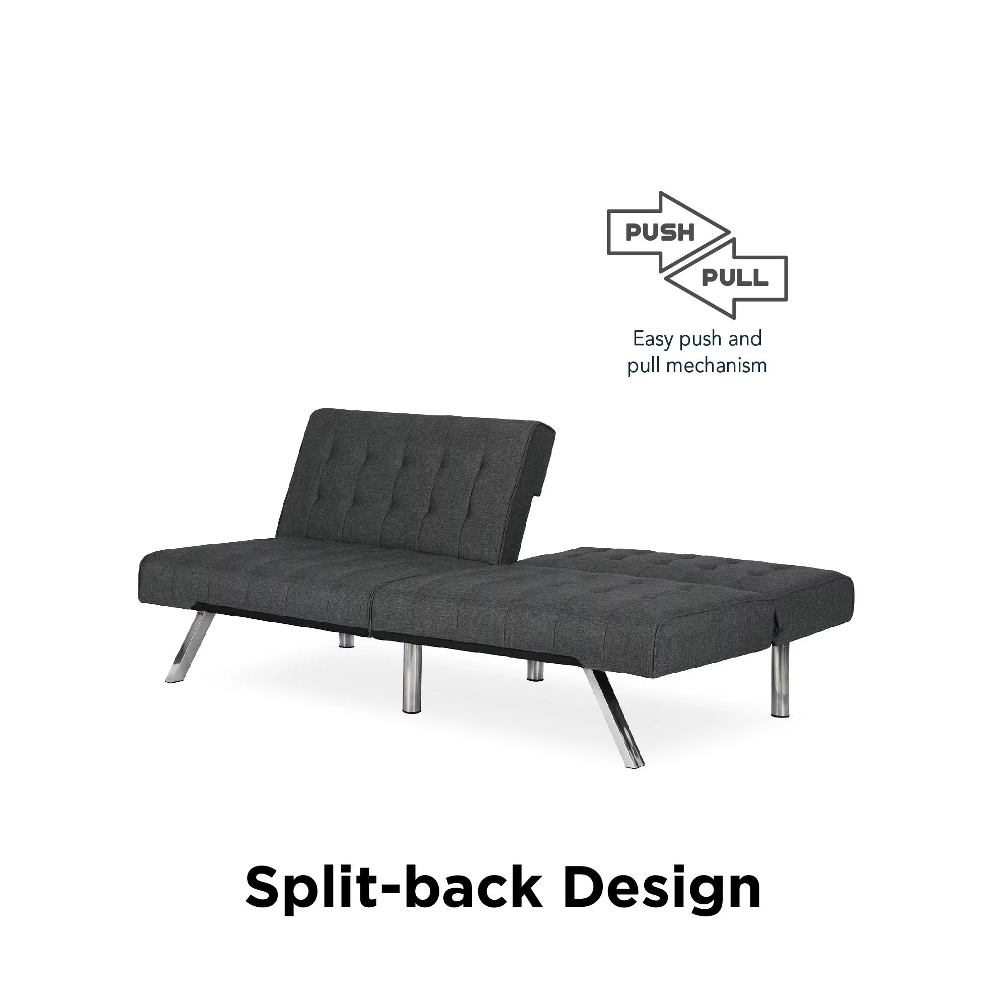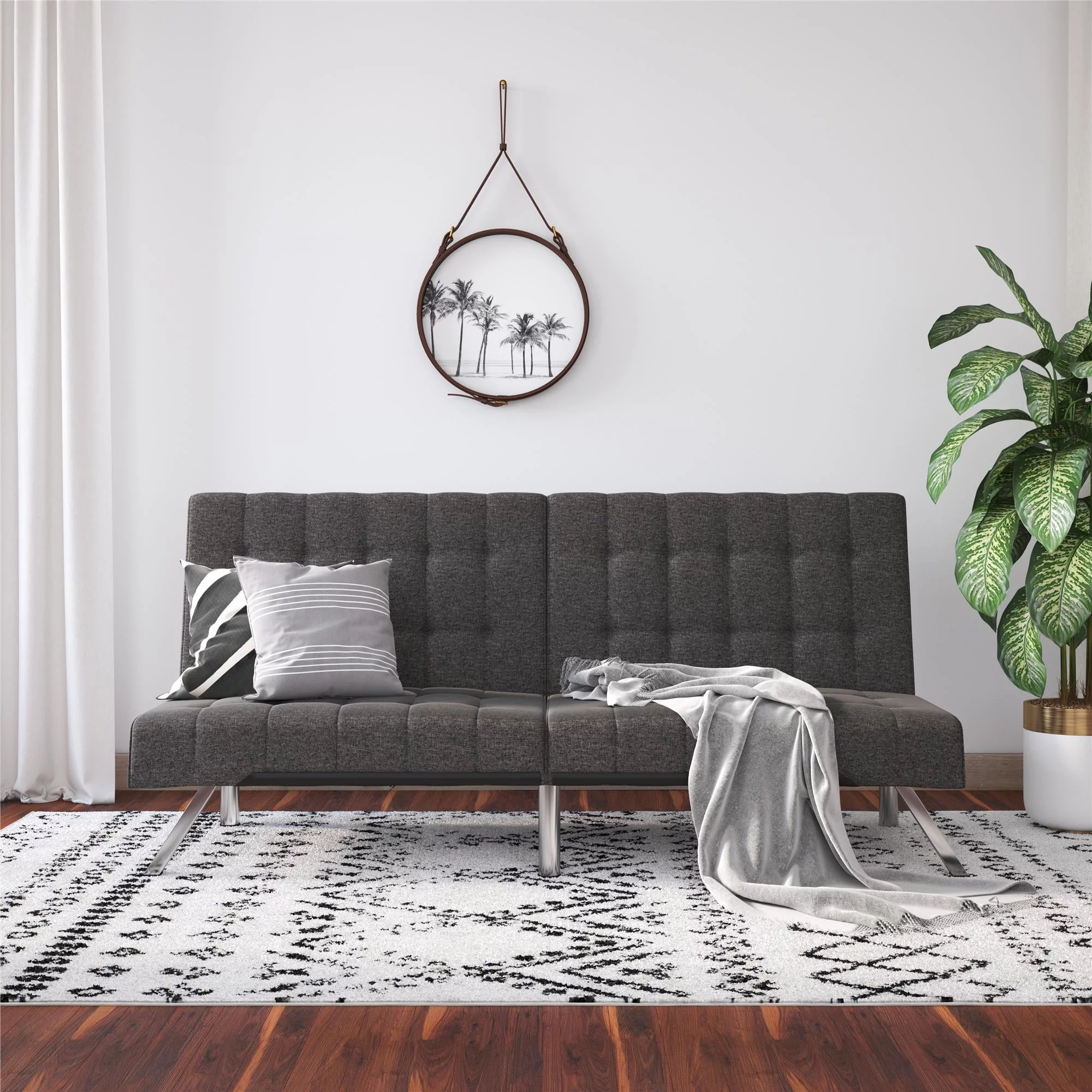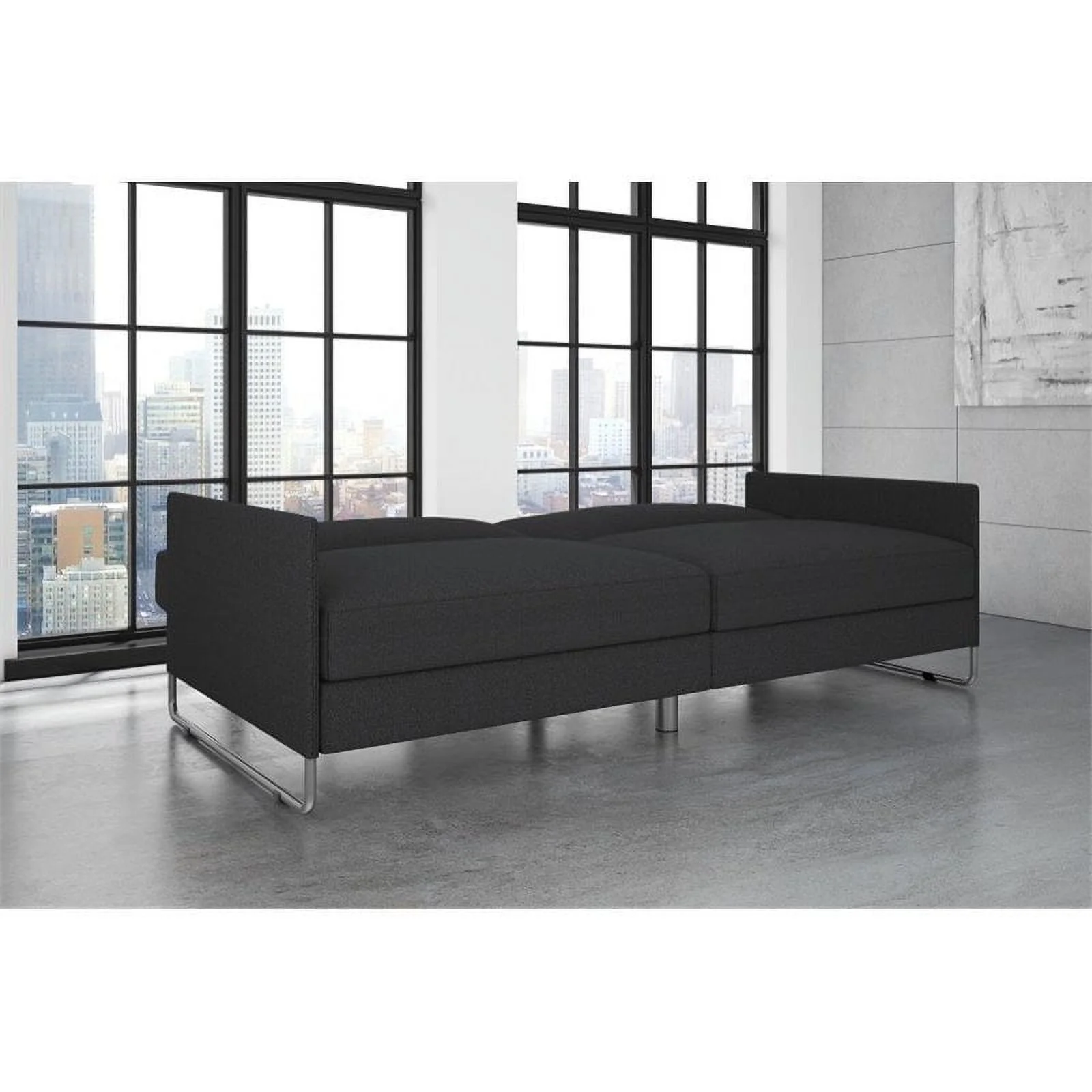 DHP Sadie Futon Sofa Bed and Couch Sleeper, Distressed Charcoal Black Faux Leather