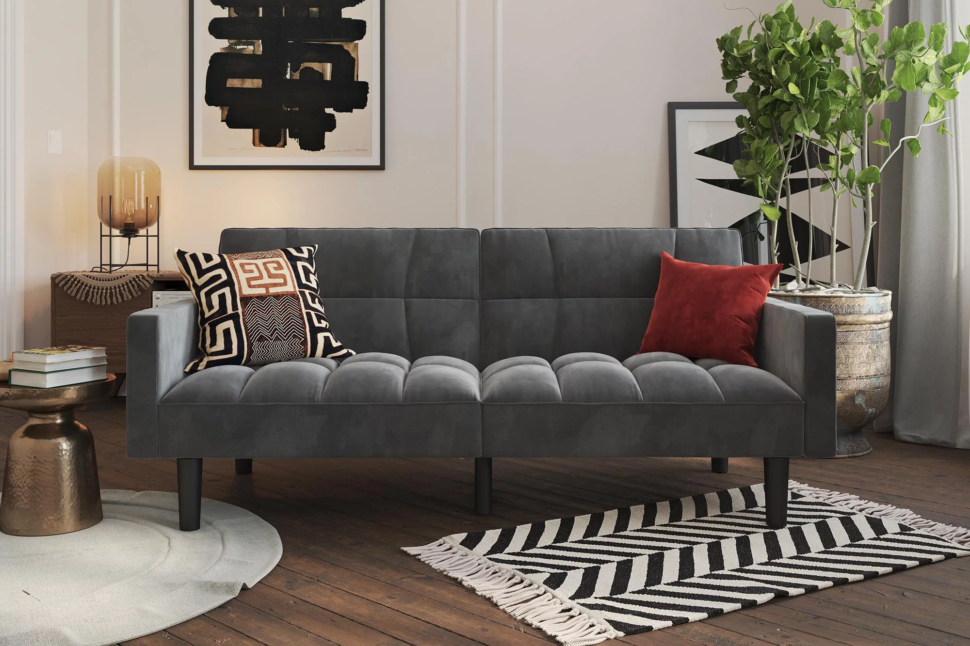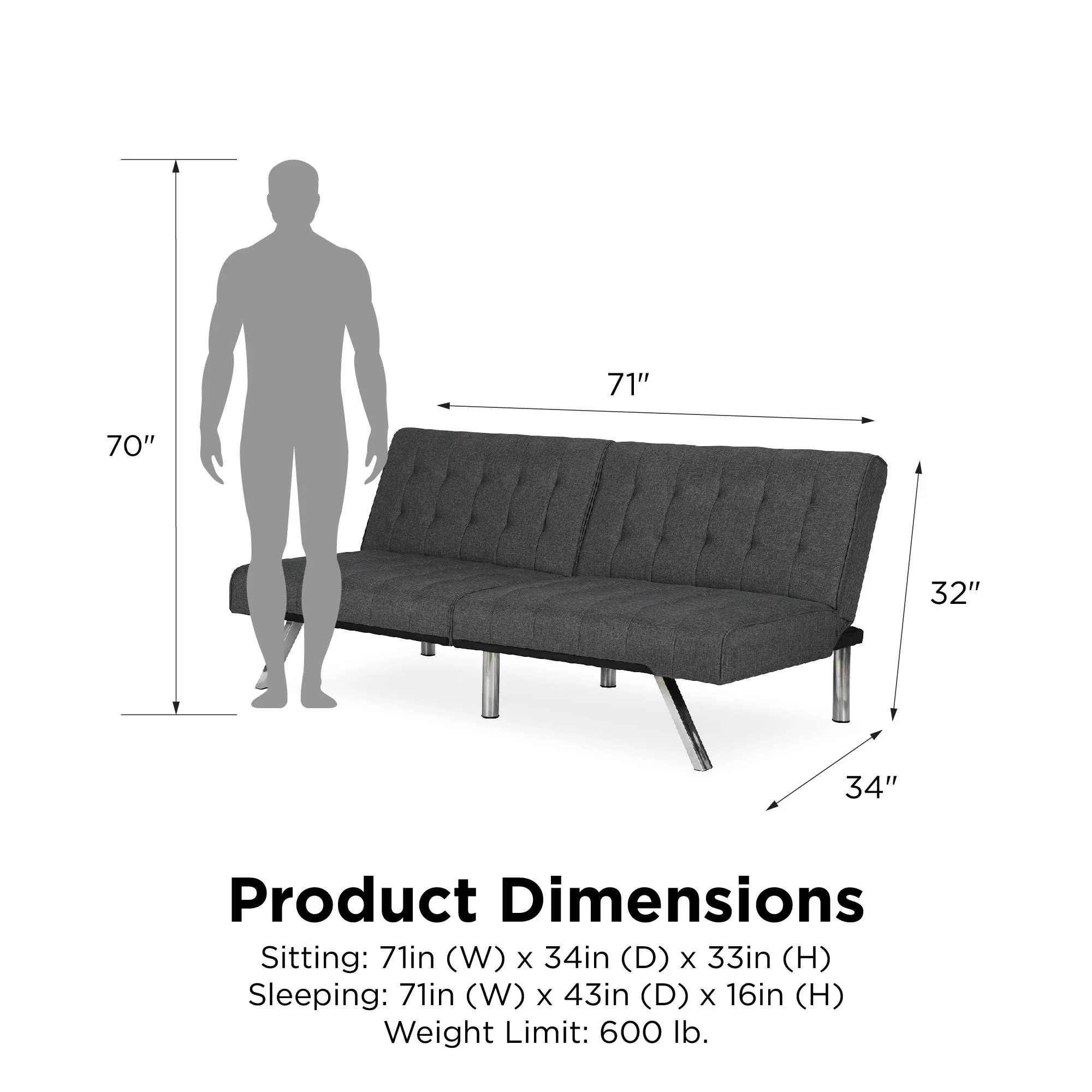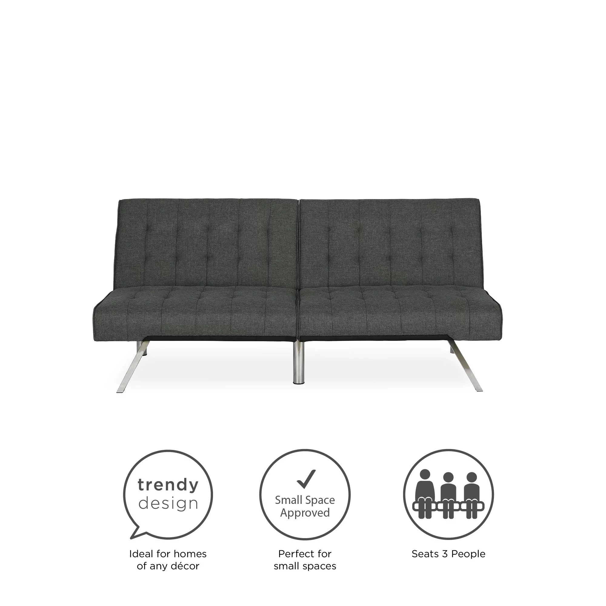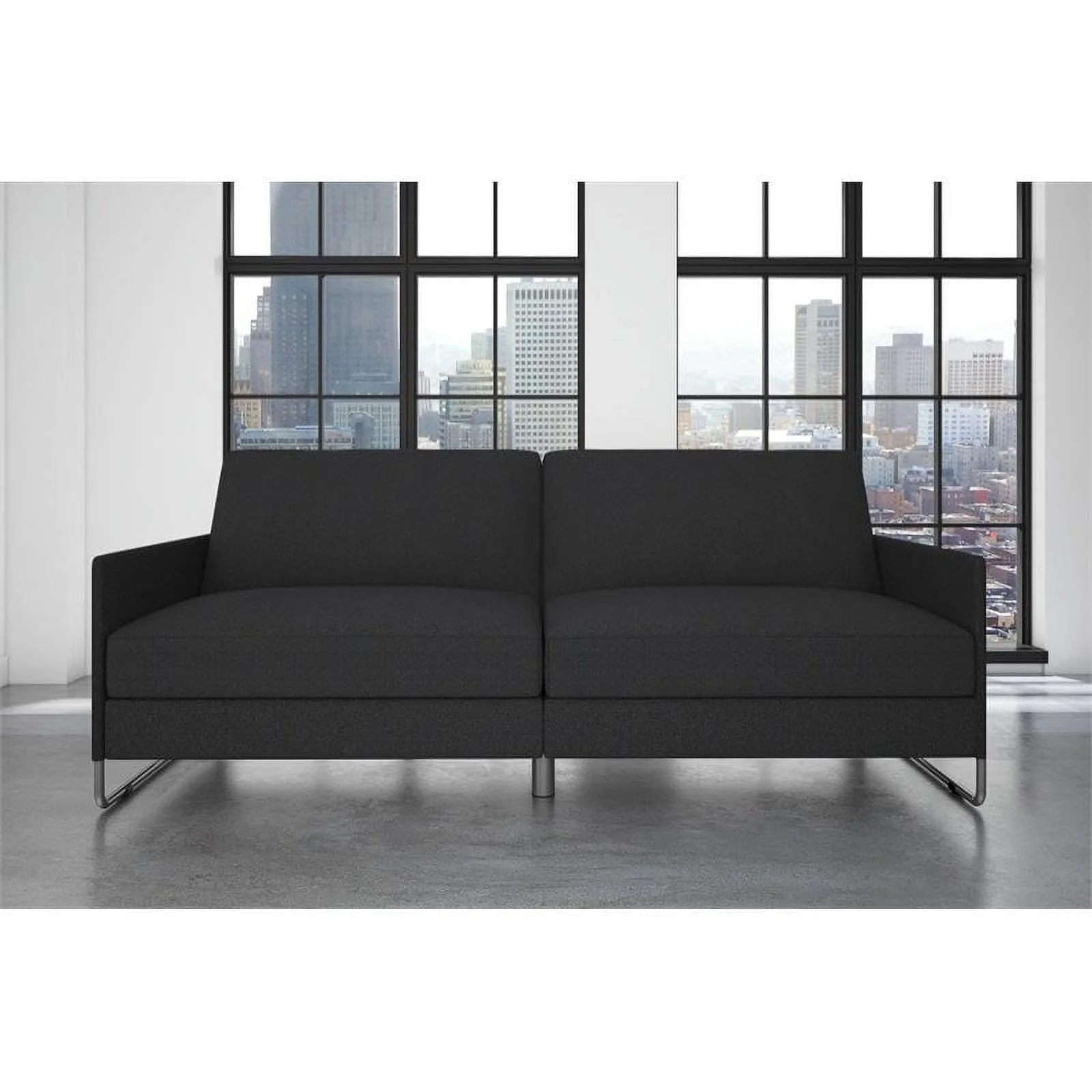 DHP Sadie Futon Sofa Bed and Couch Sleeper, Distressed Charcoal Black Faux Leather