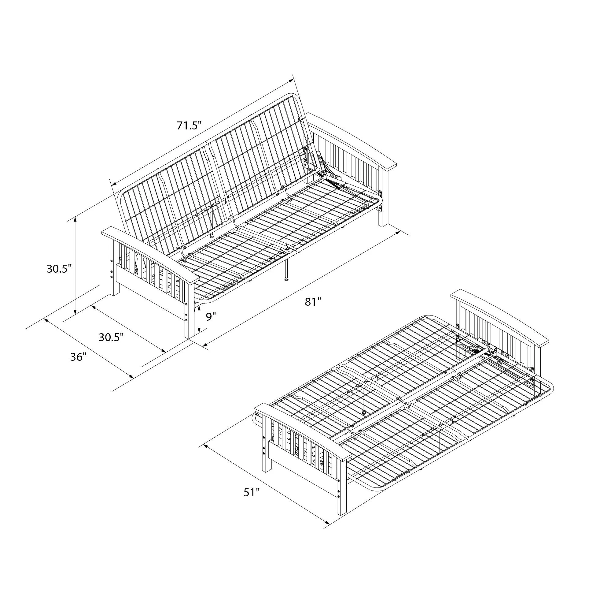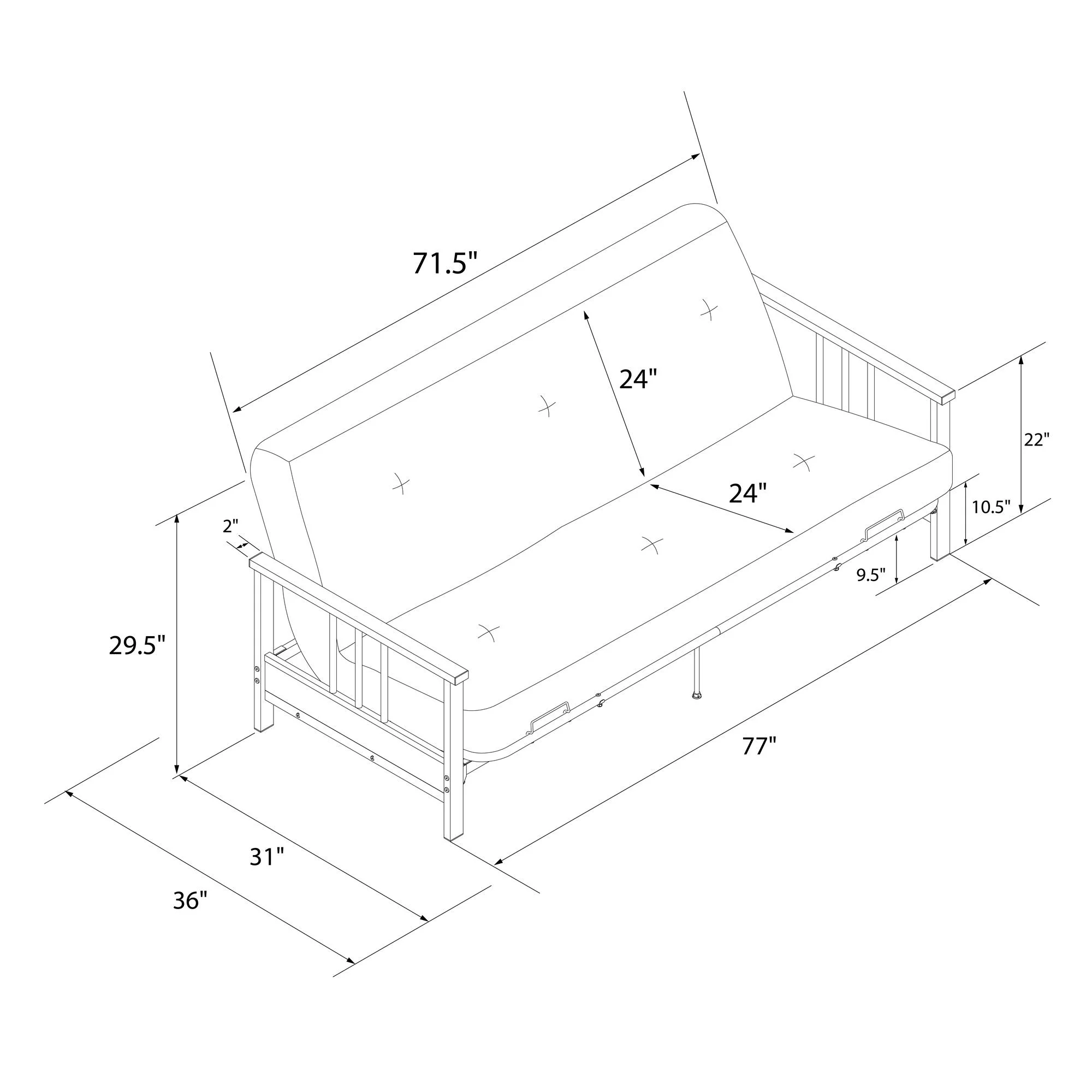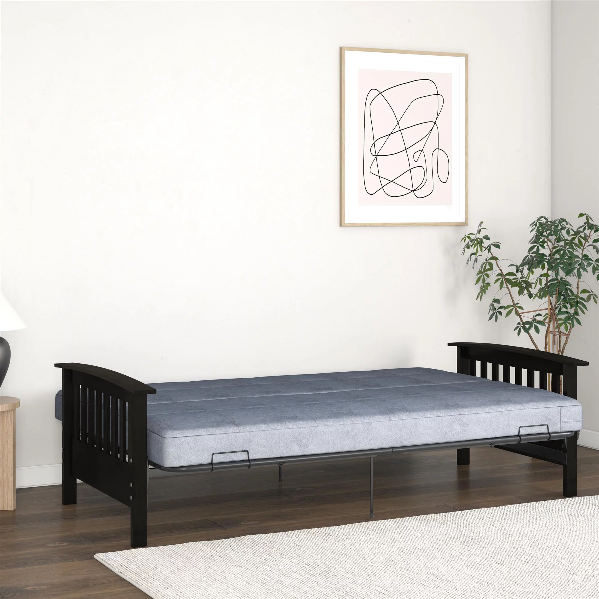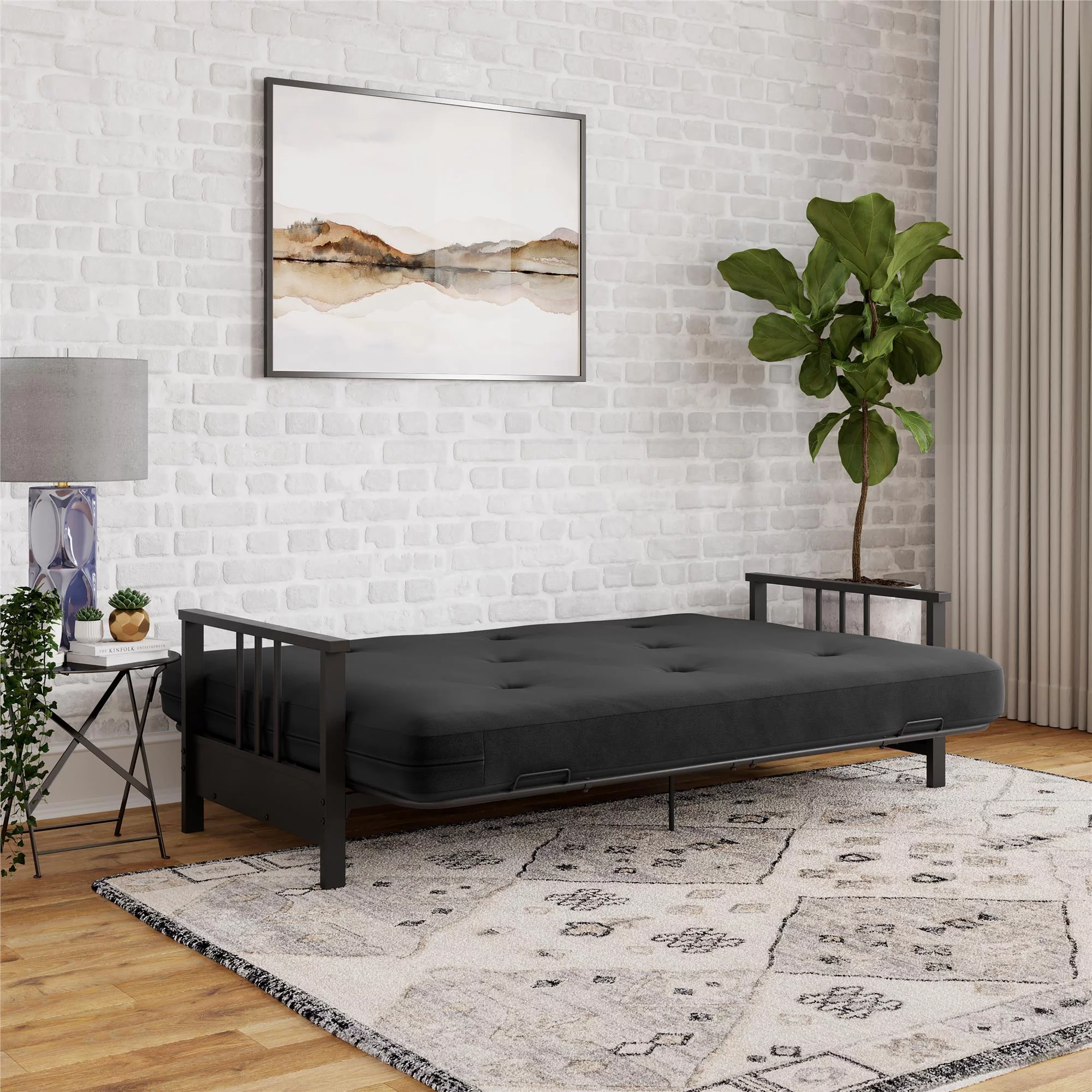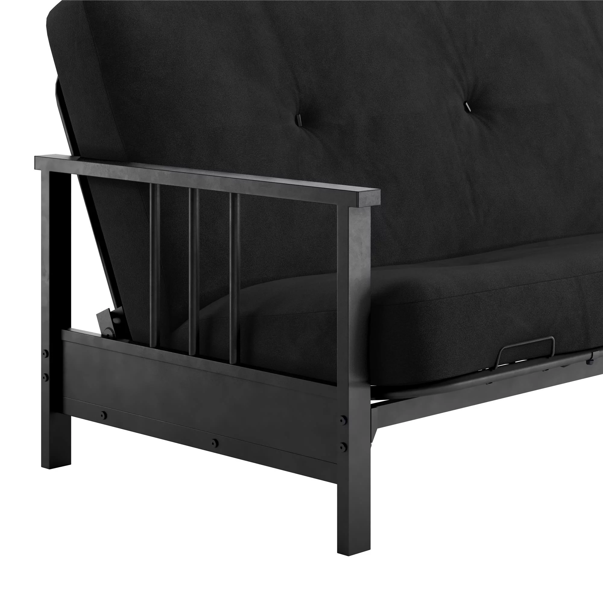 DHP Harlow Full Metal Arm Futon with 6-Inch Thermobonded High Density Polyester Fill Black Microfiber Mattress