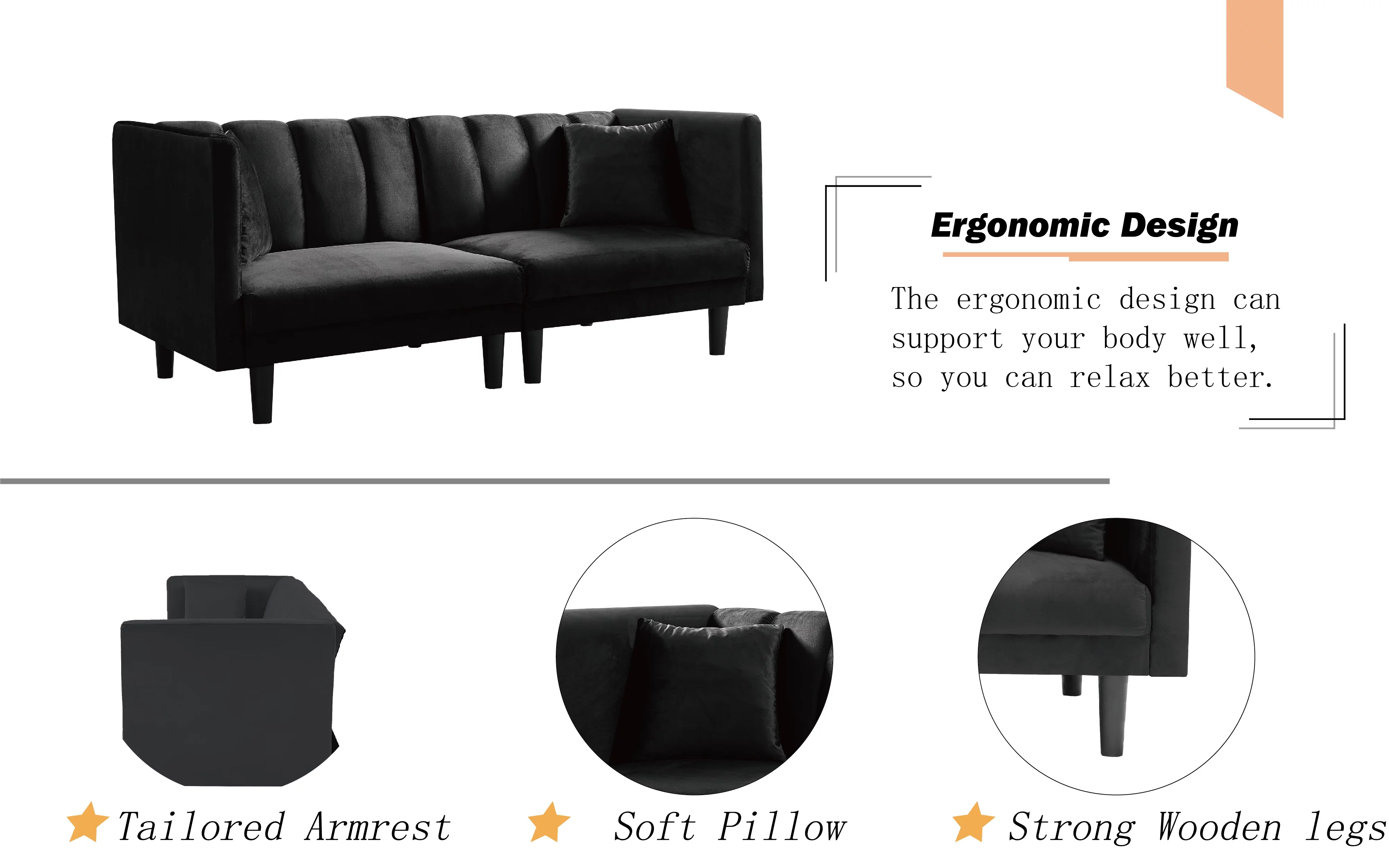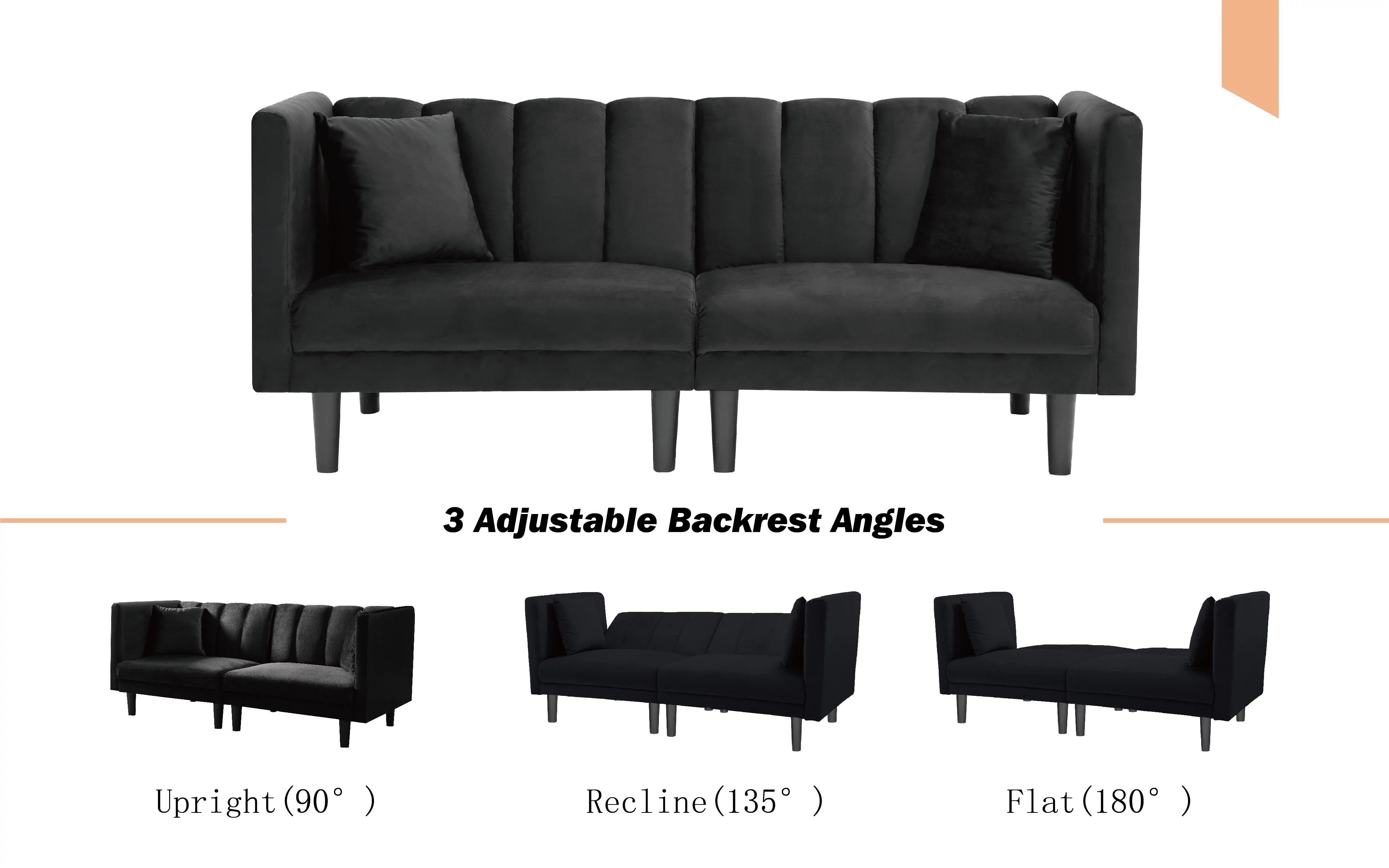 BSHTI 70 inch Futon Sofa Bed, 2 Pillows and Perfect Artificial Cushion Velvet Futon Sofa(Black)