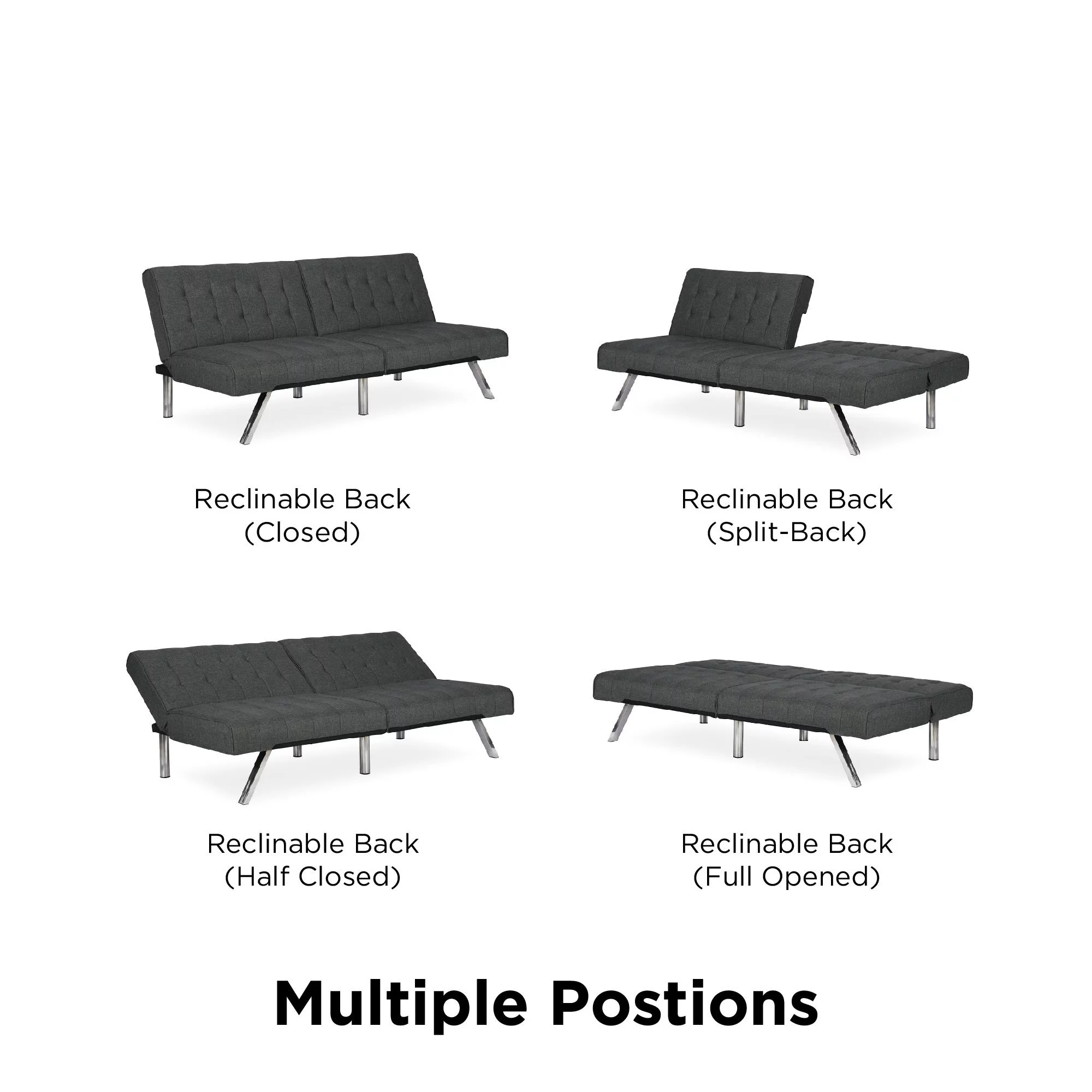 Duraspace Futon Sofa Bed Couch with Usb Side Pocket Adjustable Back for Living room, Charcoal Gray
