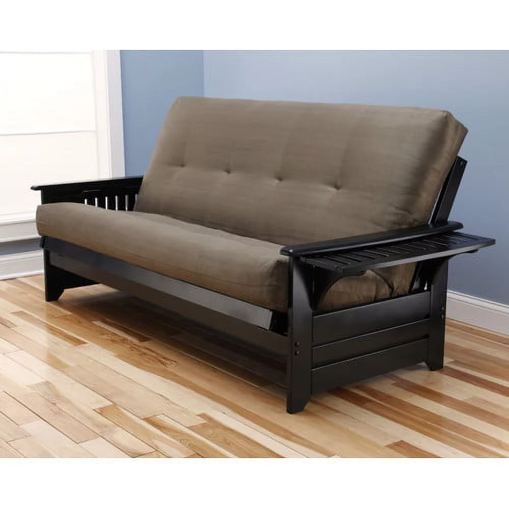 Kodiak KFAPRMSGRYLF4MD2 Aspen Reclaim Mocha Futon Frame with Suede Gray Mattress - Full Size