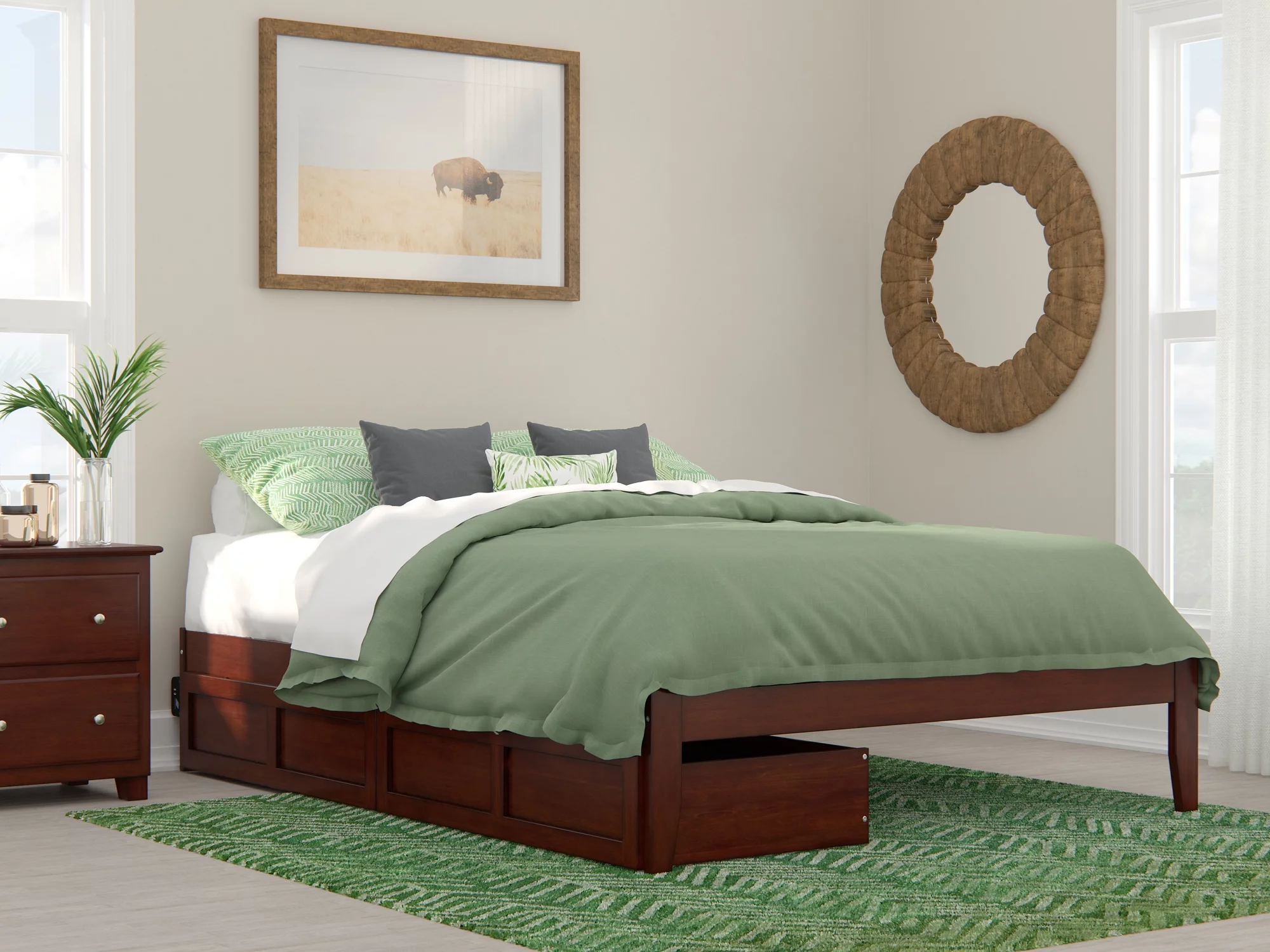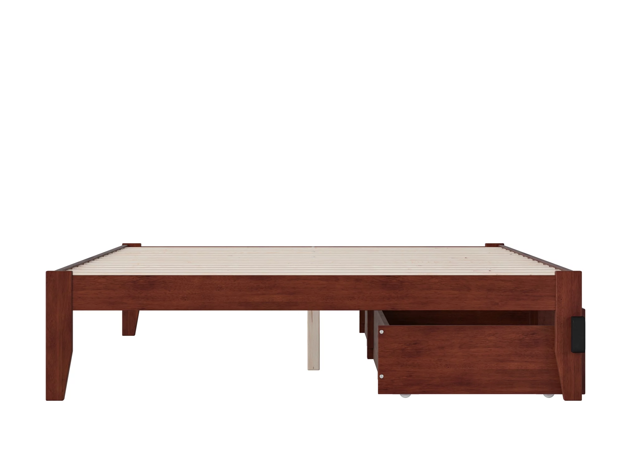 Colorado Queen Bed with USB Turbo Charger and 2 Extra Long Drawers in Walnut
