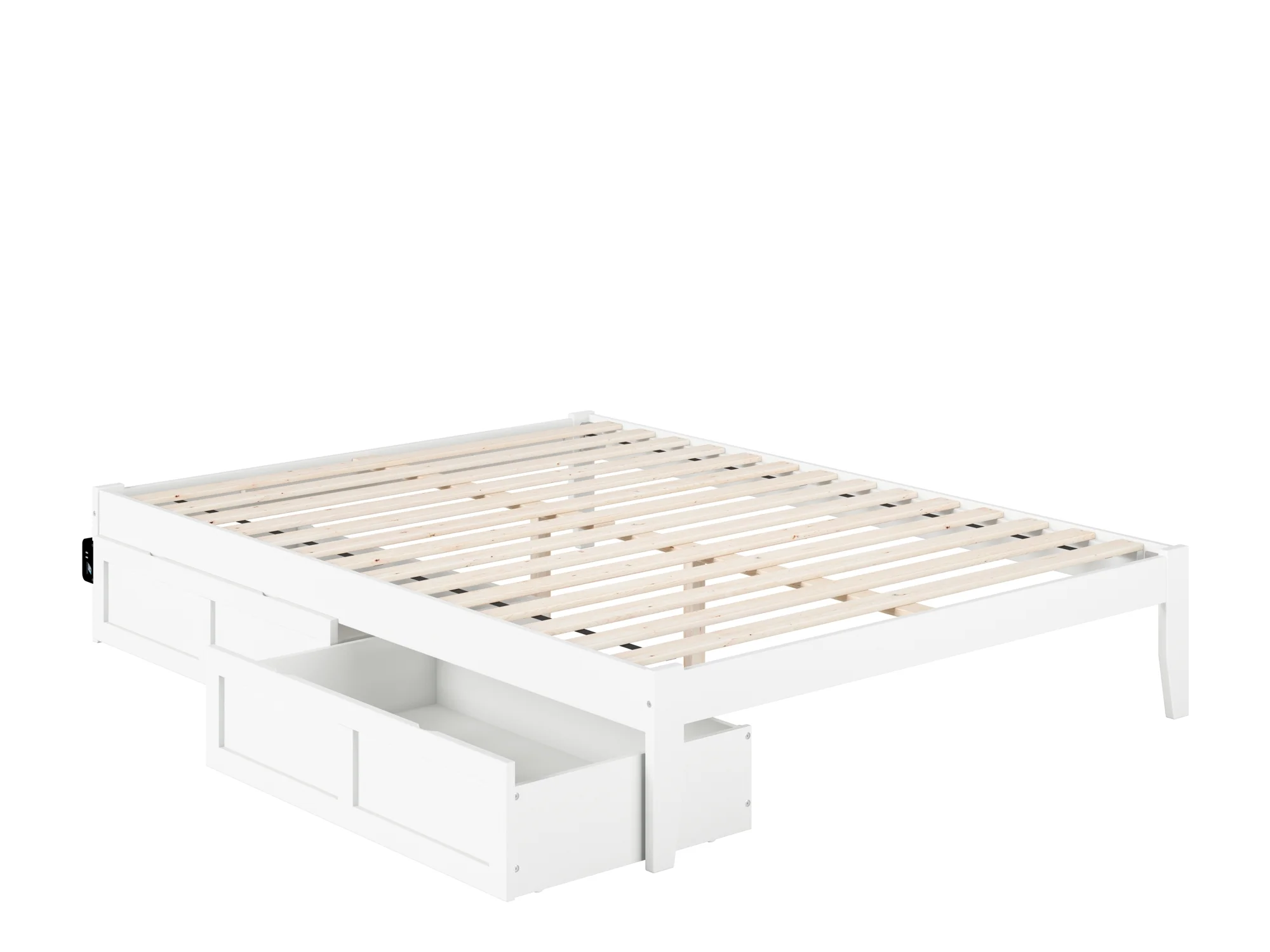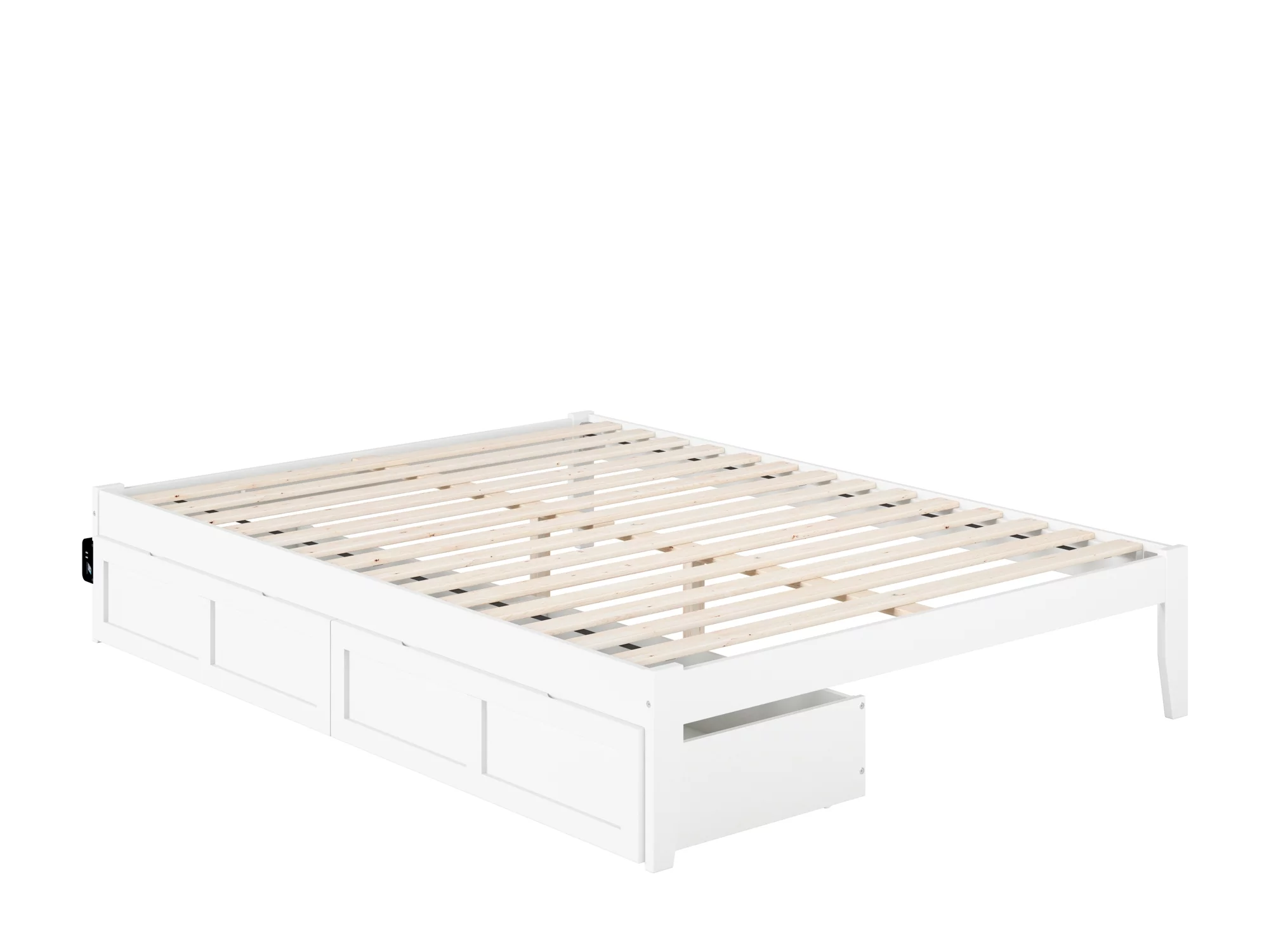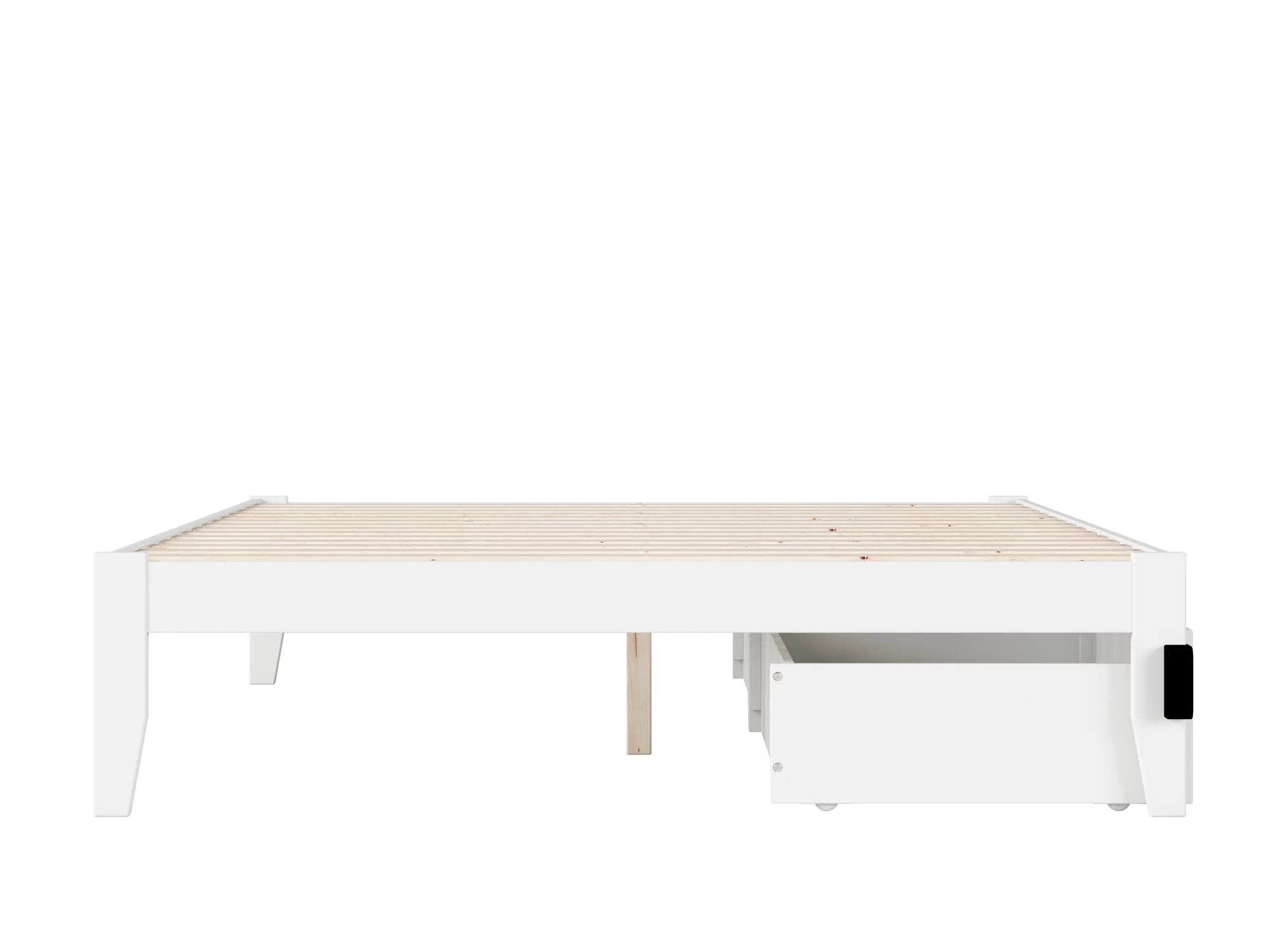 Colorado Queen Bed with USB Turbo Charger and 2 Extra Long Drawers in White