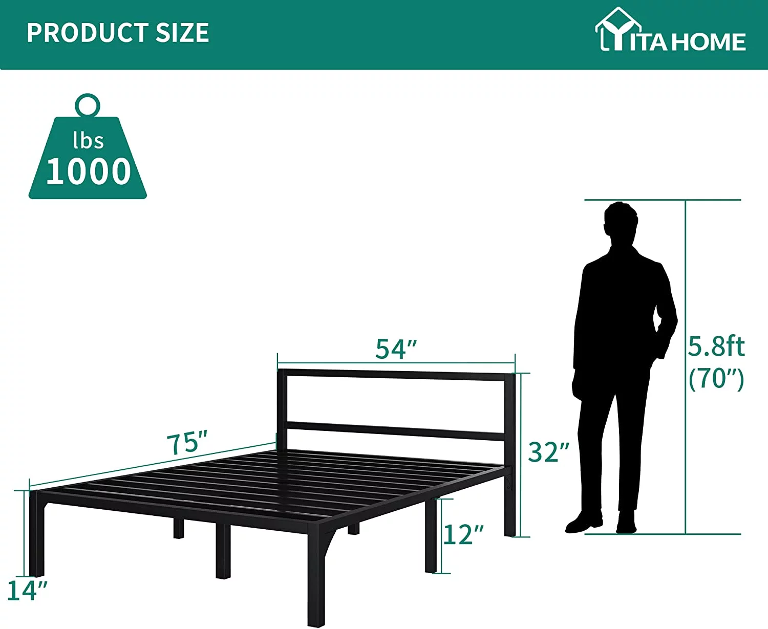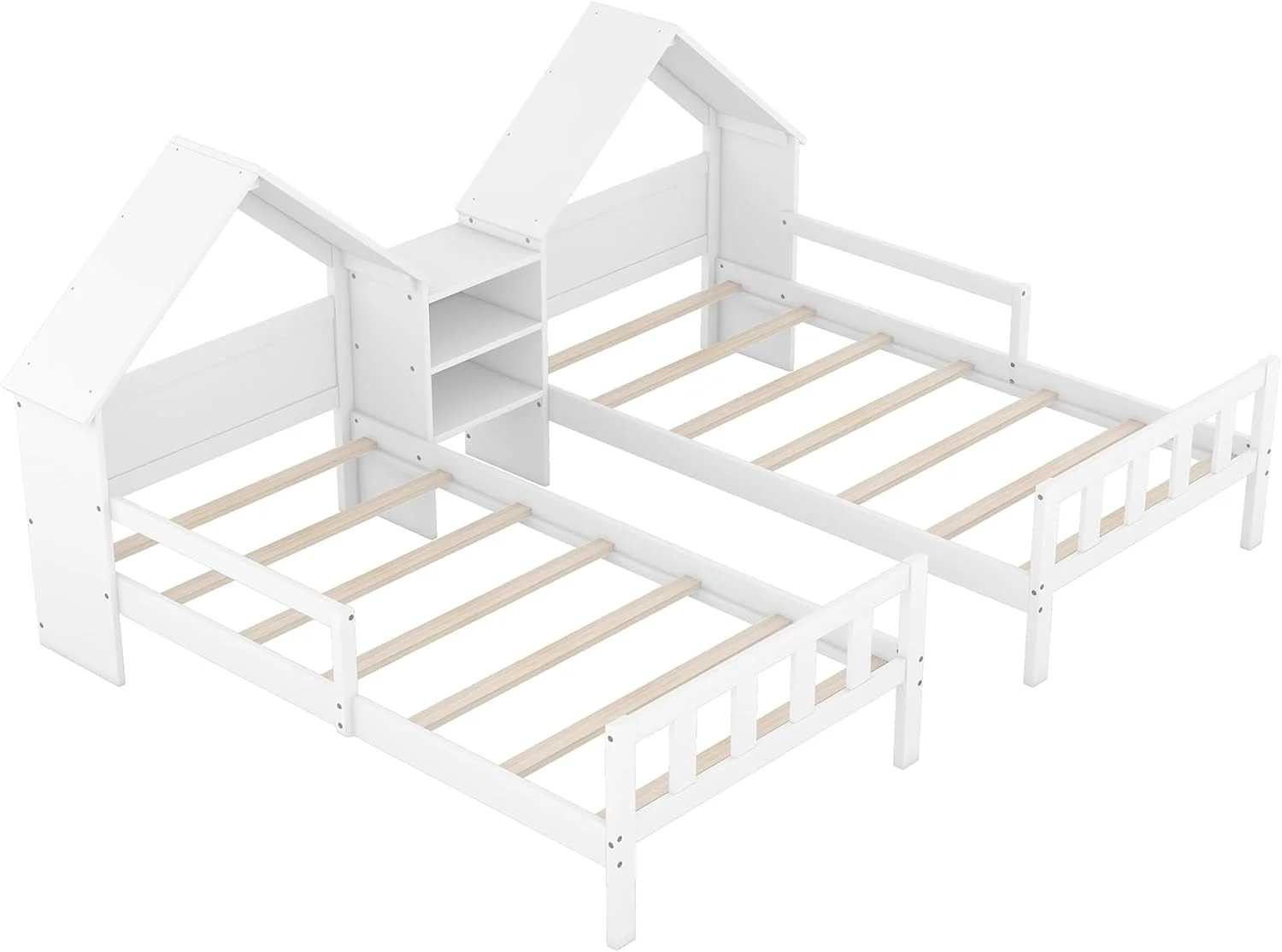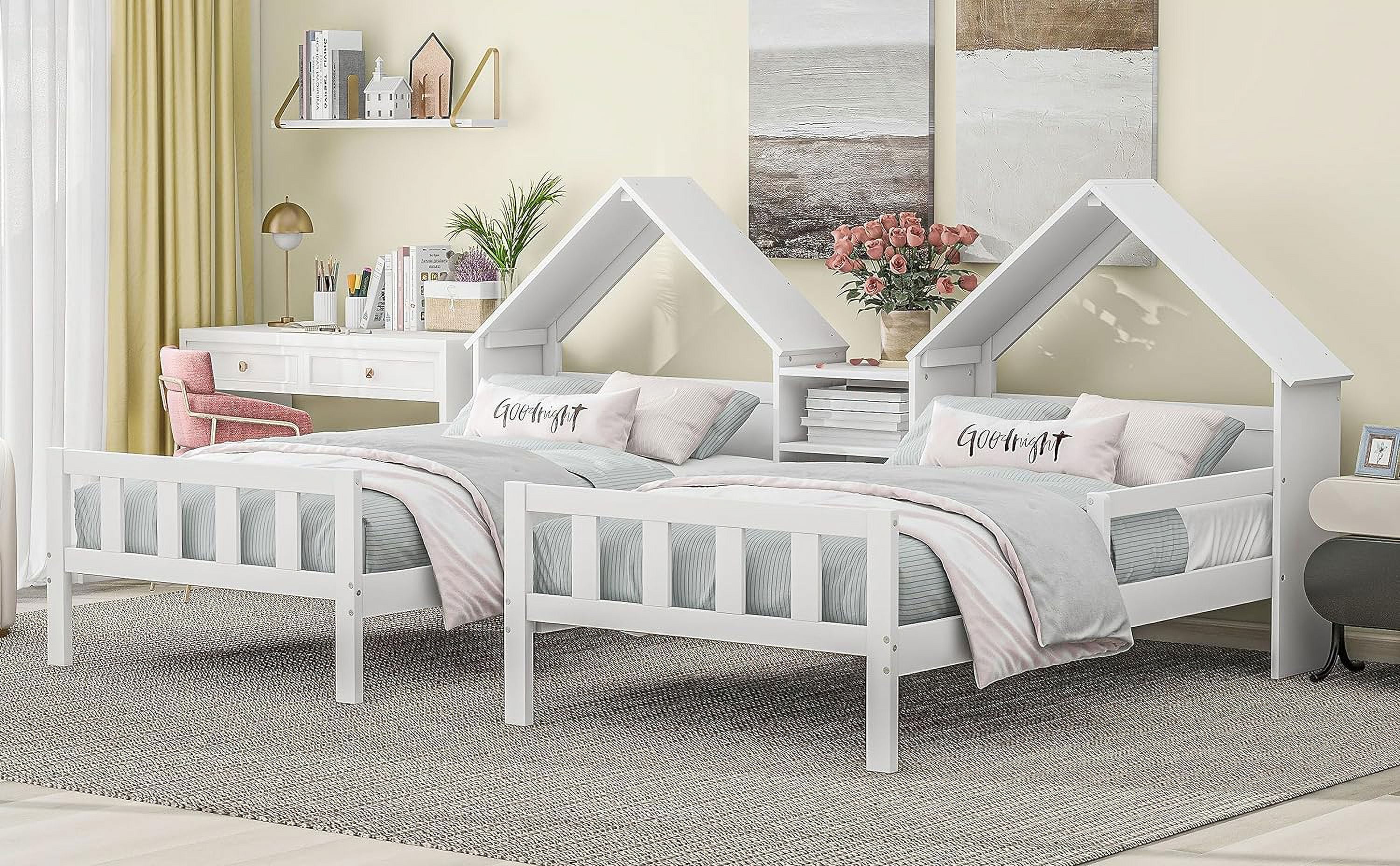 MERAX Double Twin Size Platform Bed with Headboard and Nightstand White