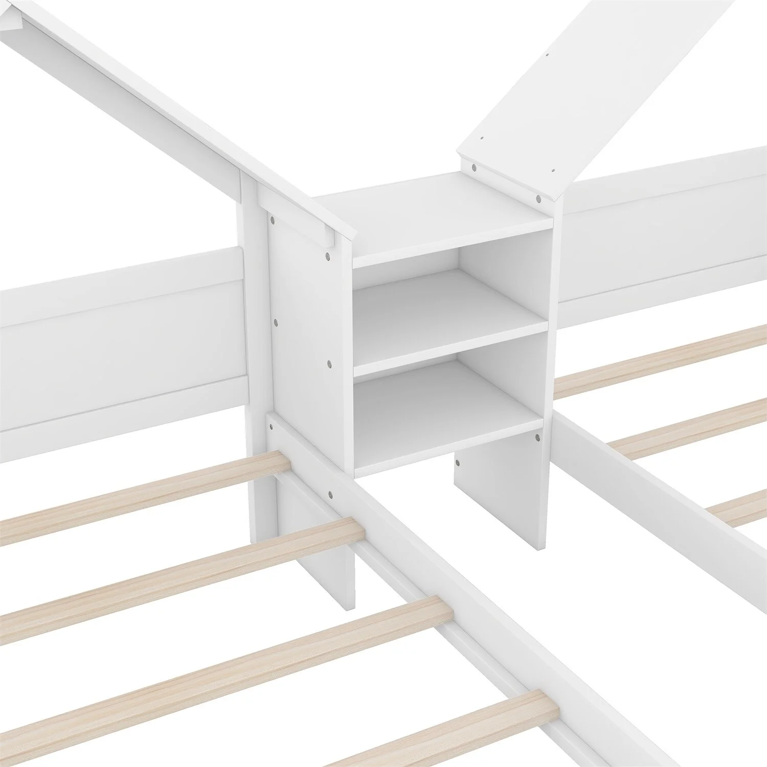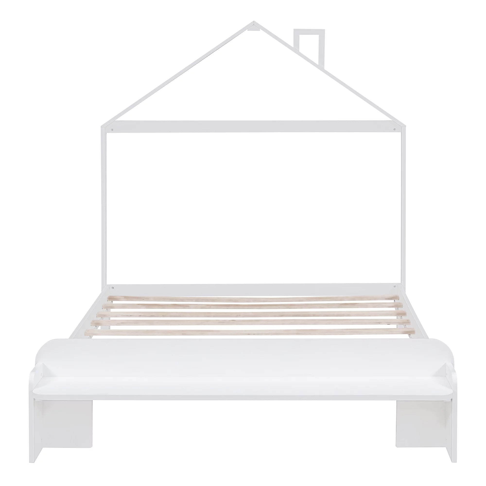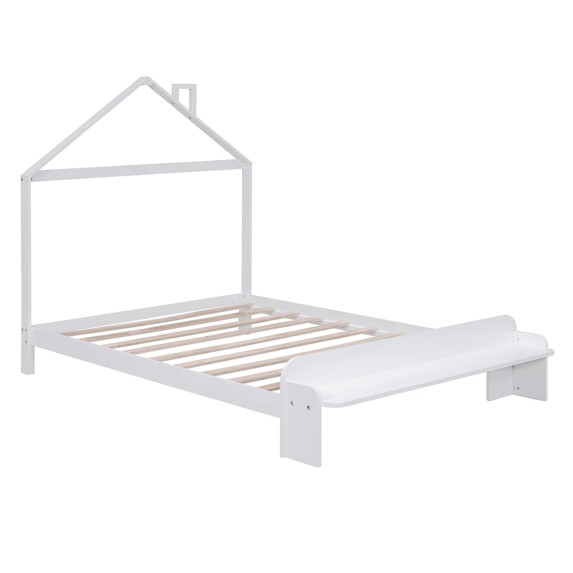 Double Size Platform Bed With House-Shaped Headboard Ad A Built-I ightstad, White
