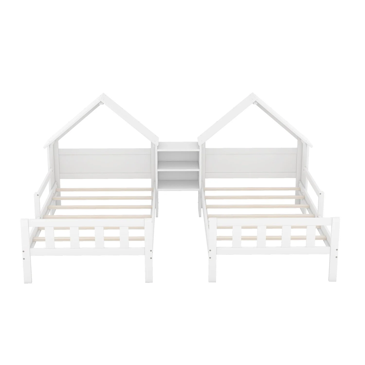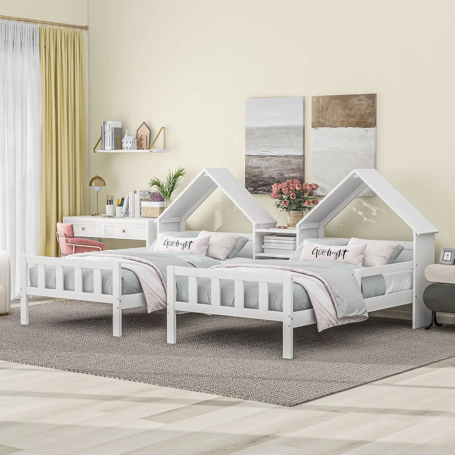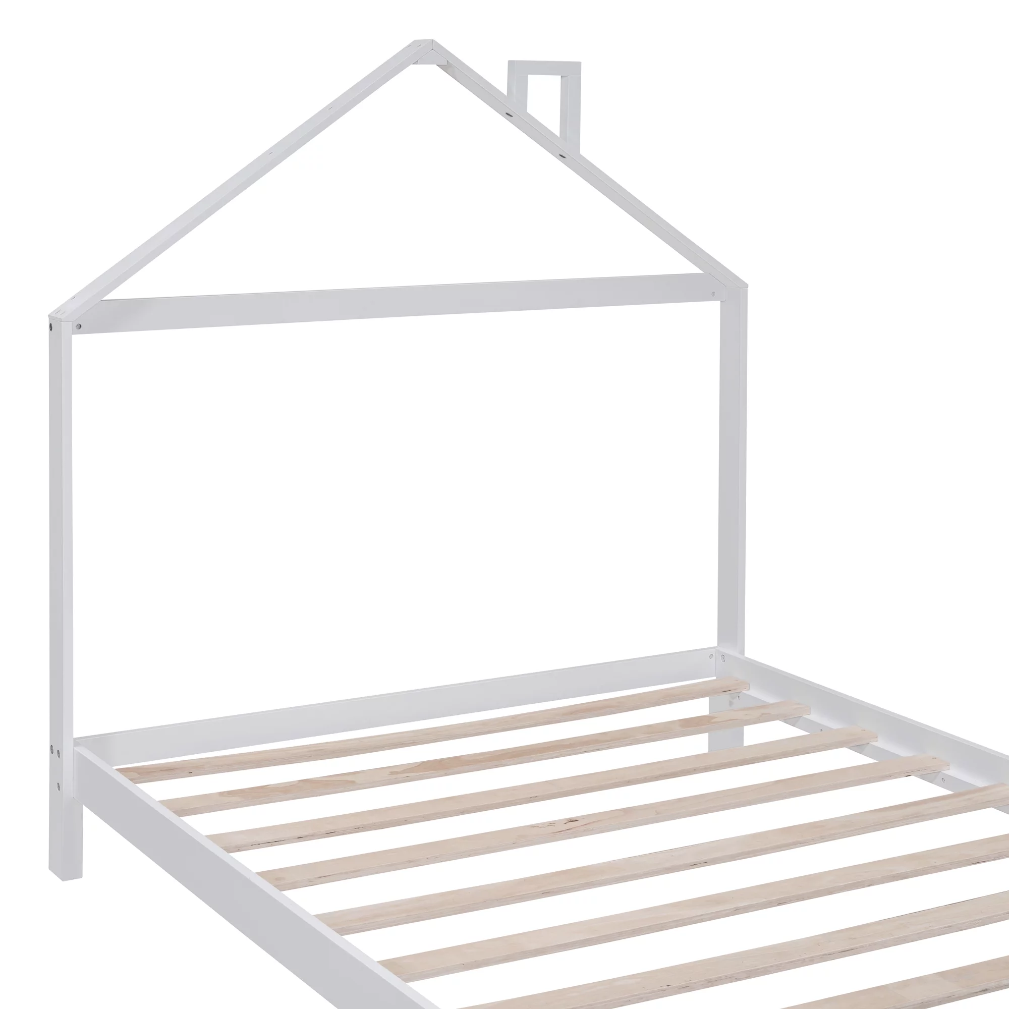 Double Size Platform Bed With House-Shaped Headboard Ad A Built-I ightstad, White