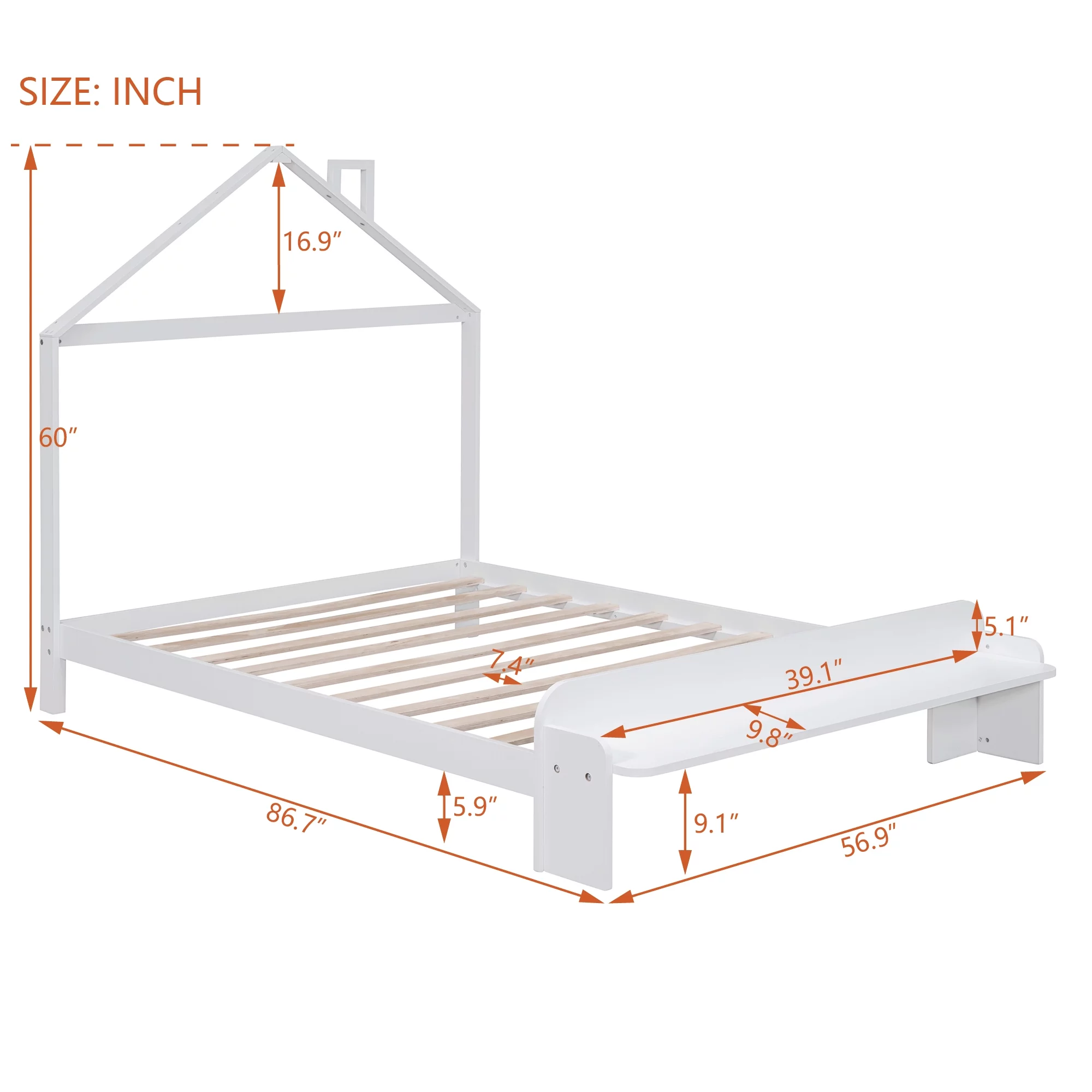 CoSoTower Full Size Wood Platform Bed with House-shaped Headboard and Footboard Bench,White