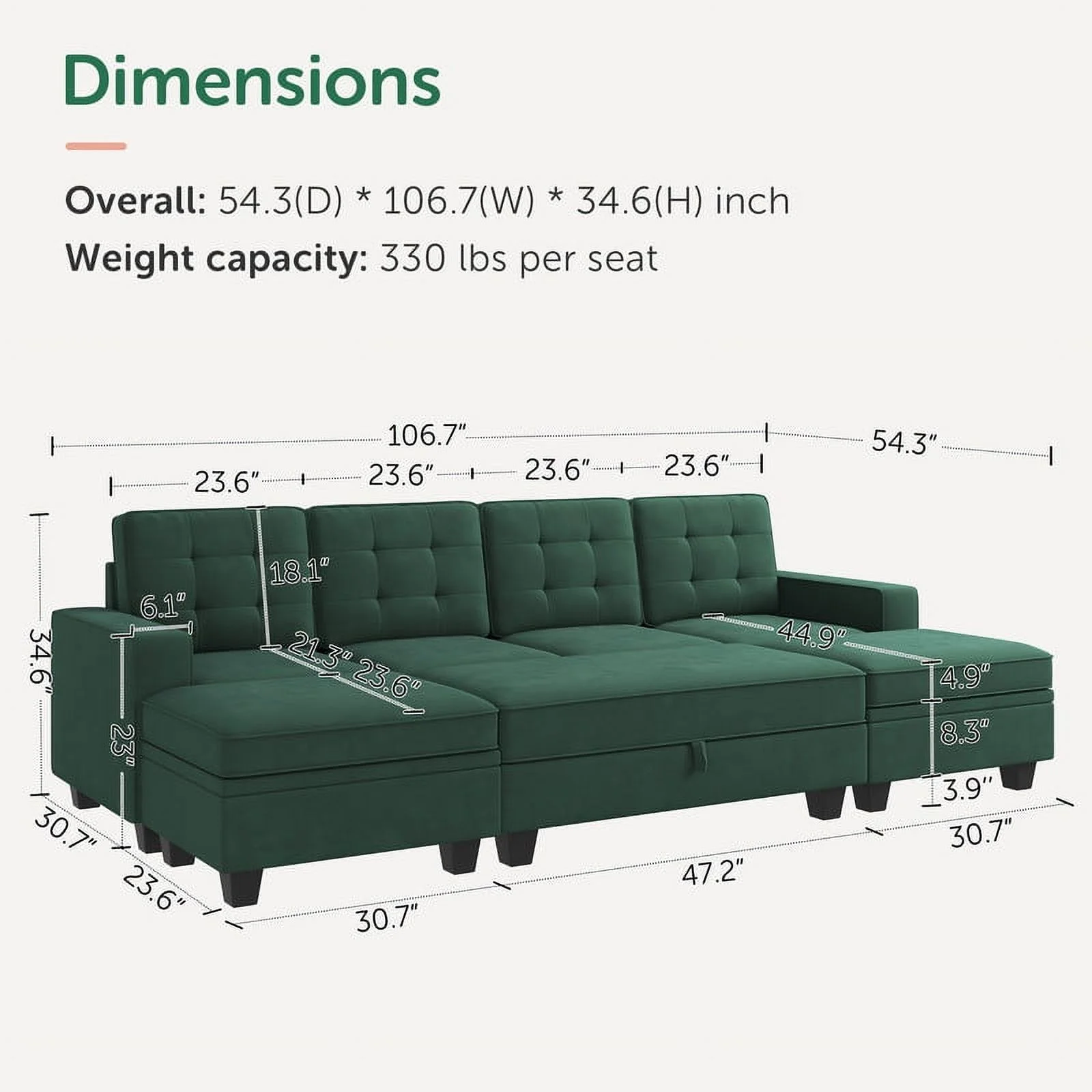 HONBAY Contemporary Plush Sectional Sleeper Sofa Couch with Storage Ottoman, Dark Green