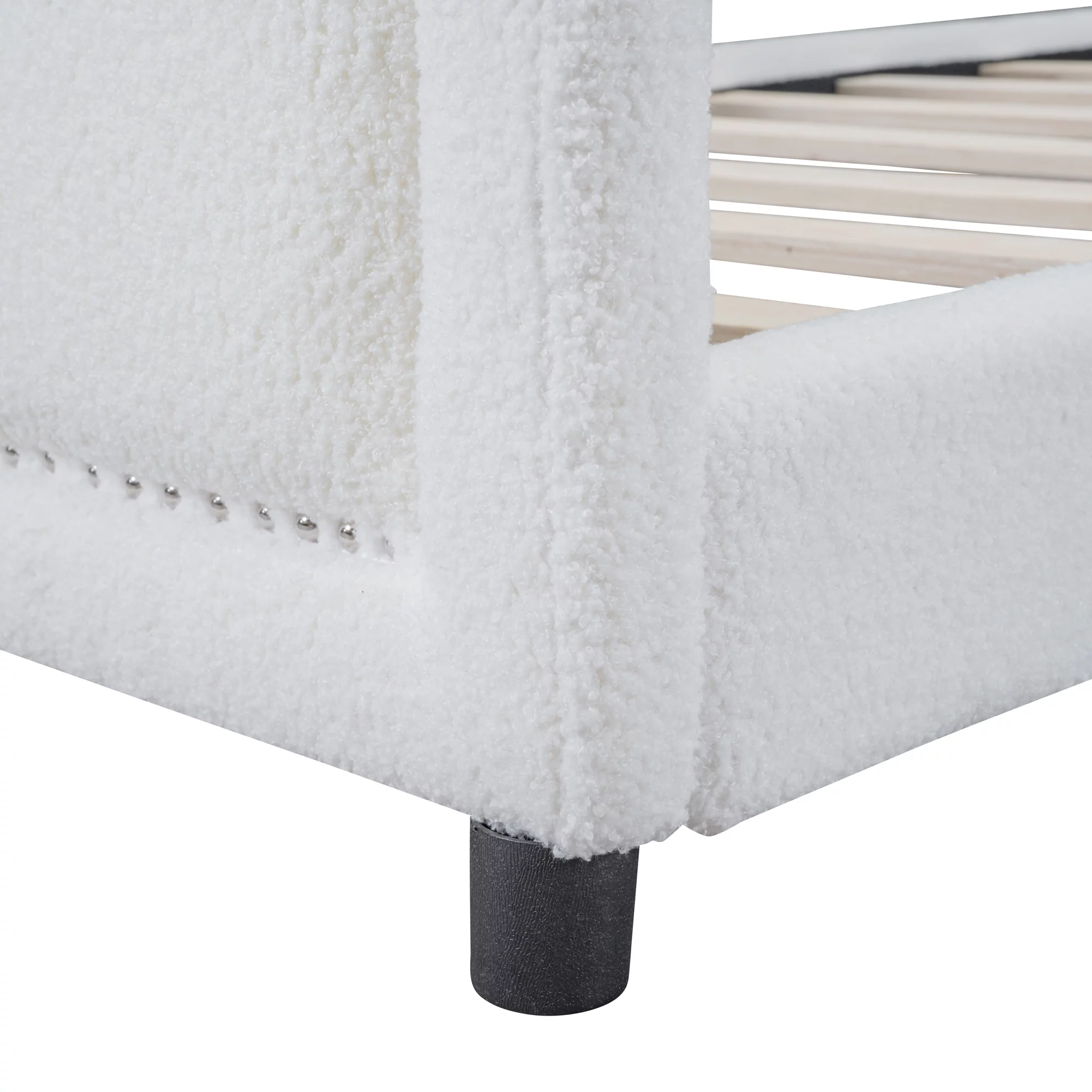 ikayaa House Platform Bed with Headboard and Footboard,Roof Design,Natural