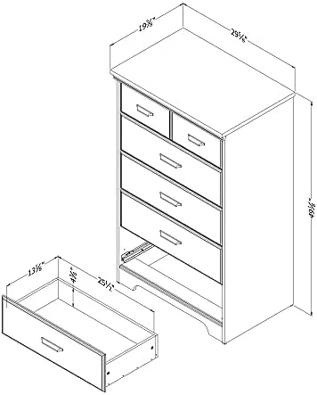 GEROBOOM Versa Collection 5-Drawer Dresser Winter Oak with Antique Handles