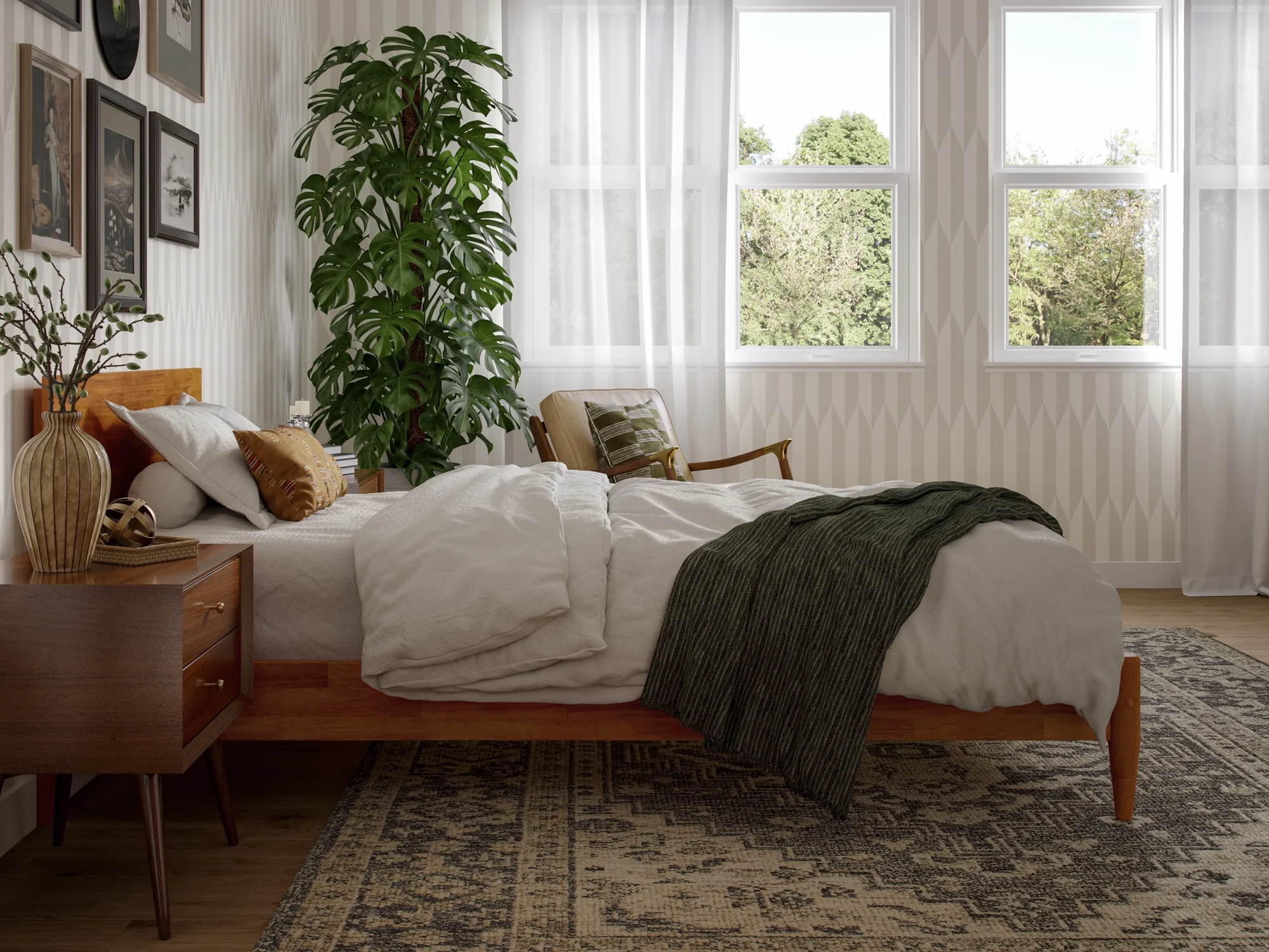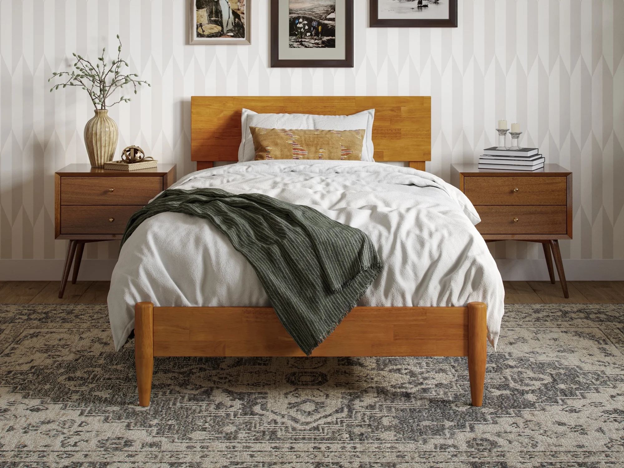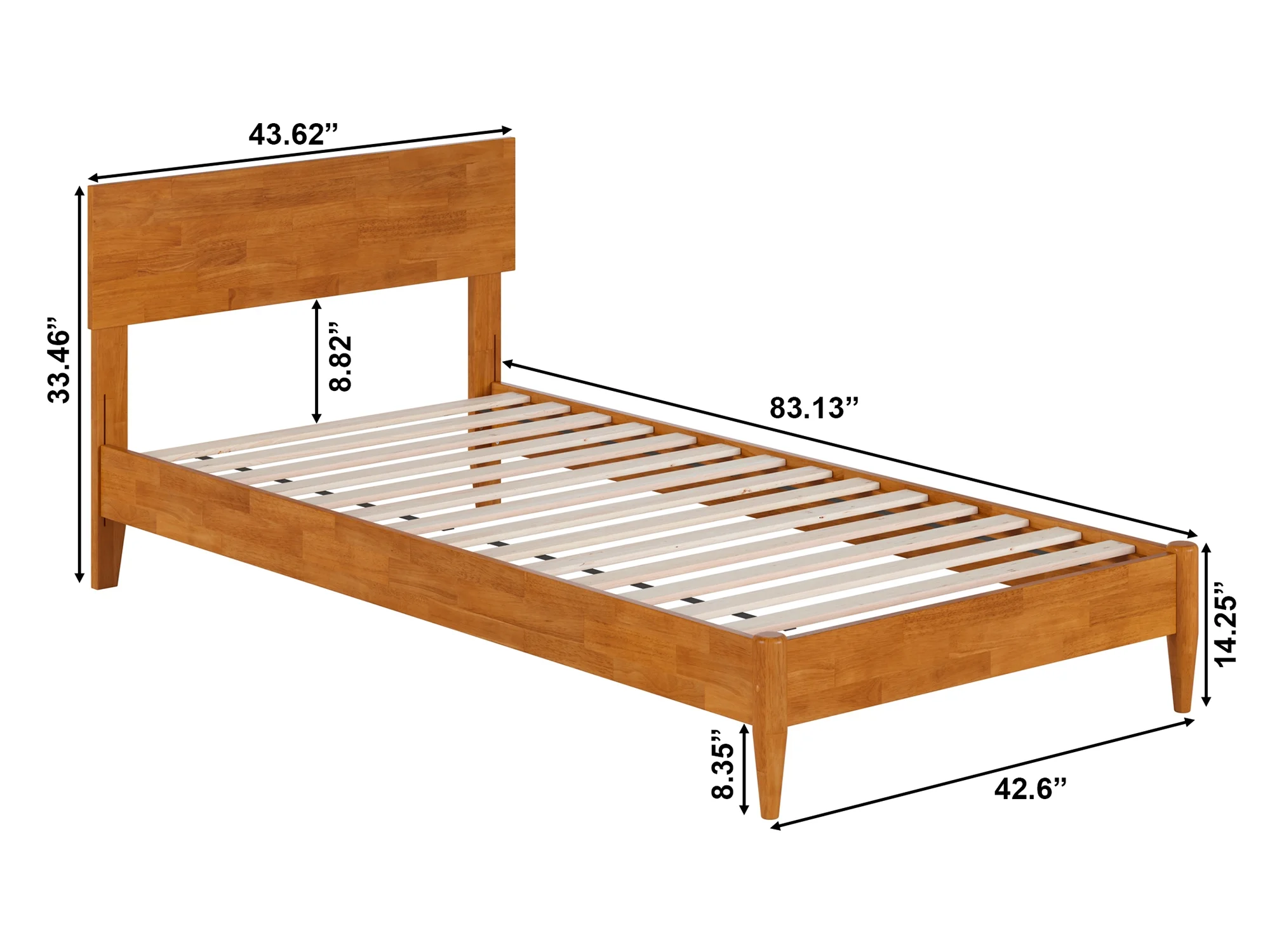 AFI Aria Twin XL Modern Solid Wood Low Profile Platform Bed, Light Toffee