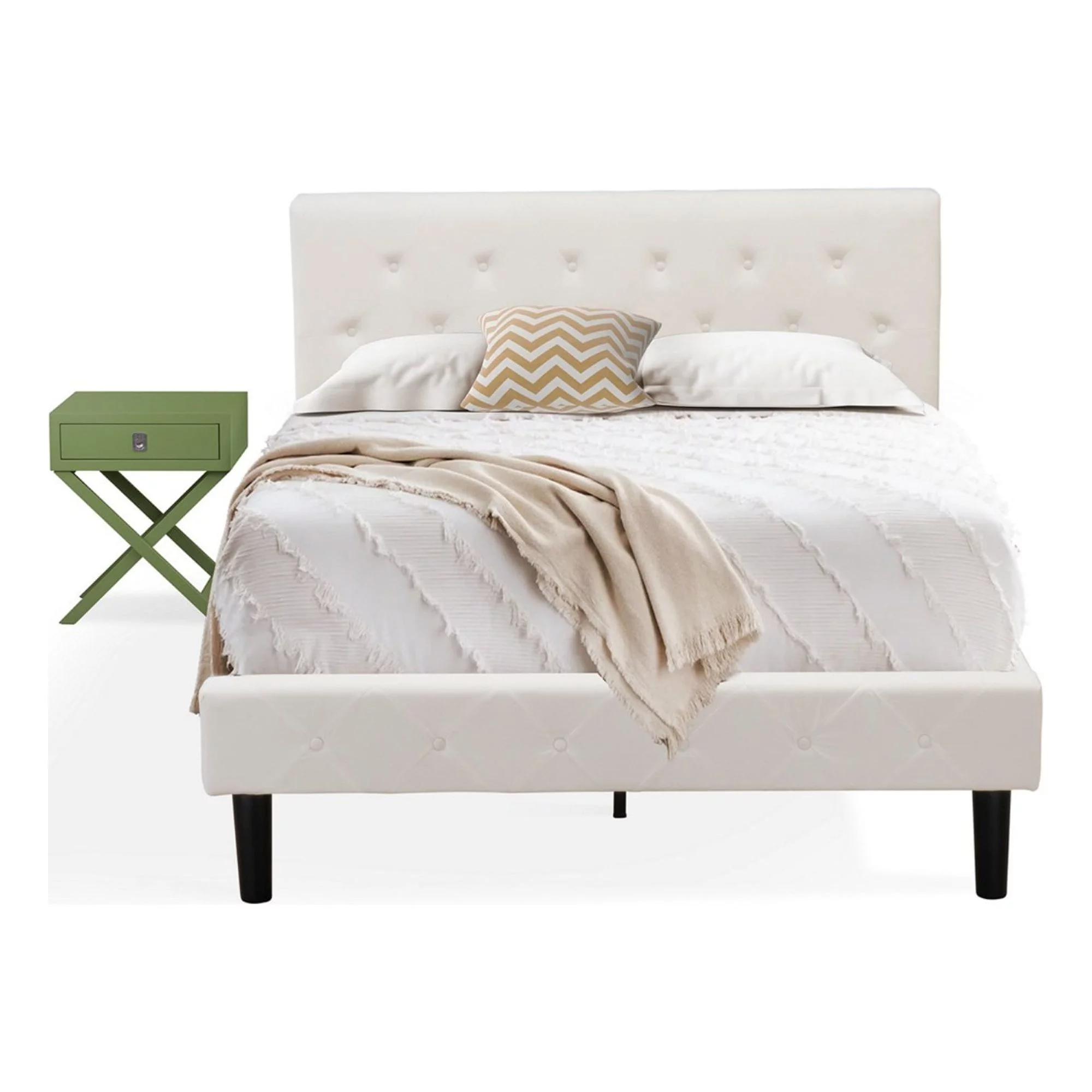 East West Furniture Nolan 2-Piece Wooden Full Bedroom Set in White/Clover Green
