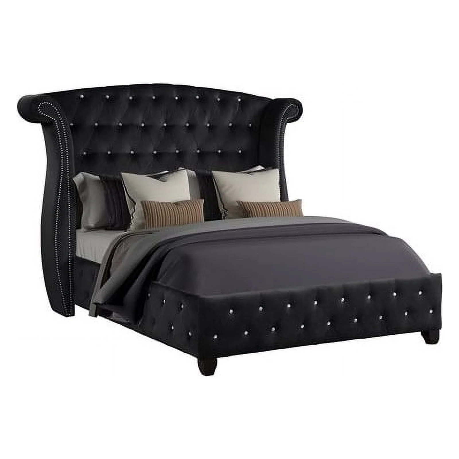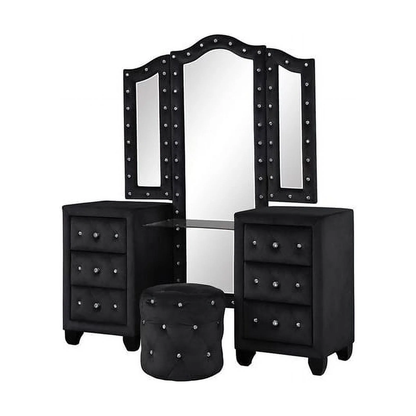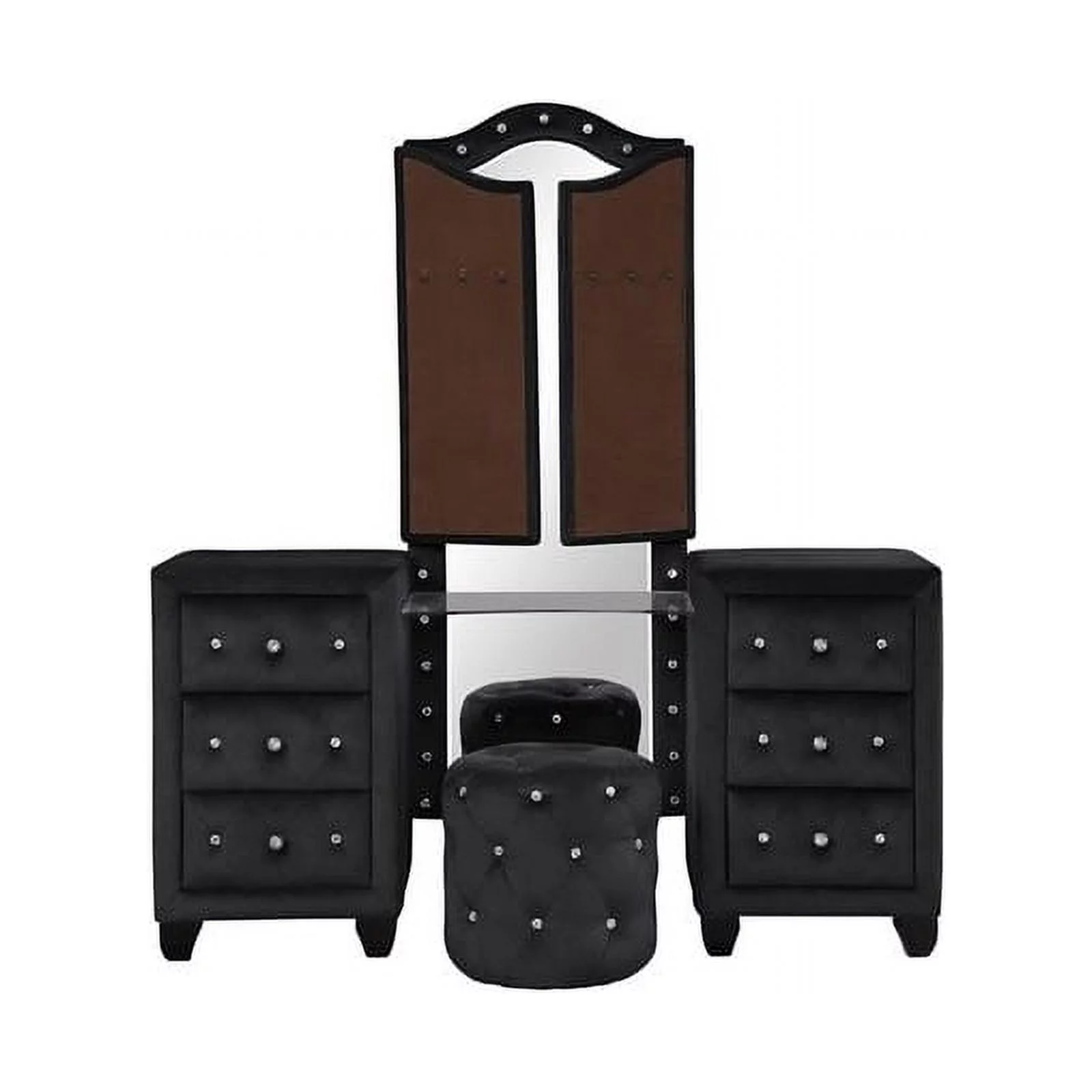 Sophia Full 4 Pc Vanity Upholstery Bedroom Set Made With Wood in Black