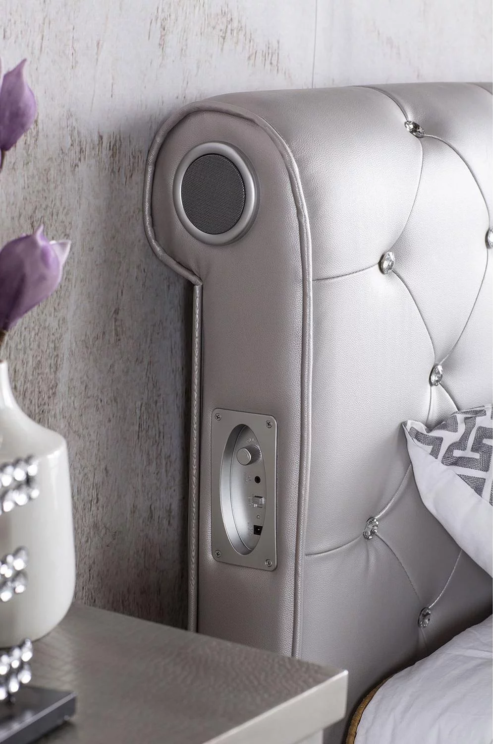 Contemporary Silver Solid Wood Full Bedroom Set 6pcs FOA CM7056SV-F Juilliard