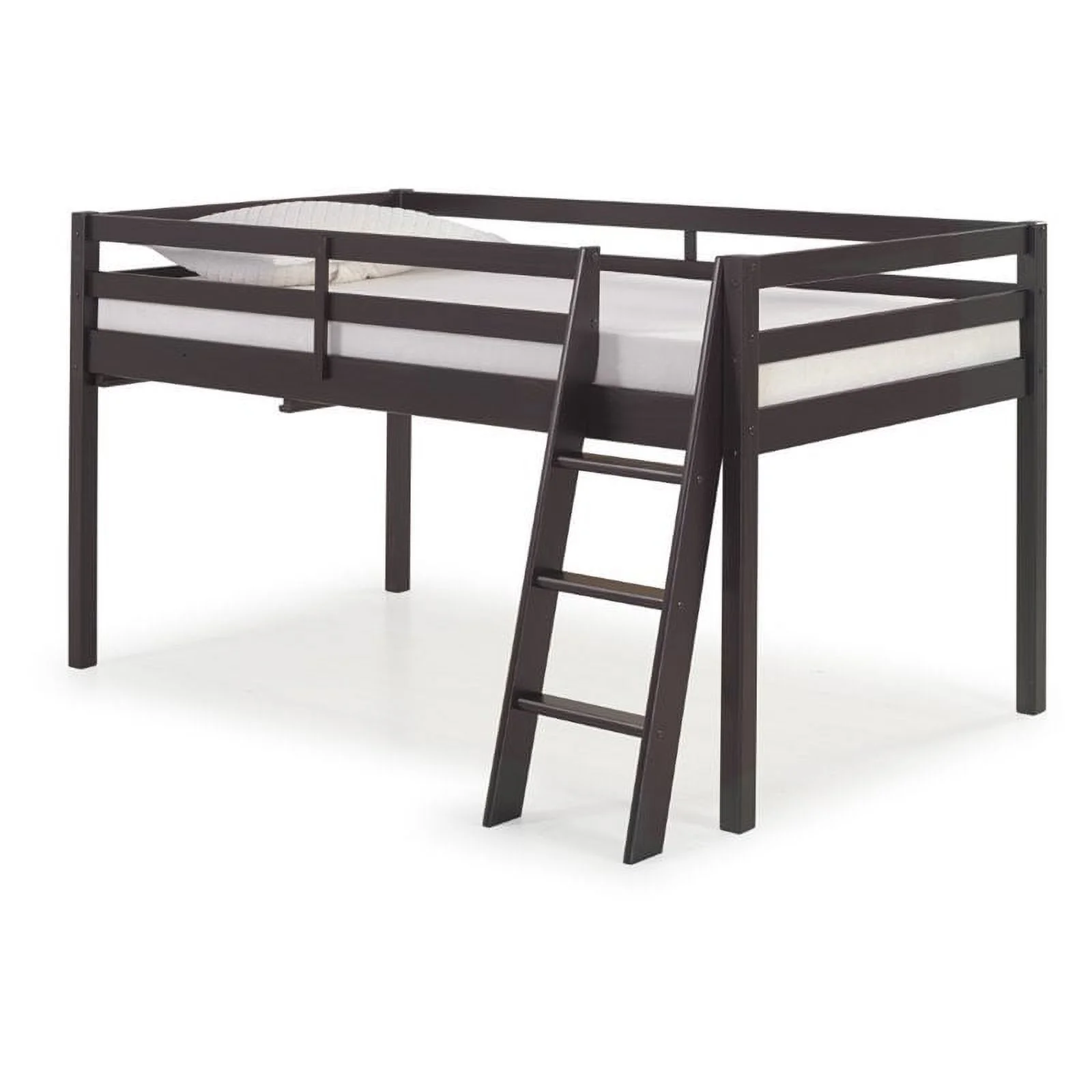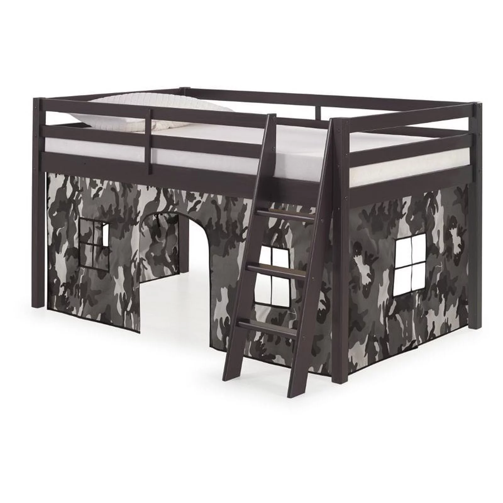 Rosebery Kids Twin Wood Junior Loft Bed with Espresso with Gray Camo Bottom Tent
