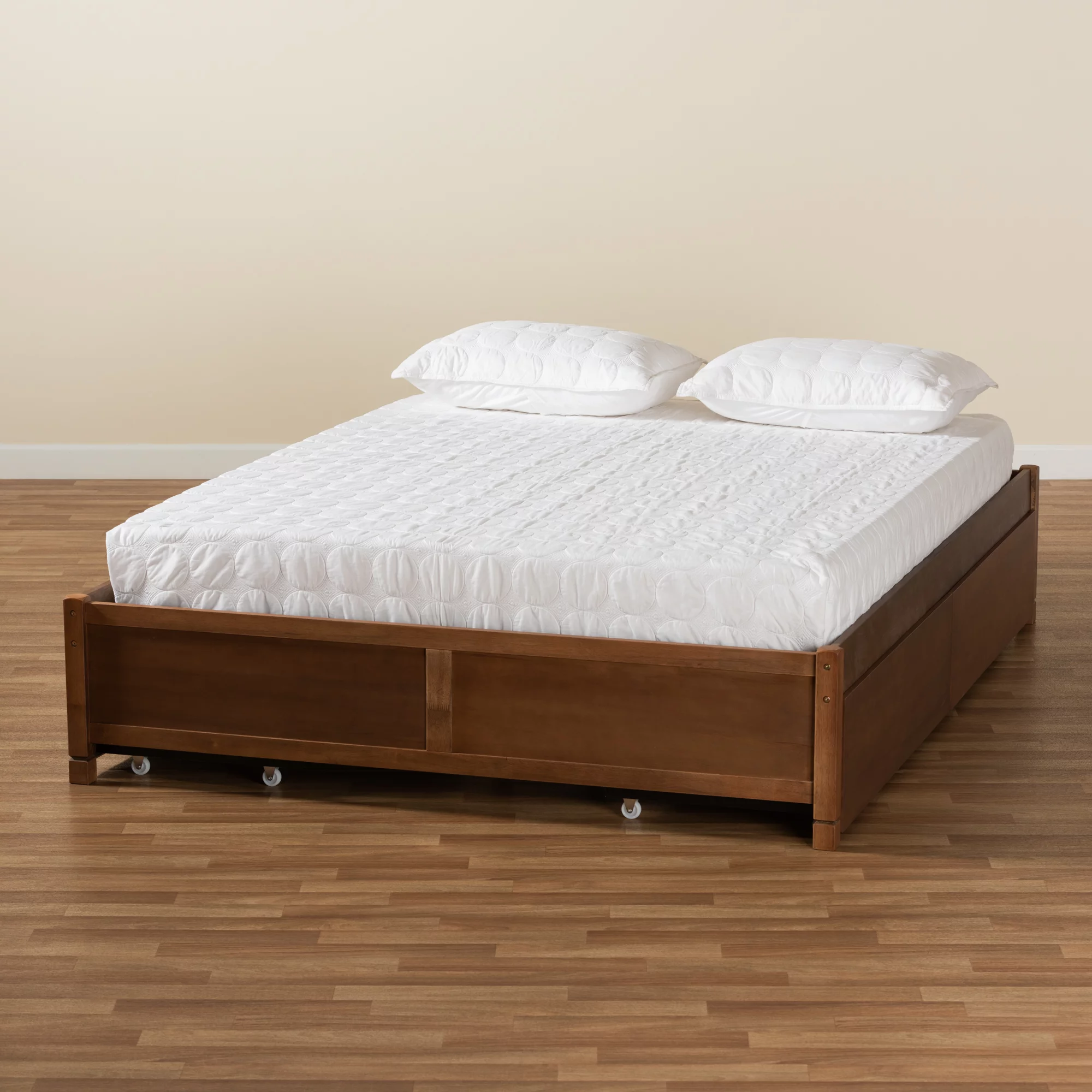Baxton Studio Yara Modern and Contemporary Walnut Brown Finished Wood Queen Size 4-Drawer Platform Storage Bed Frame