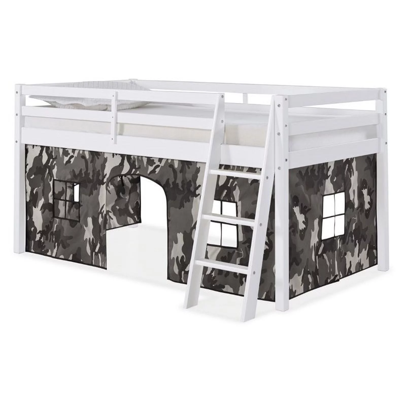 Roseberry Kids Wood Twin Junior Loft Bed with Tent in White/Gray Camo