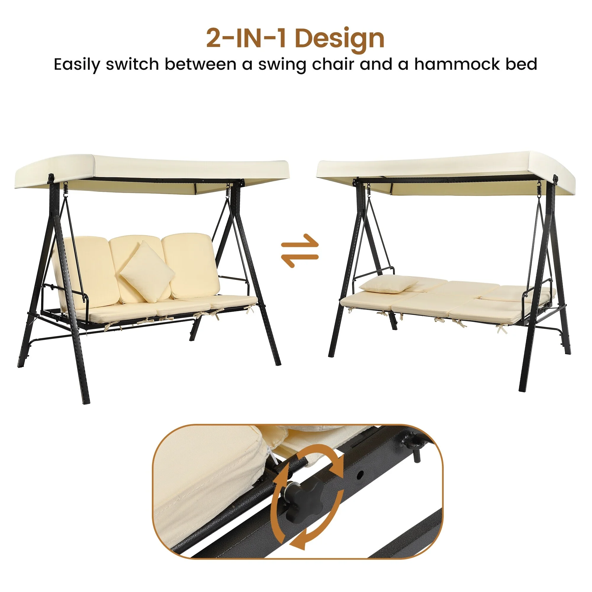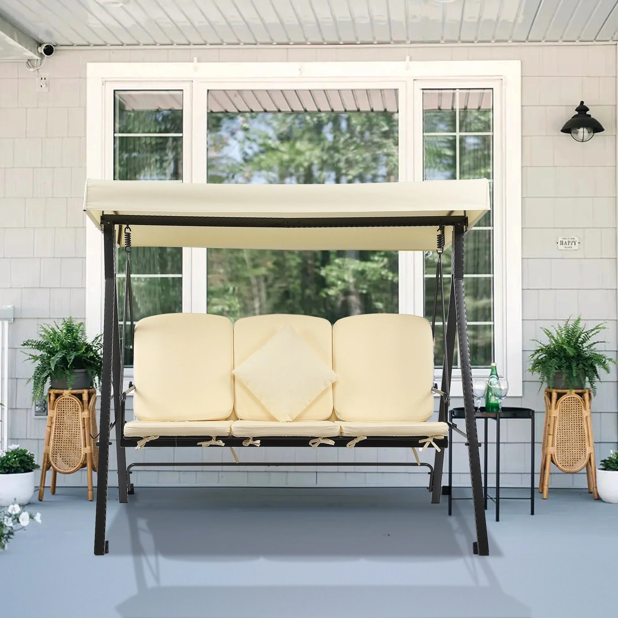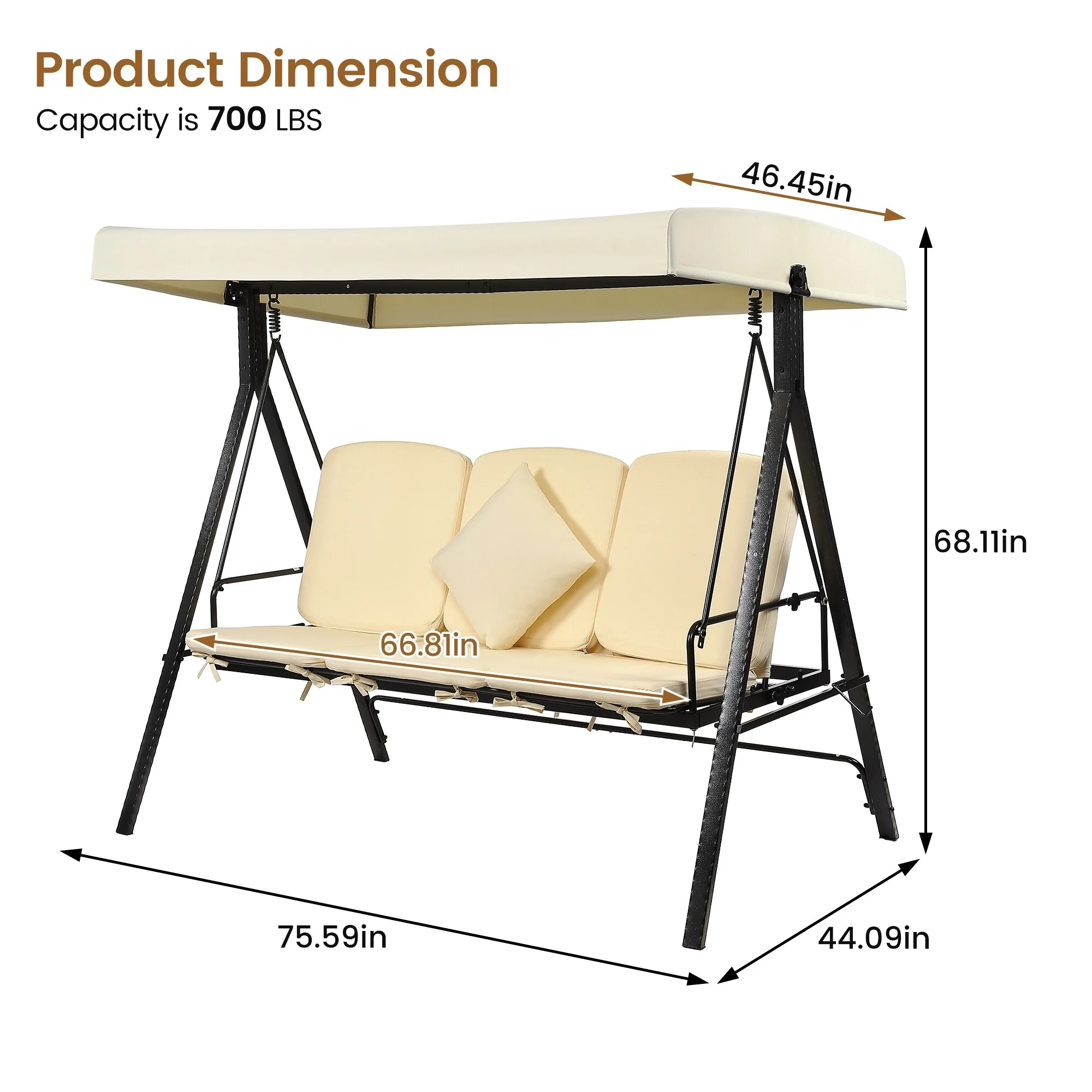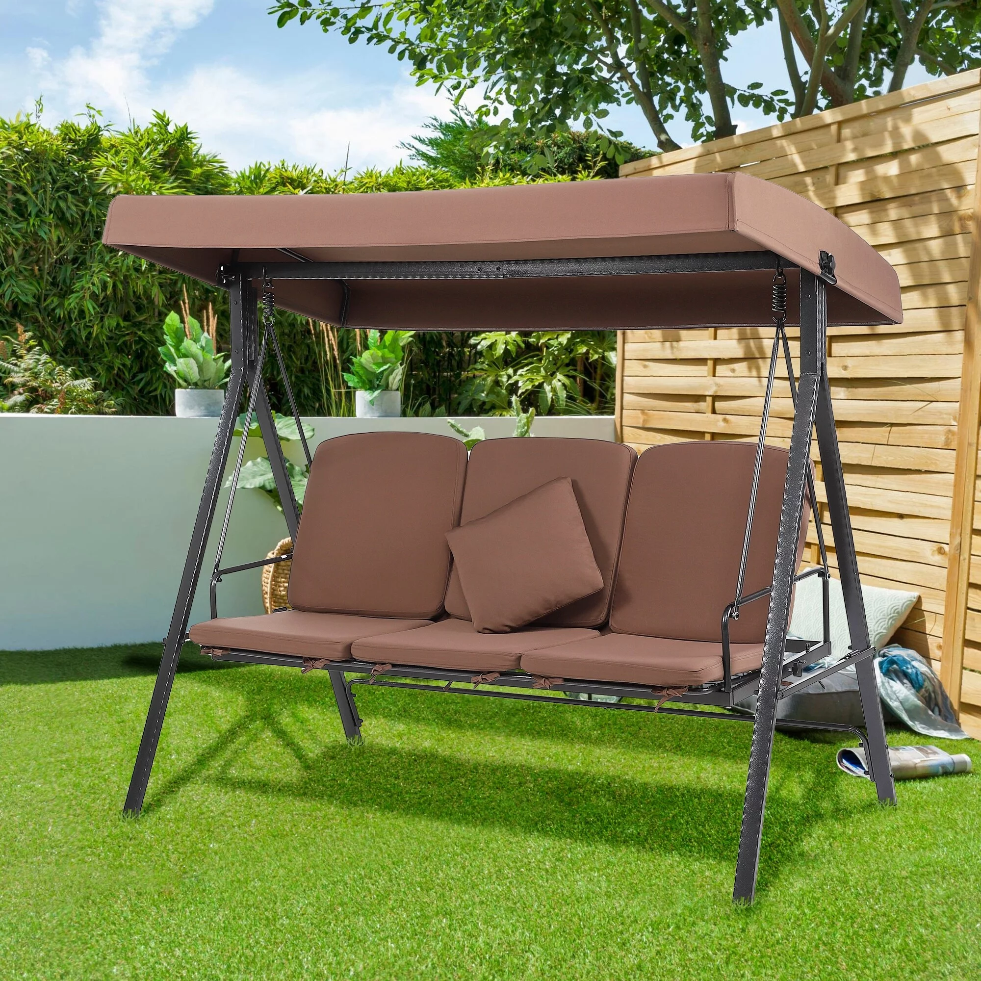 3-person Porch Swing Daybed with Cushion for Outdoor Backyard/Garden - 75.59"D x 46.45"W x 68.1"H Brown