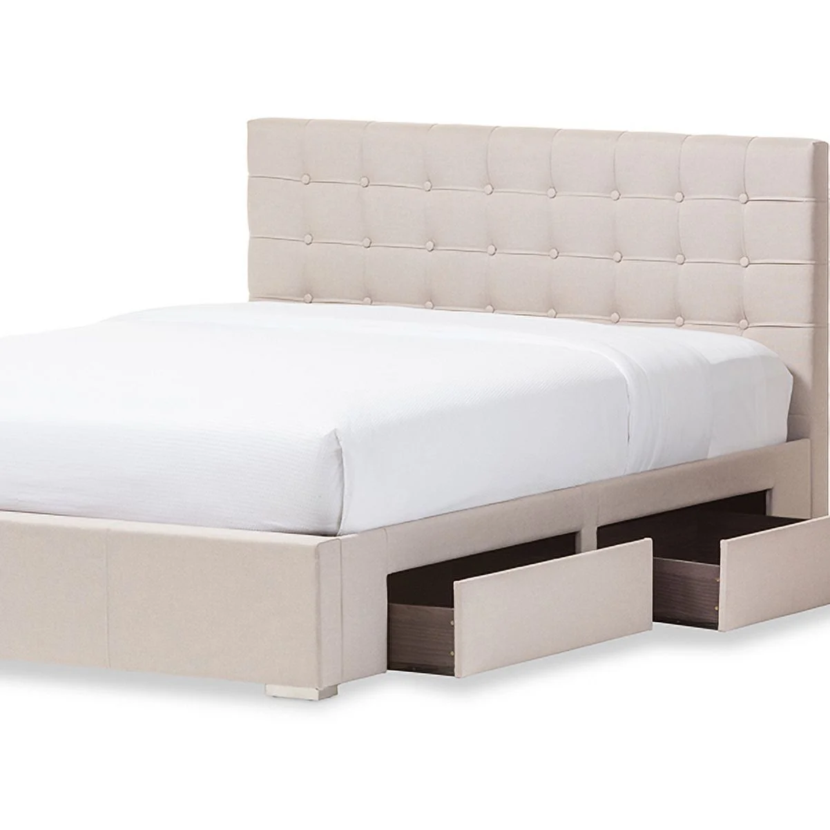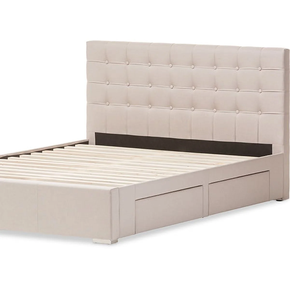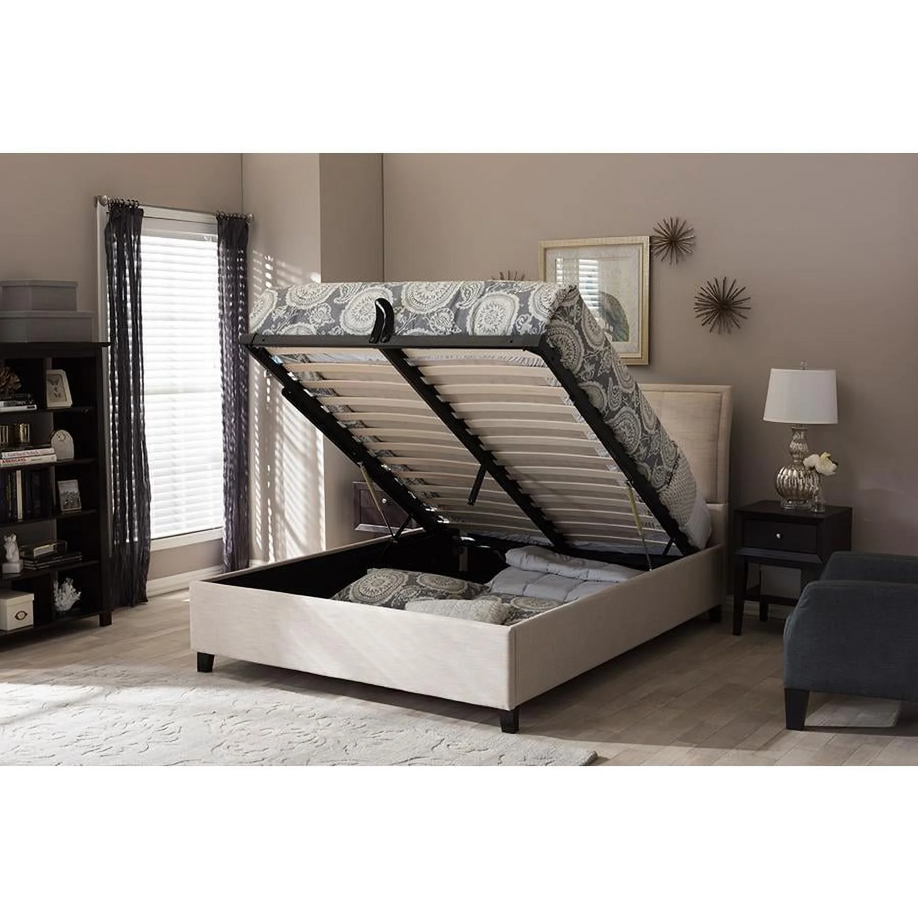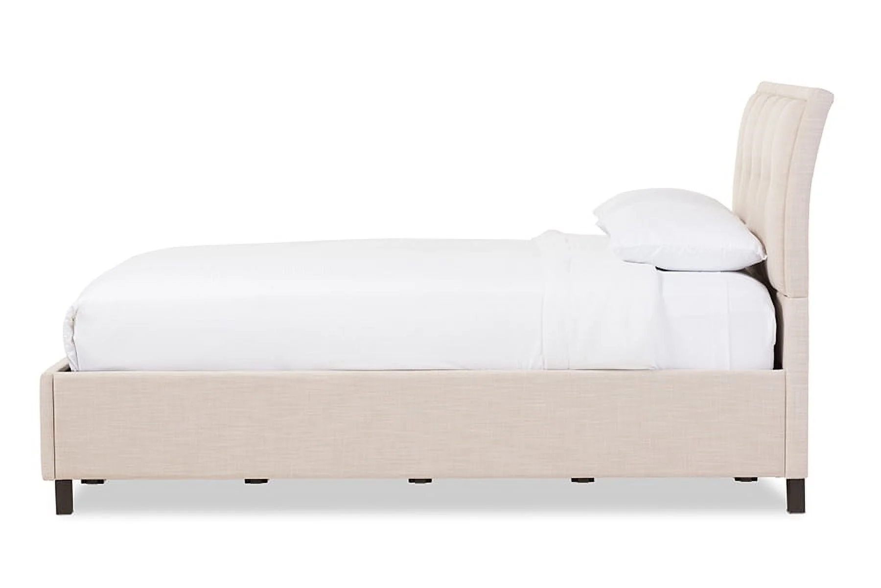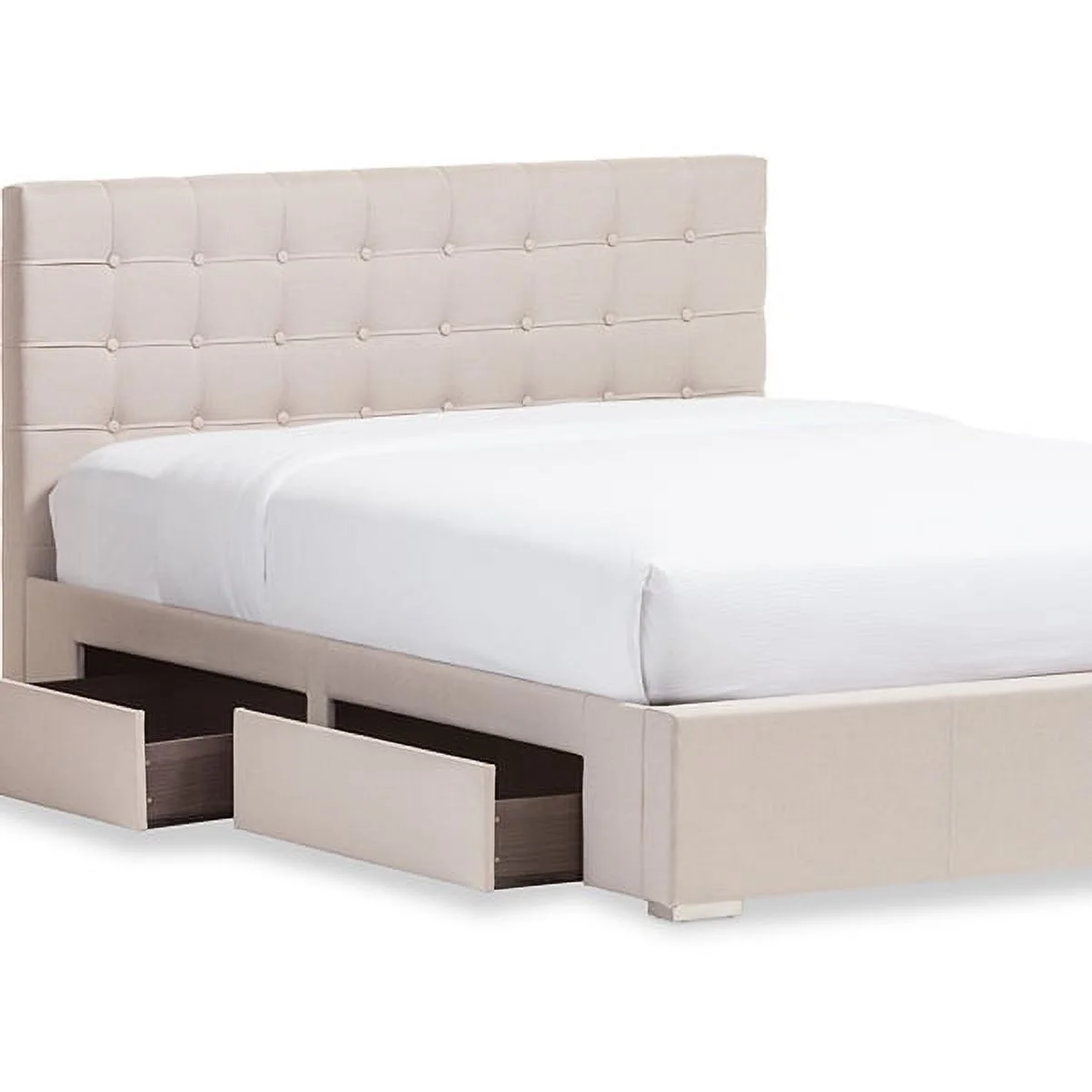 Baxton Studio Rene Modern and Contemporary Fabric 4-drawer Storage Platform Bed, Queen, Beige