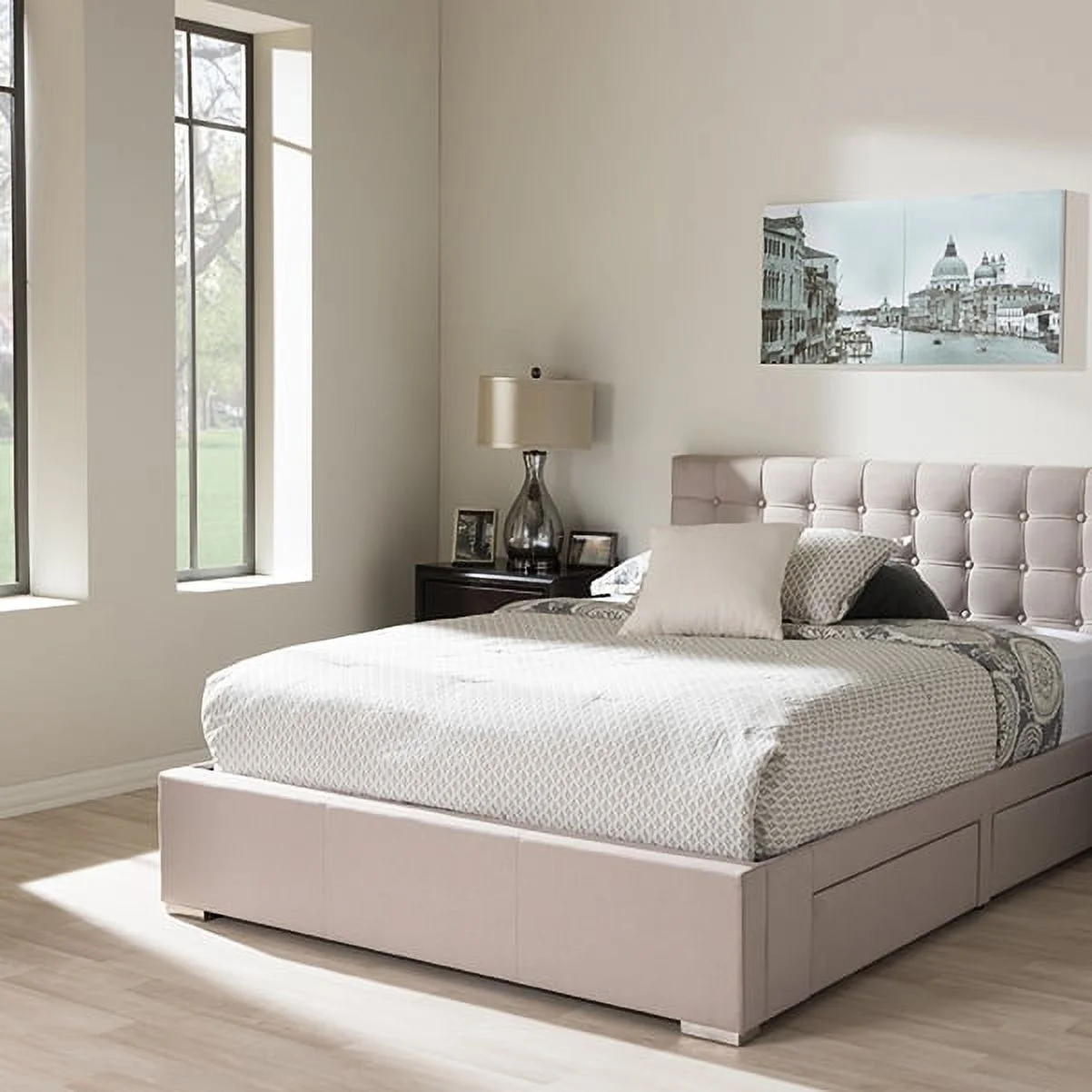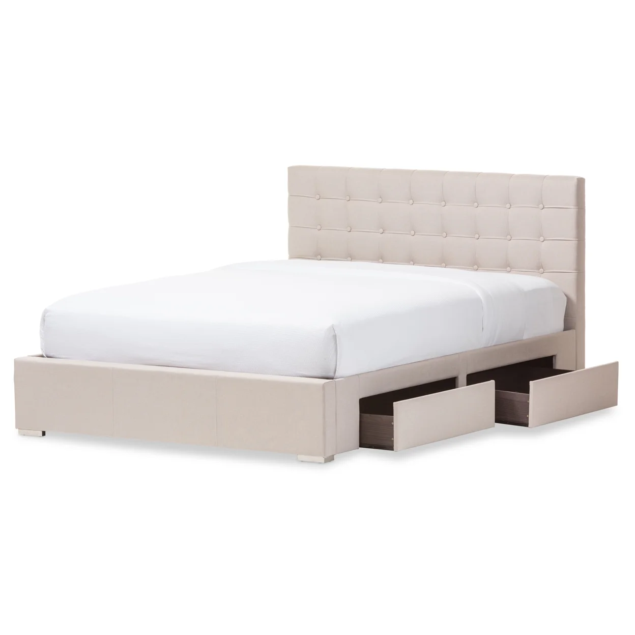 Baxton Studio Leni Modern and Contemporary Beige Fabric Upholstered 4-Drawer Queen Size Platform Storage Bed Frame