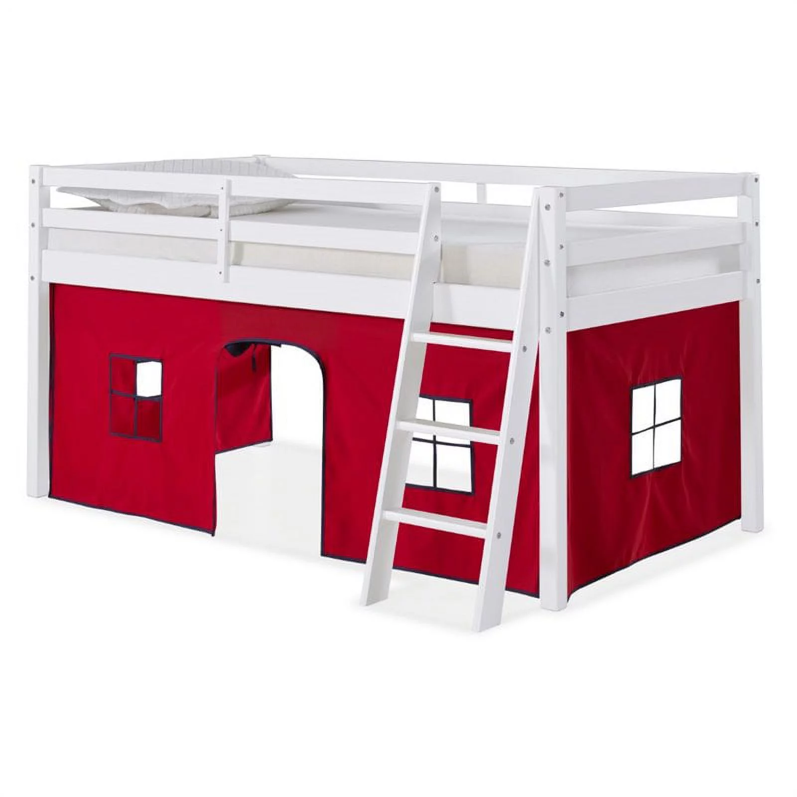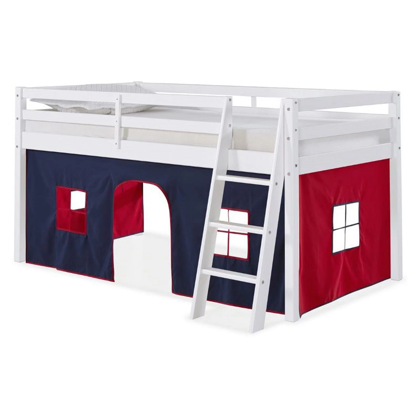 Rosebery Kids Twin Wood Junior Loft Bed with White with Red and Blue Tent