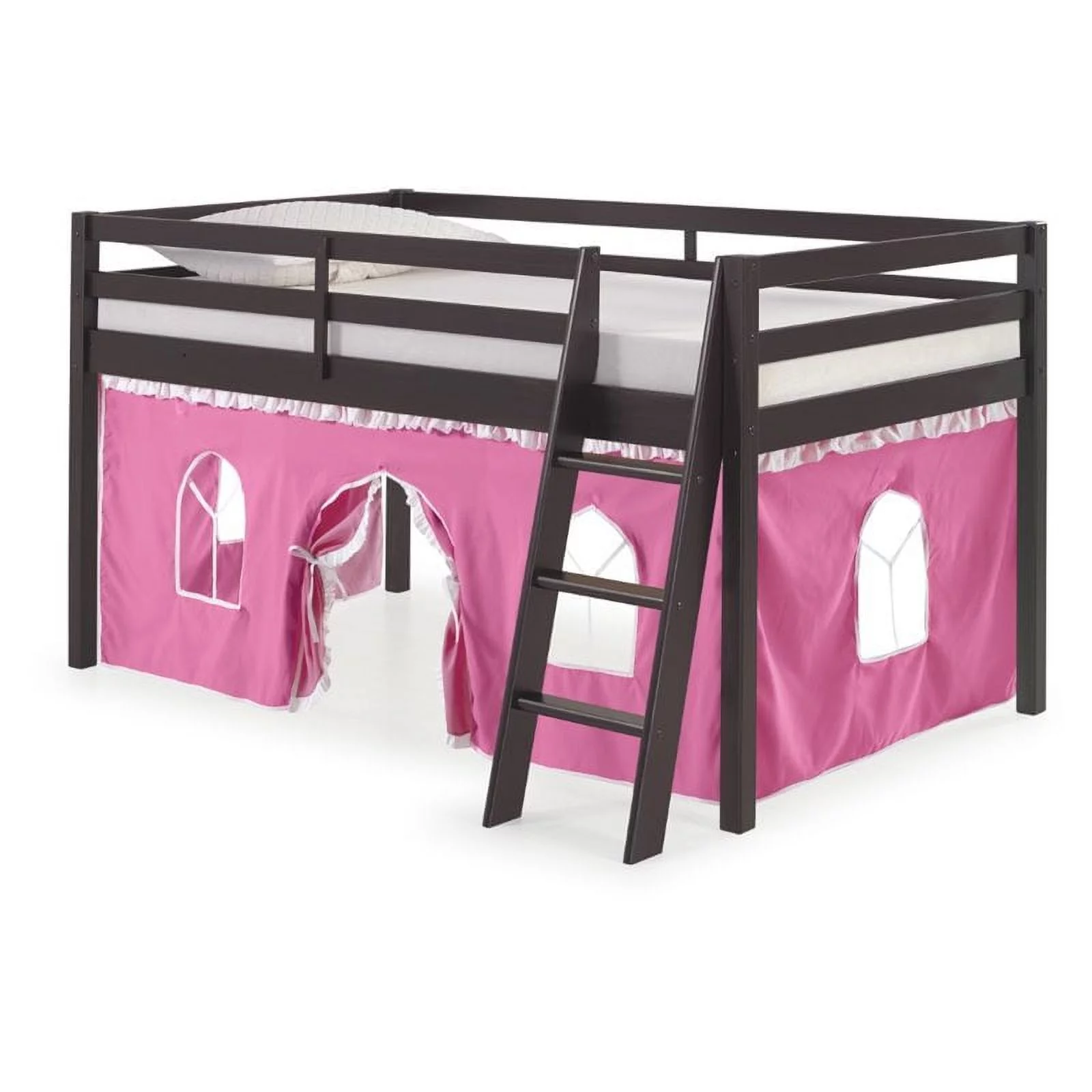 Rosebery Kids Twin Junior Loft Bed with Espresso with Pink and White Bottom Tent