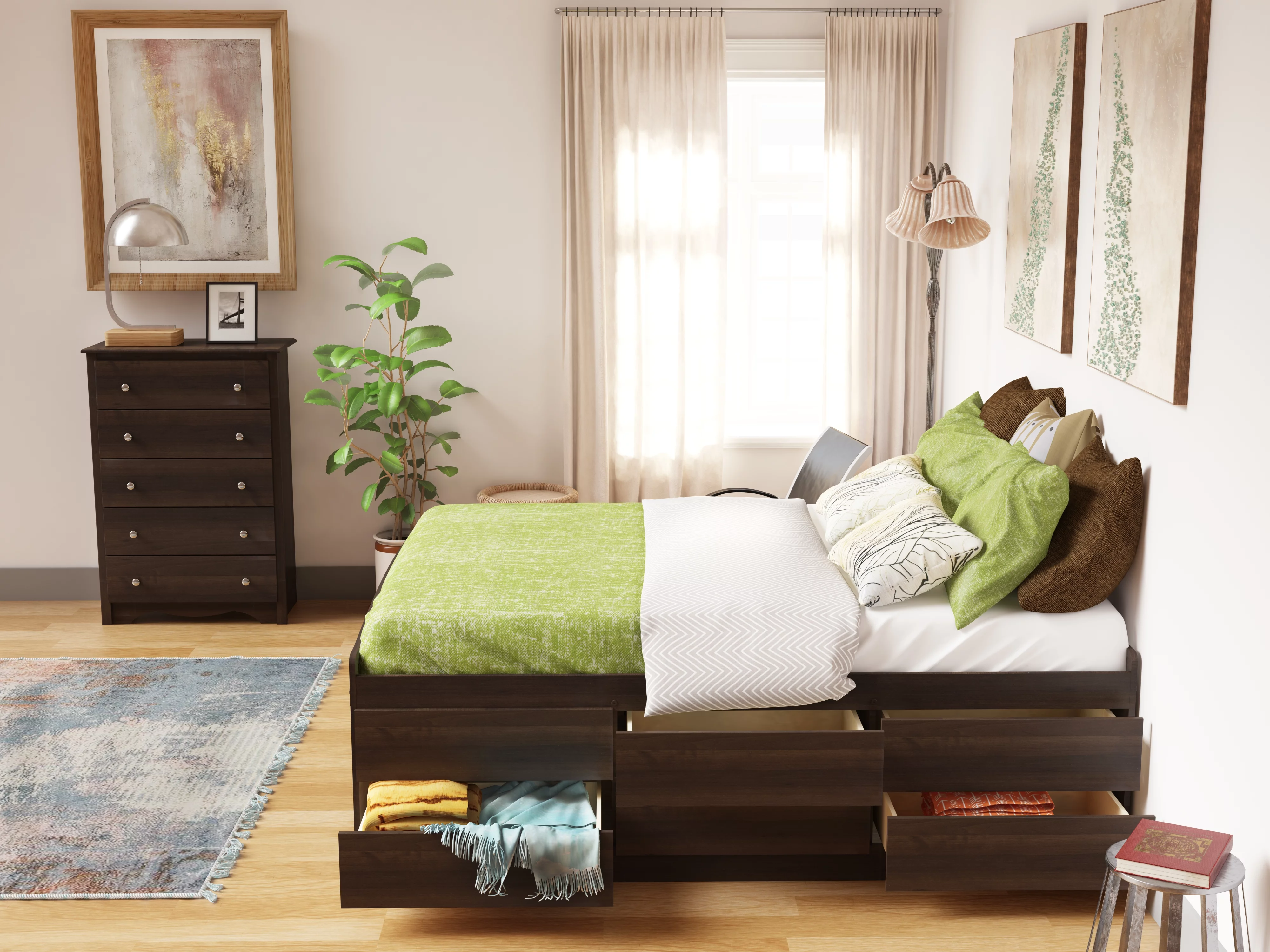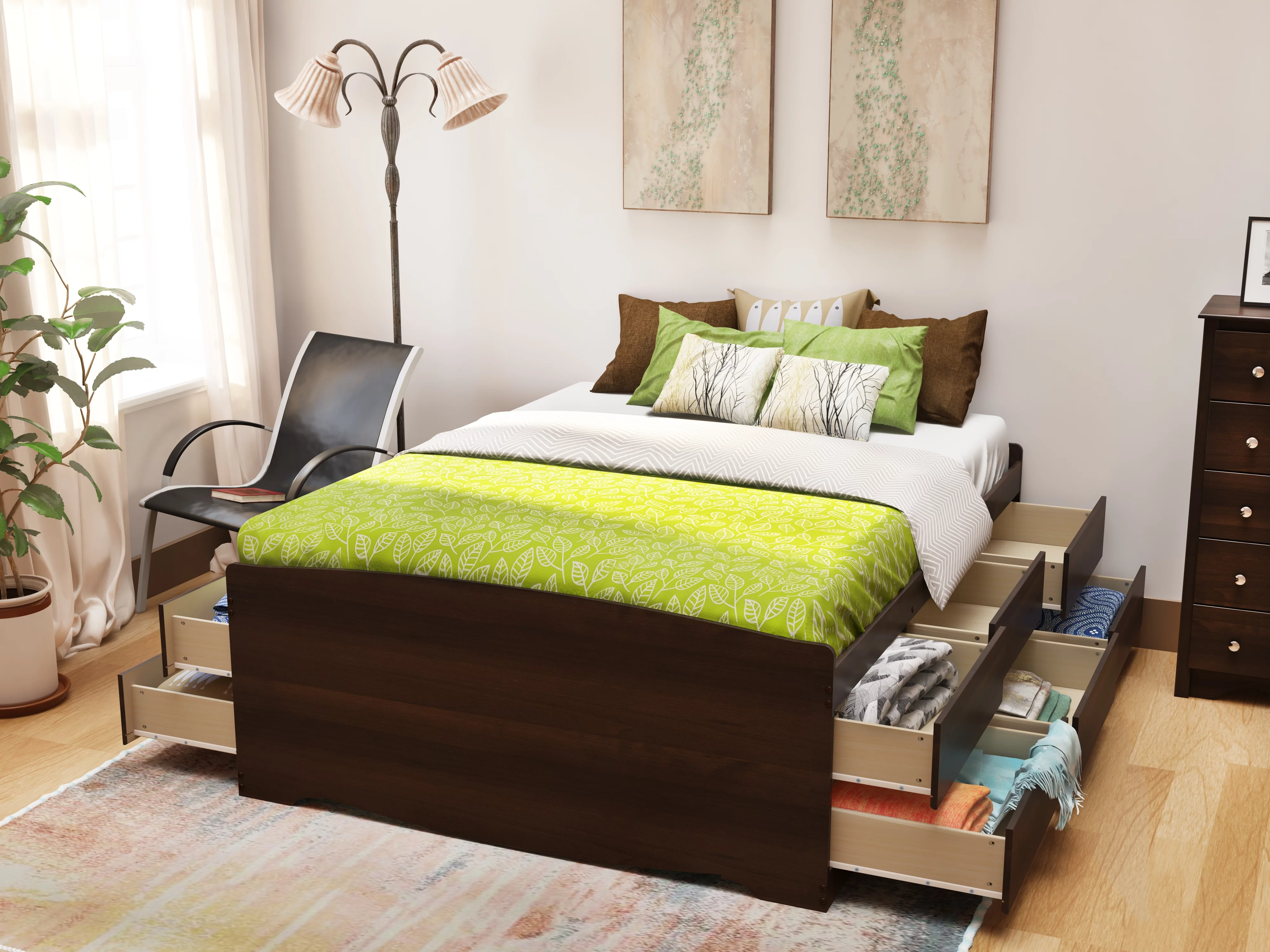 Prepac Tall Captain’s Platform Storage Bed with 12 Drawers, Queen, Espresso