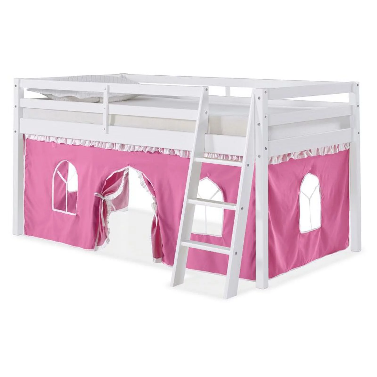 Rosebery Kids Twin Wood Junior Loft Bed with White with Pink and White Tent