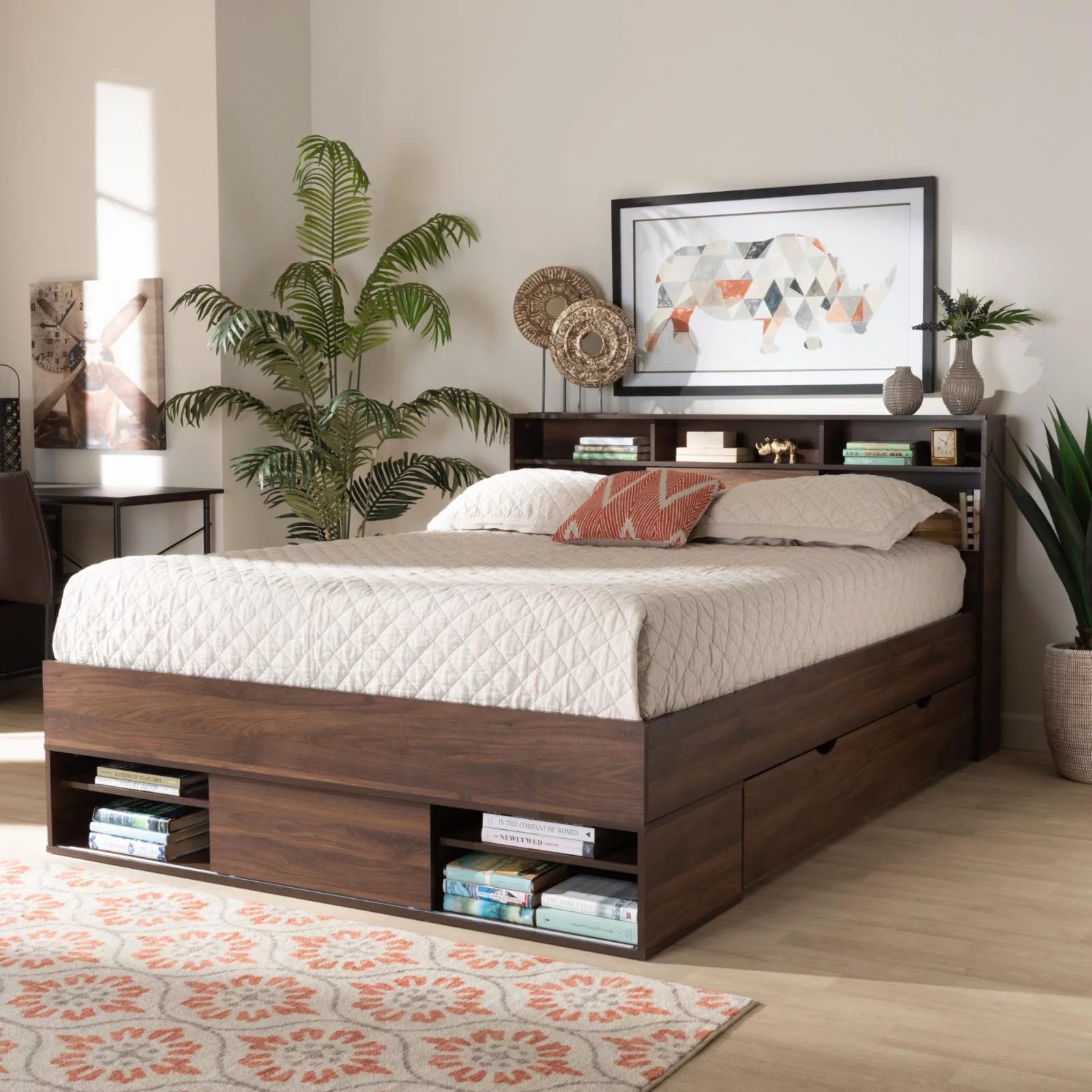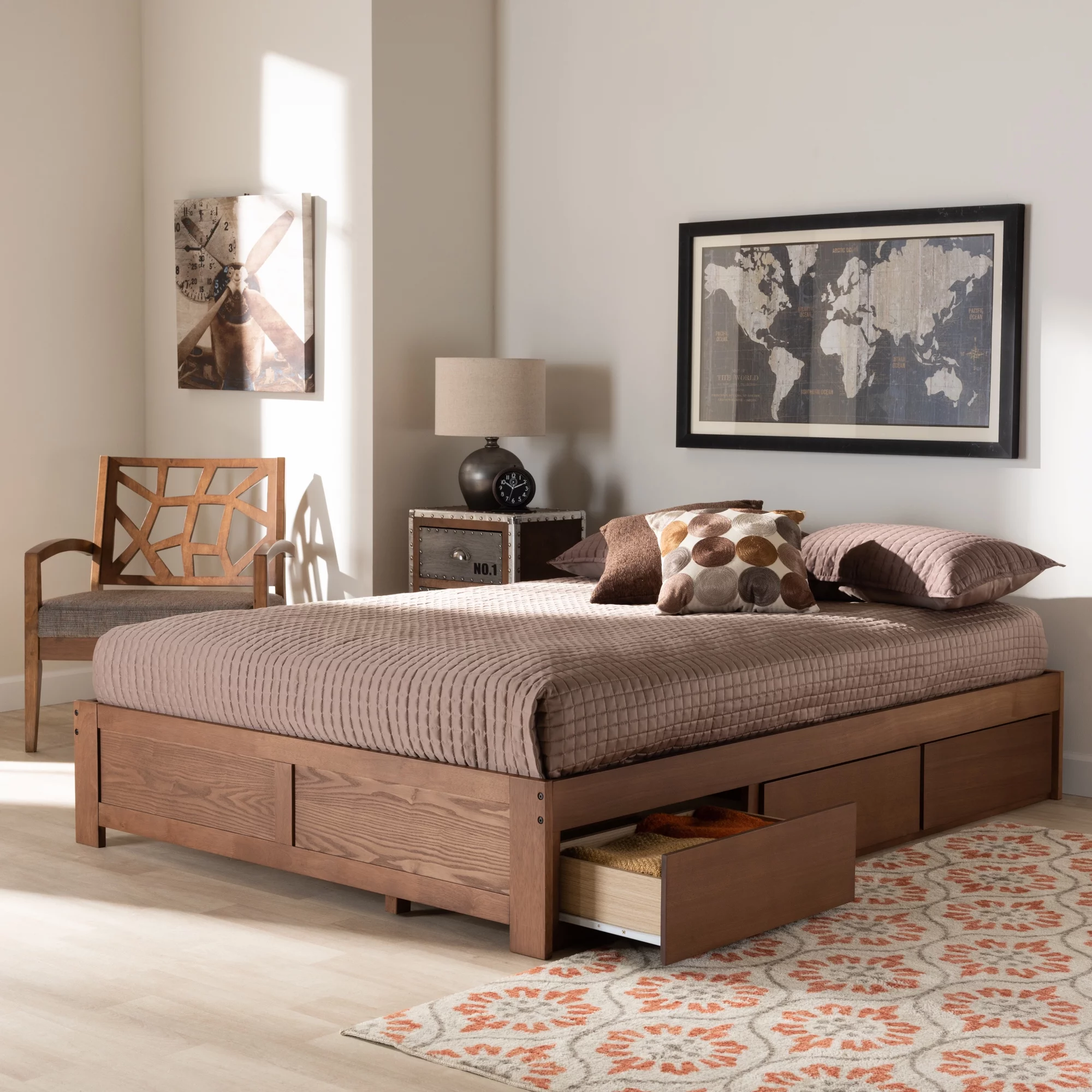 Baxton Studio Wren Modern and Contemporary Walnut Finished 3-Drawer Queen Size Platform Storage Bed Frame