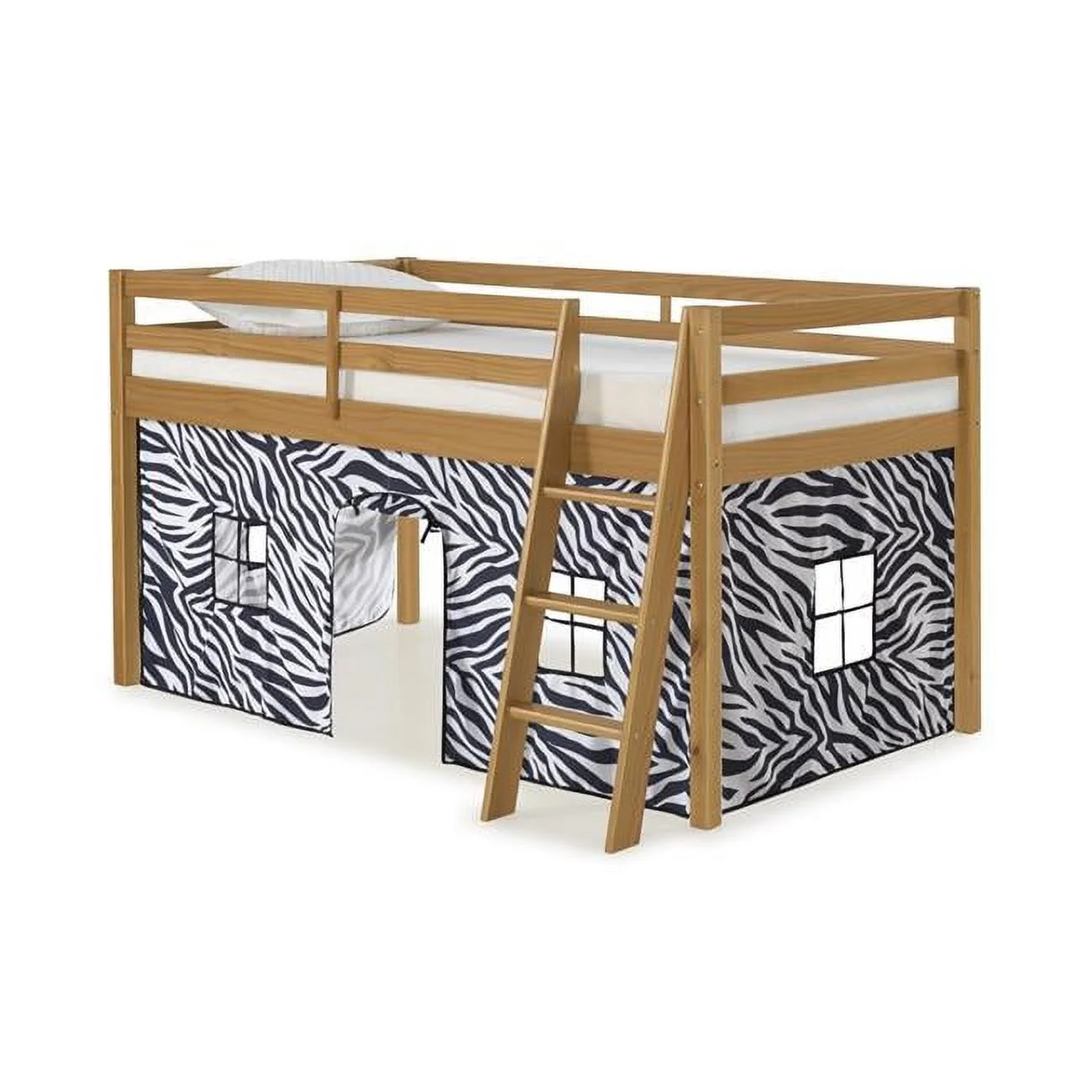 Rosebery Kids Twin Wood Junior Loft Bed with Cinnamon with Zebra Bottom Tent